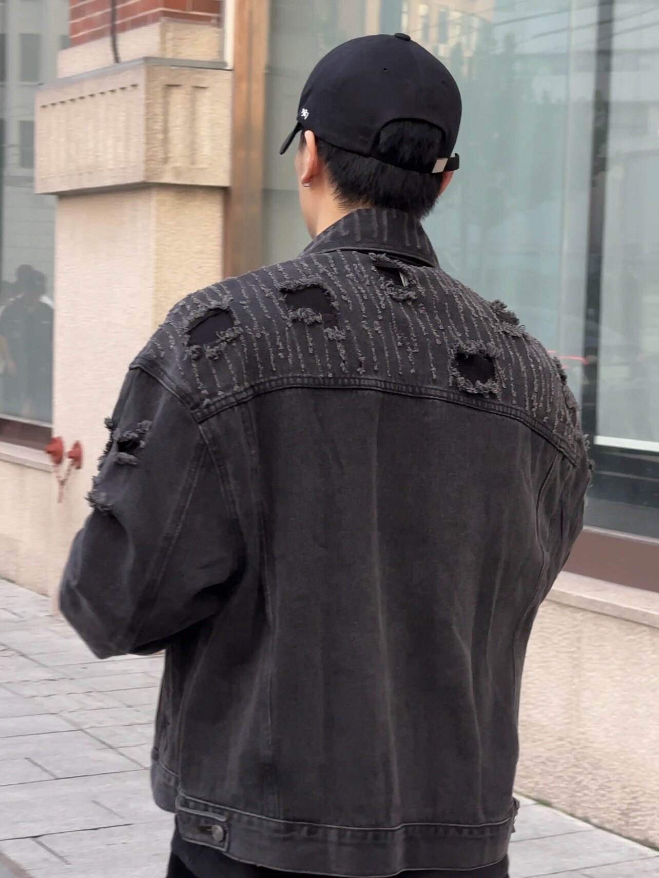 Blindly Purchased Bag, New Denim Jacket for Autumn, Niche Ripped Design, Loose Fit Exclusive Design