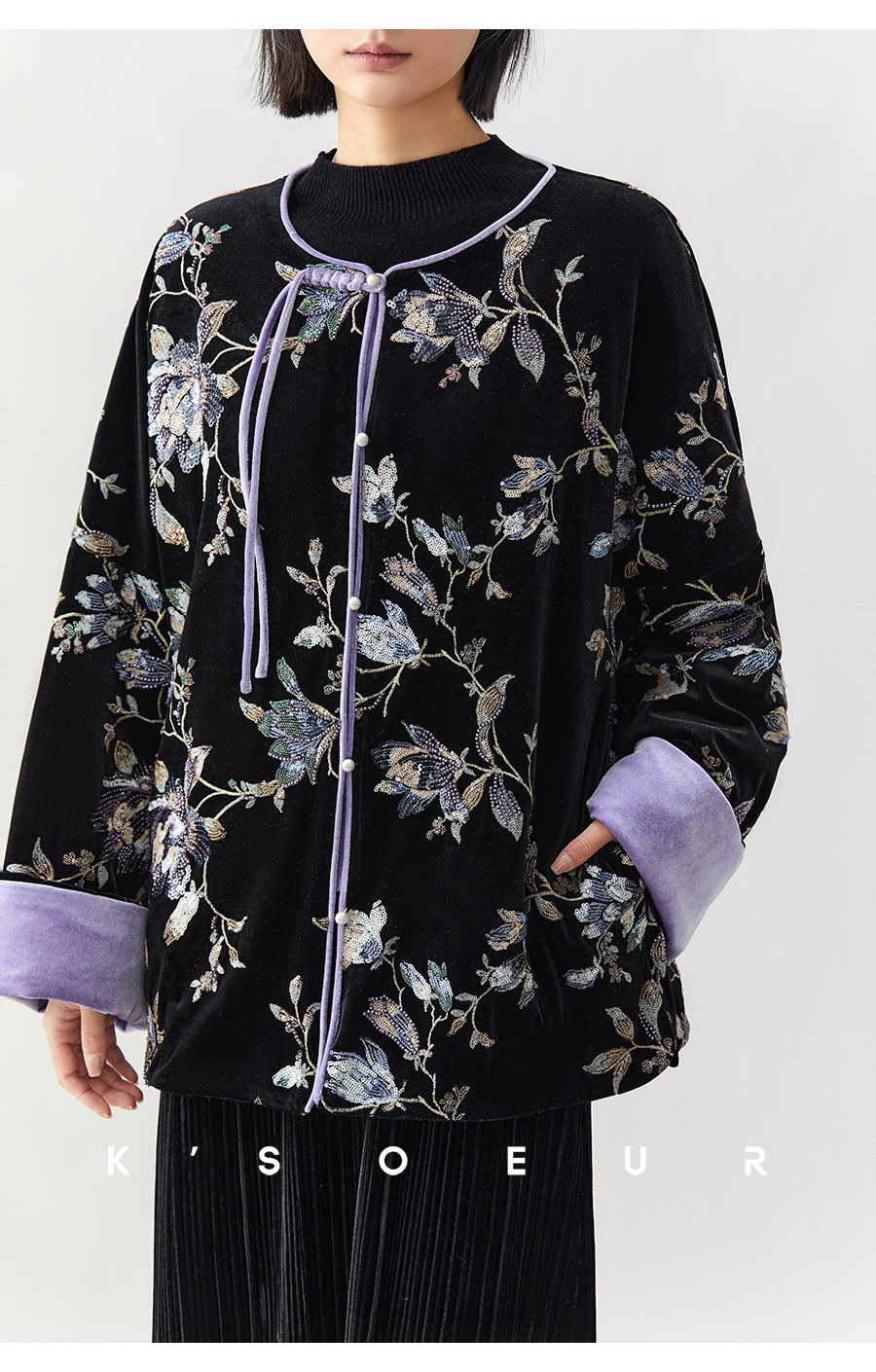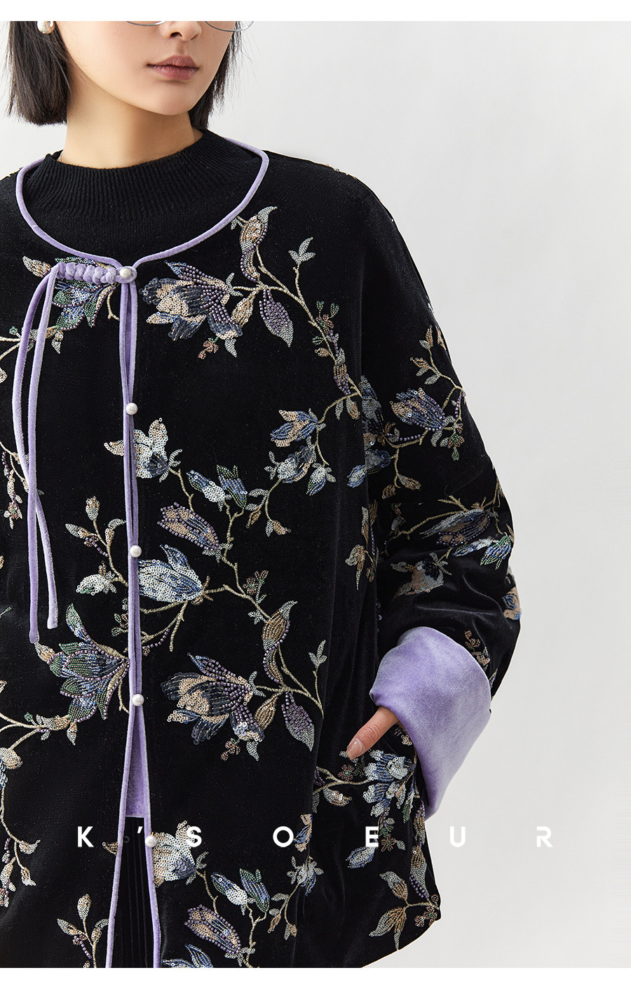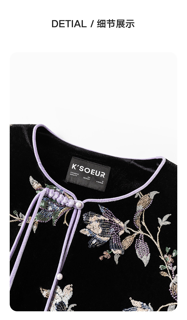 K Sister Ksoeur【Flower of Wealth in the World】Chinese Style Heavy Beaded Embroidery Patchwork Silk Cotton Jacket for Women