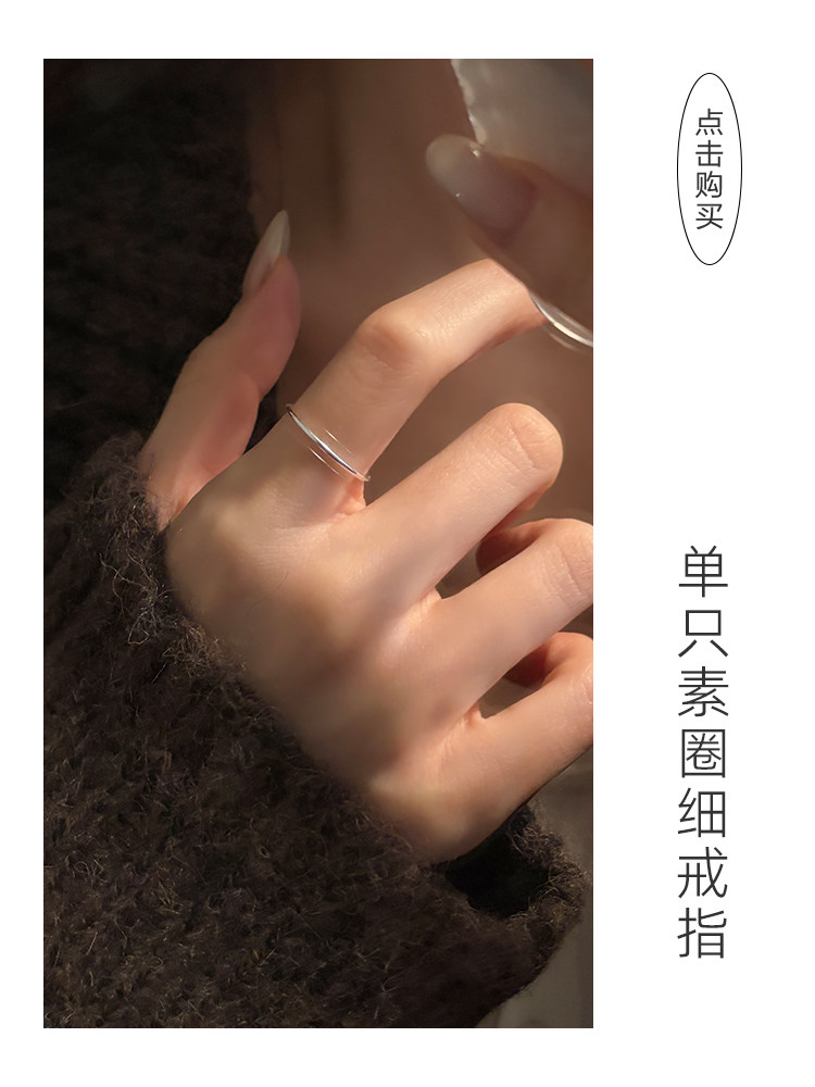 Suzyacc Kr Korea Dongdaemun S925 Silver Jewelry ins Simple Thin Ring for Women Pure Silver Plain Mix and Match
