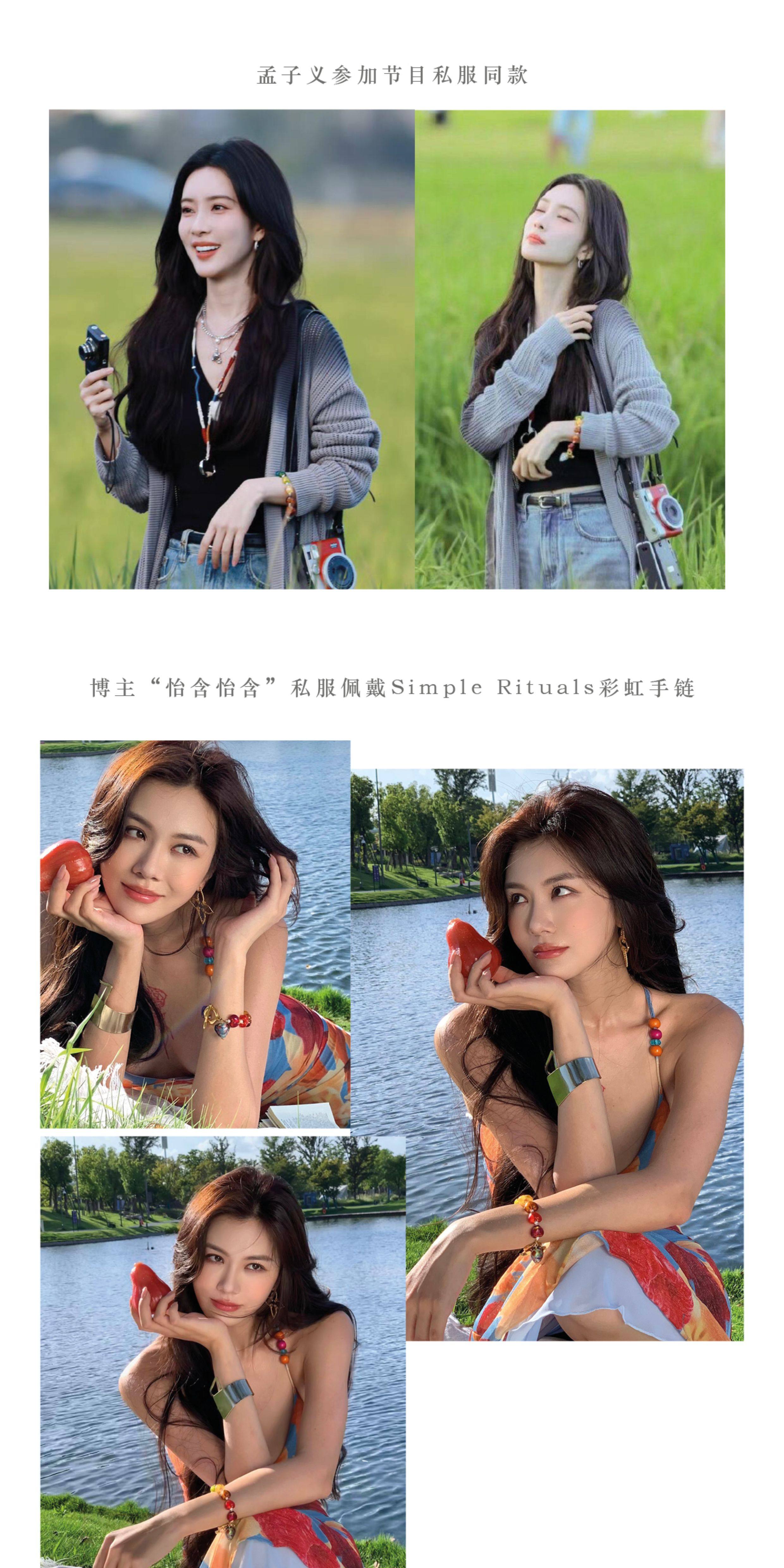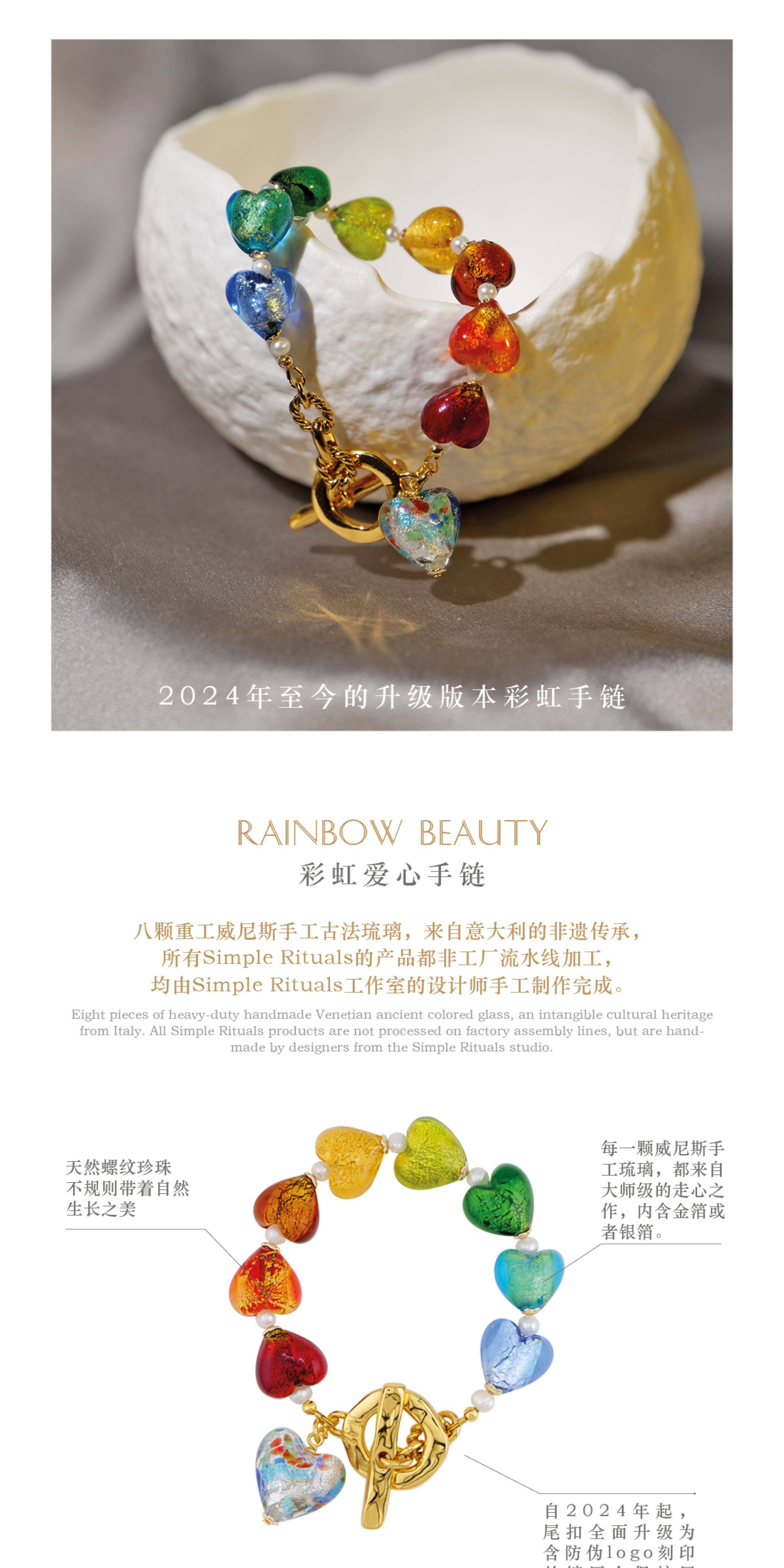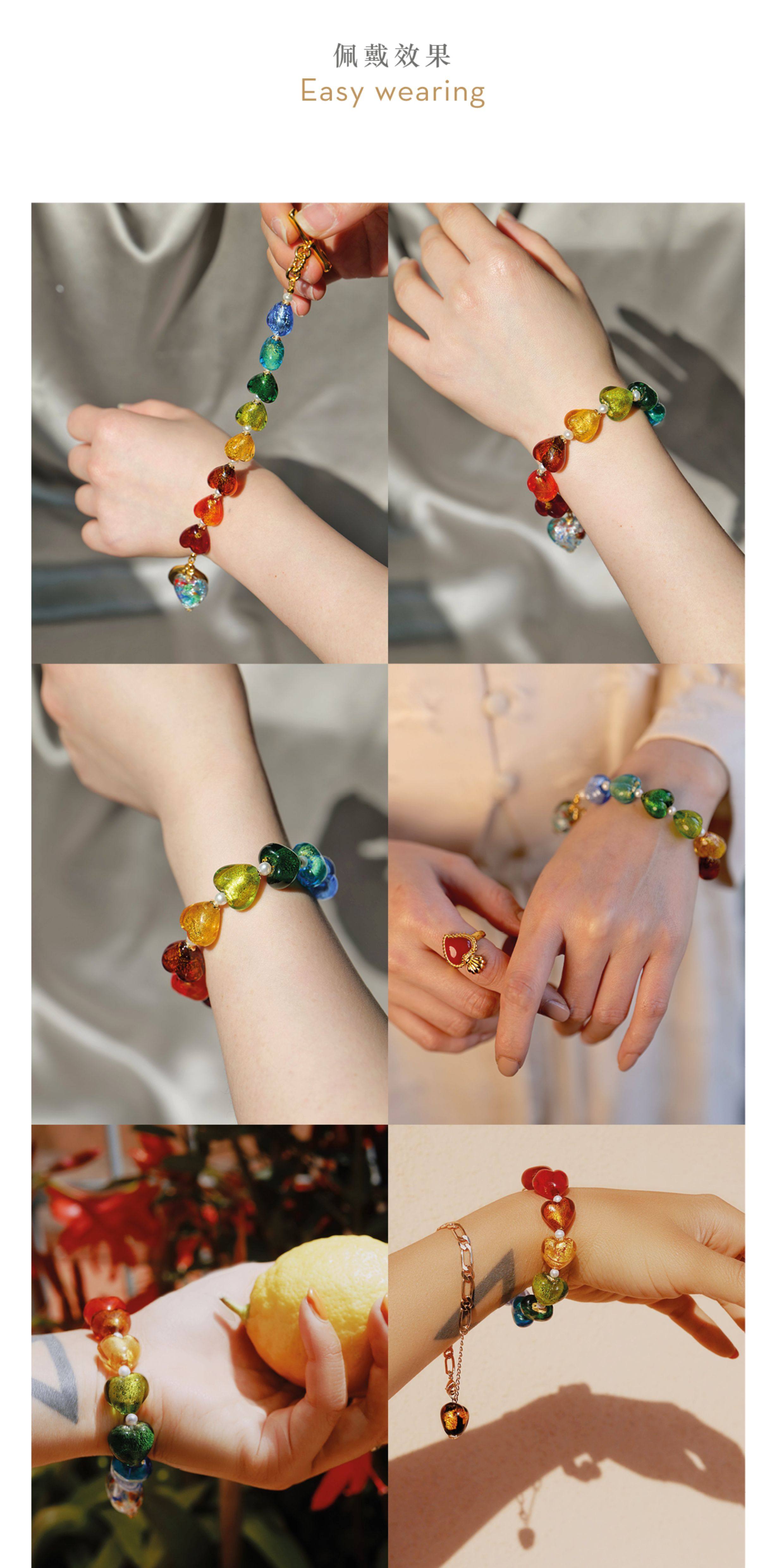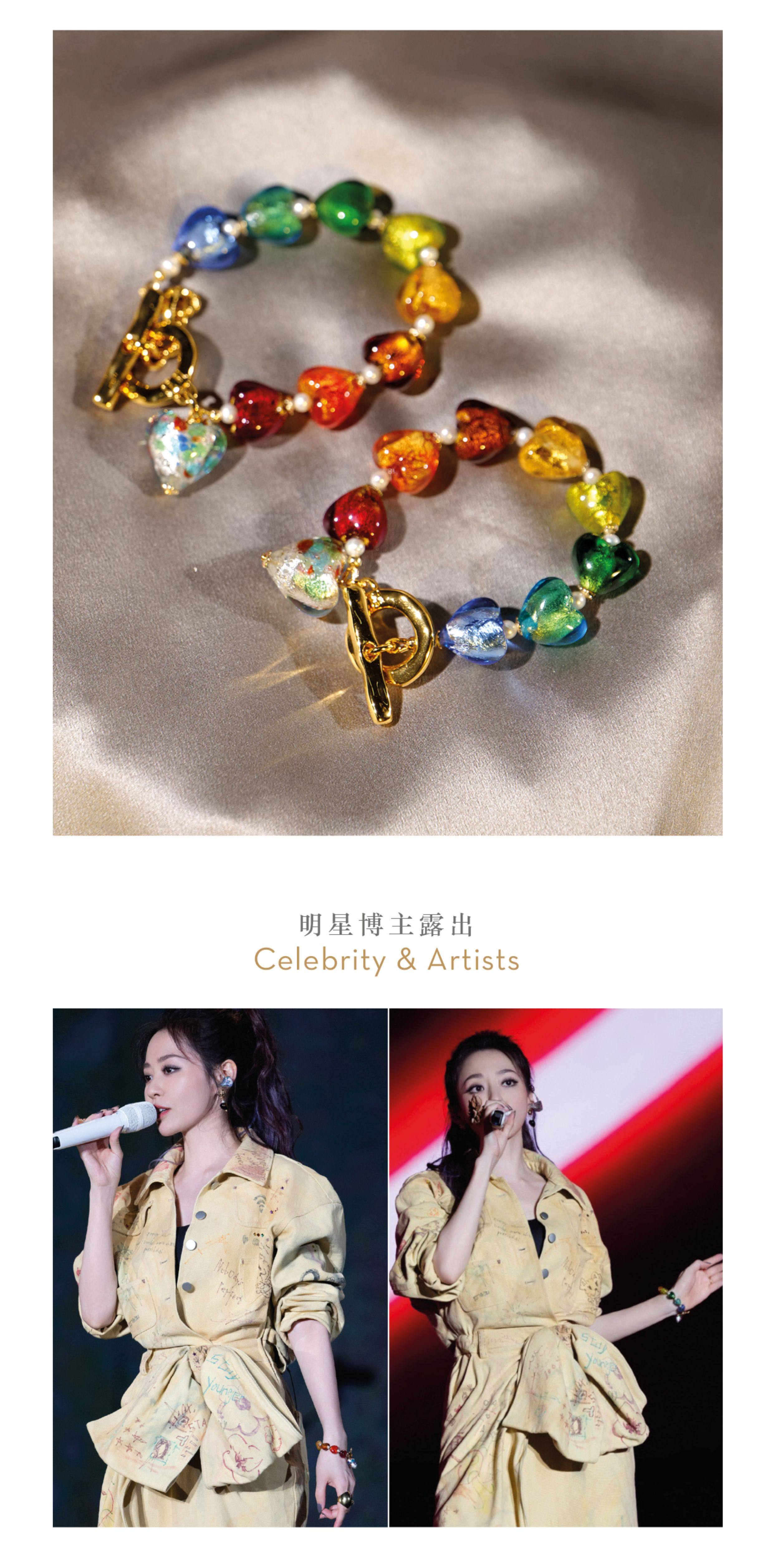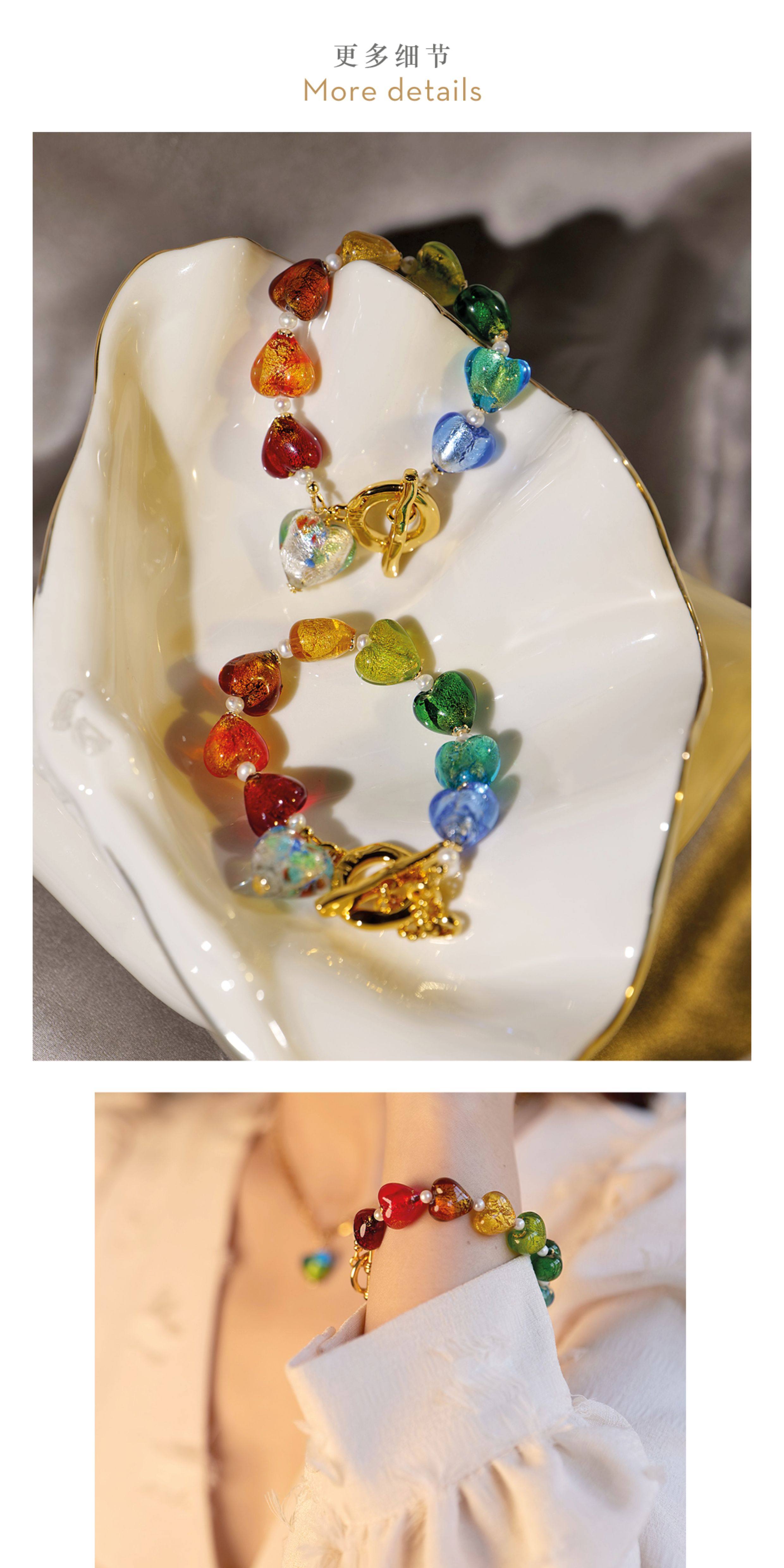 Simple Rituals Meng Ziyi's Same Style Venetian Handmade Glass Rainbow Heart Bracelet