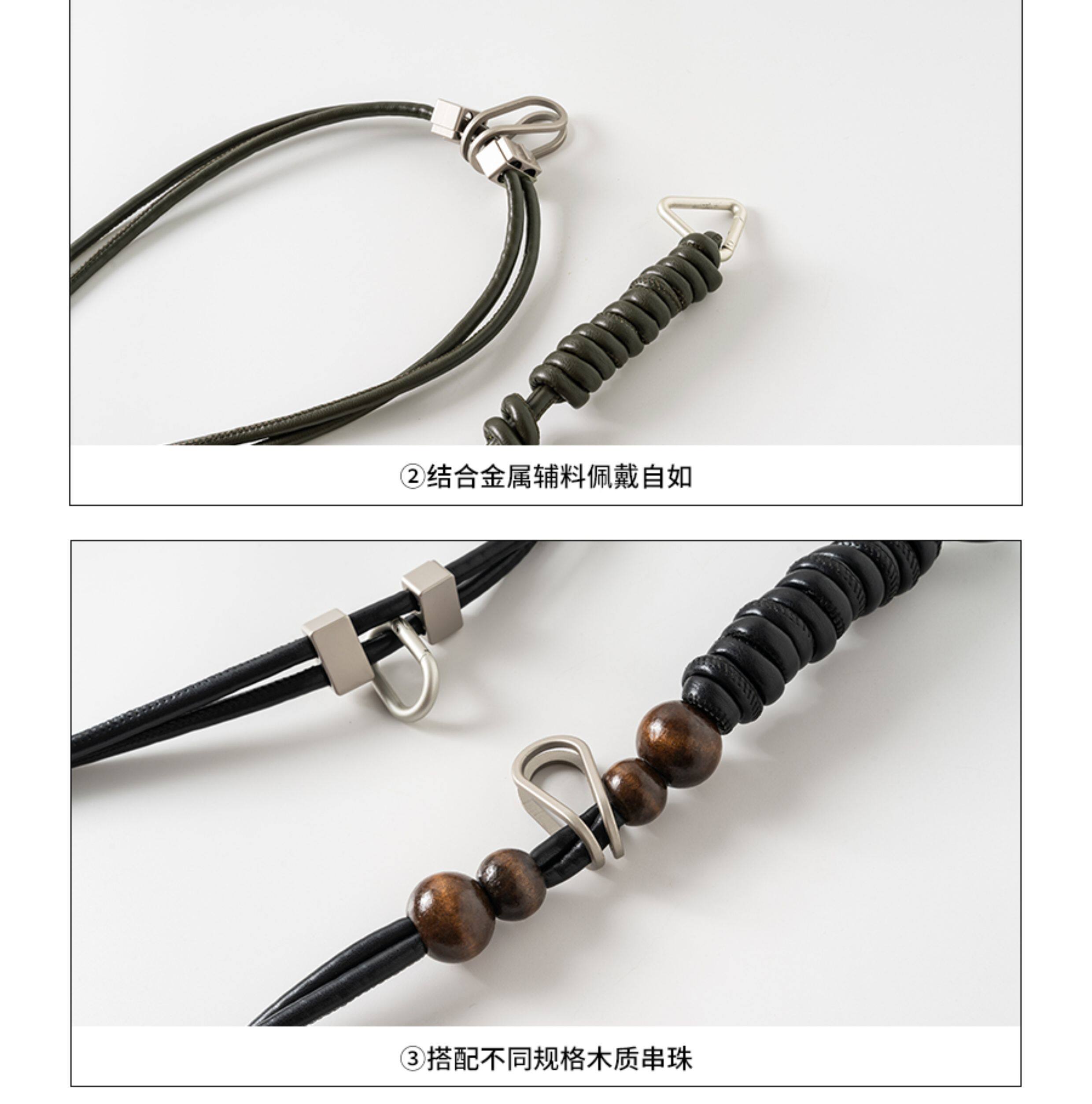 Baliang'Bale' Leather Rope Hand-Beaded Waist Accessory with Metal Decoration Waist Chain Belt