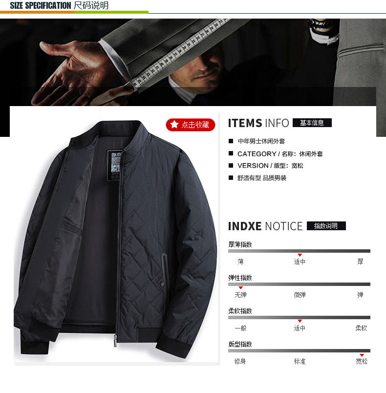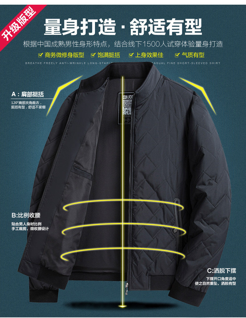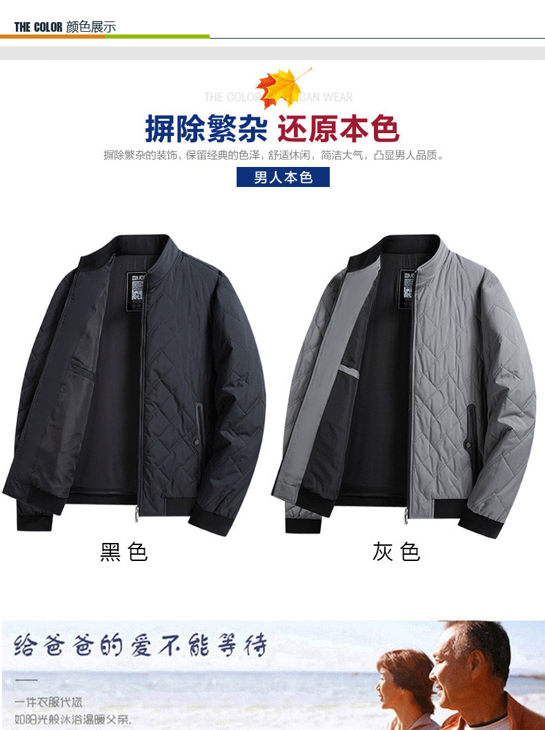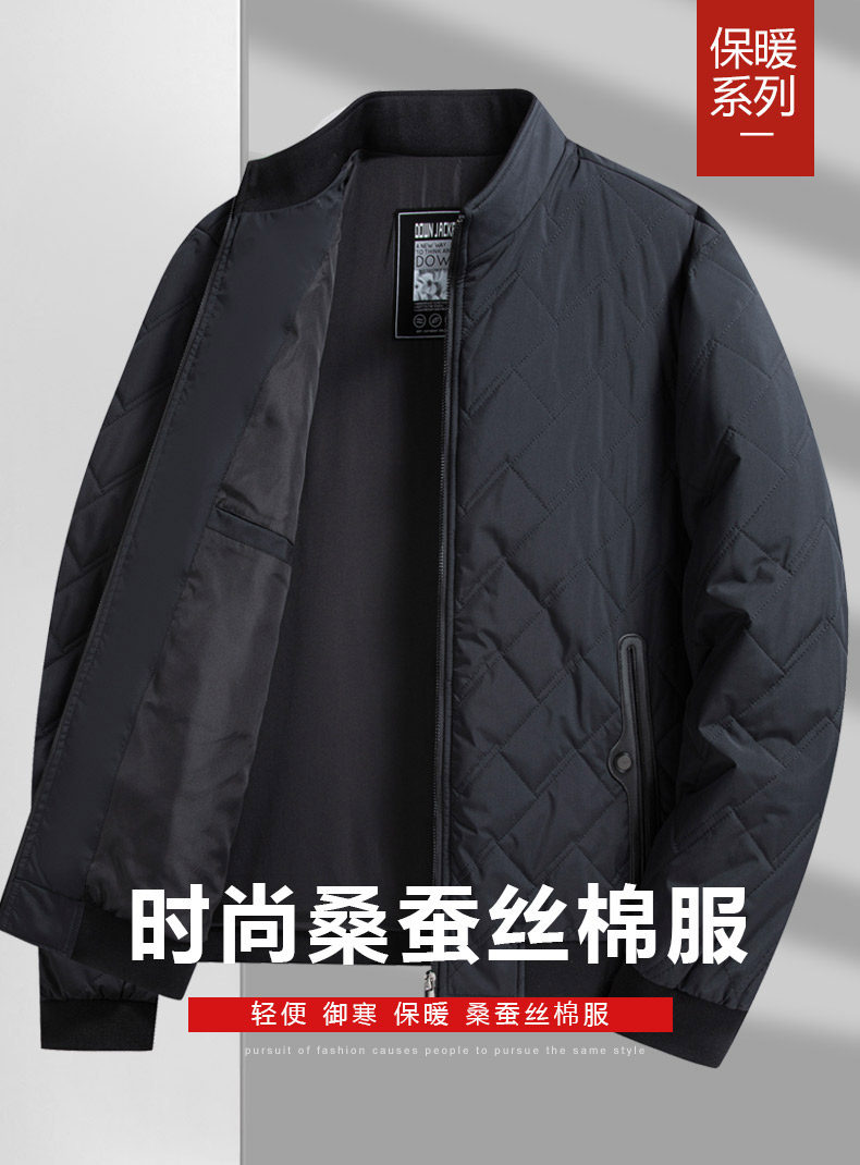 Silk Spring and Autumn Cotton Jacket for Middle-Aged Men, Lightweight Cotton Coat, Stand Collar Dad Jacket, Double Cotton