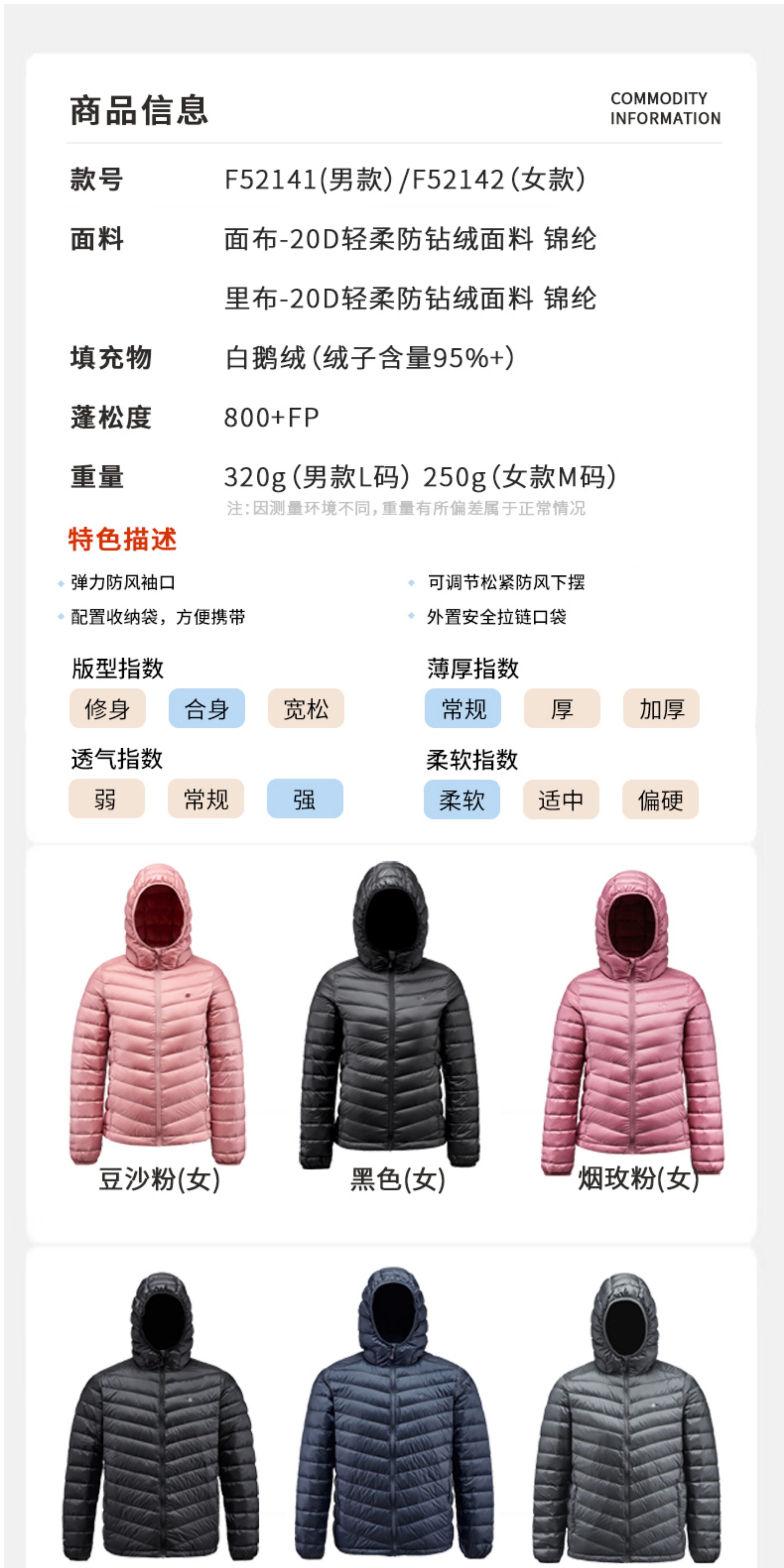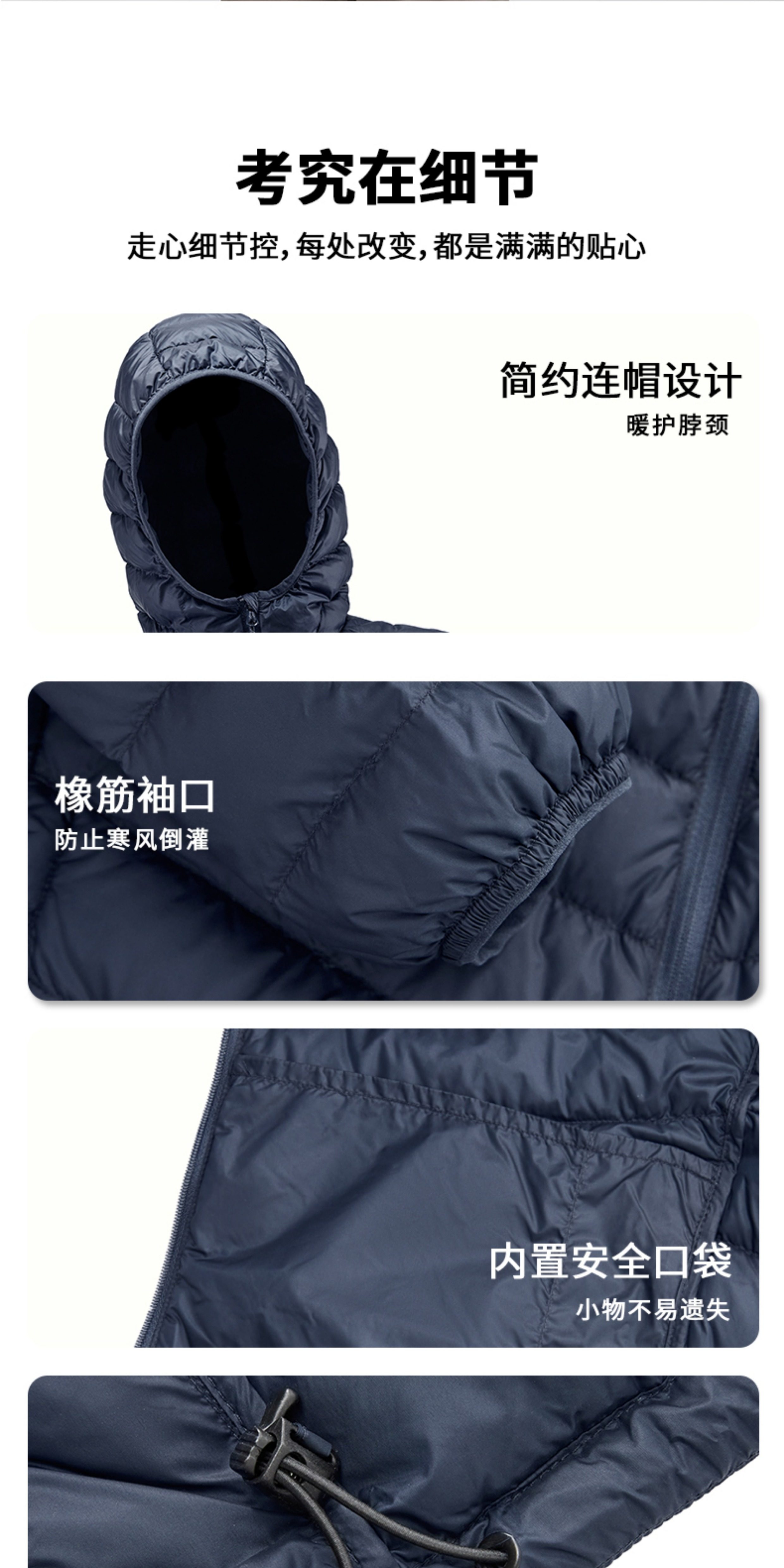 Junyu Outdoor Lightweight down Jacket for Men, Ultra-Light and Warm, Hooded 800 Fill Power down Jacket for Women, Short Coat 141