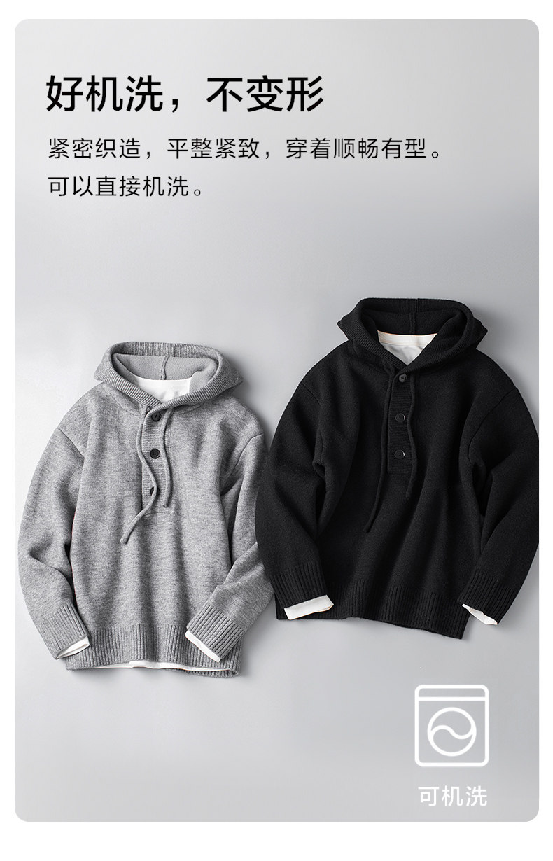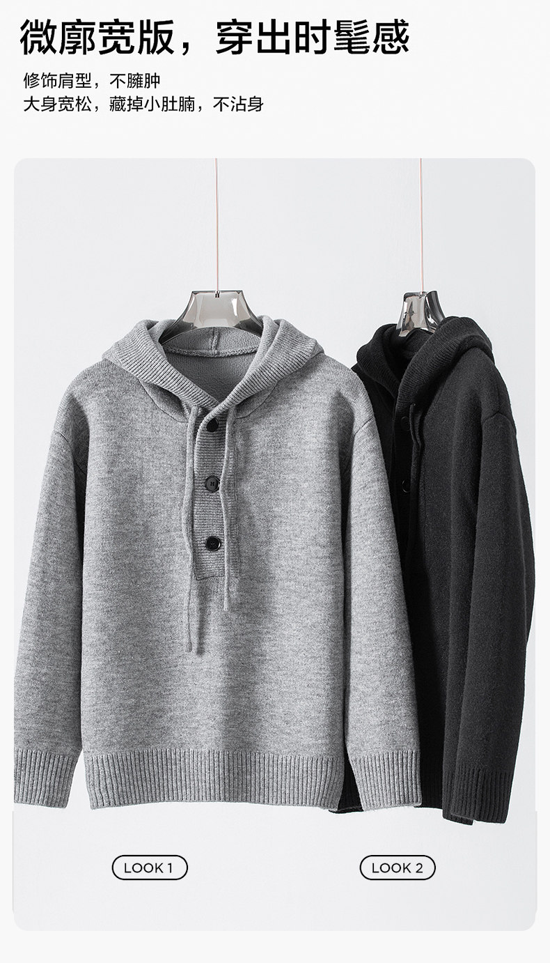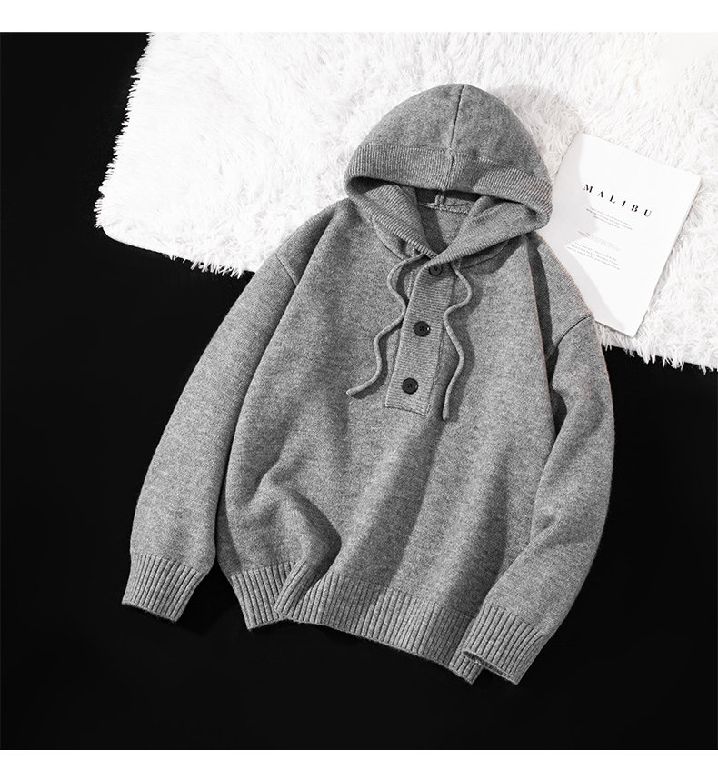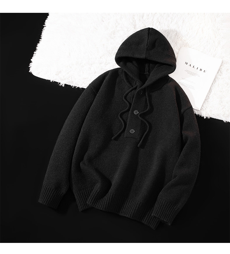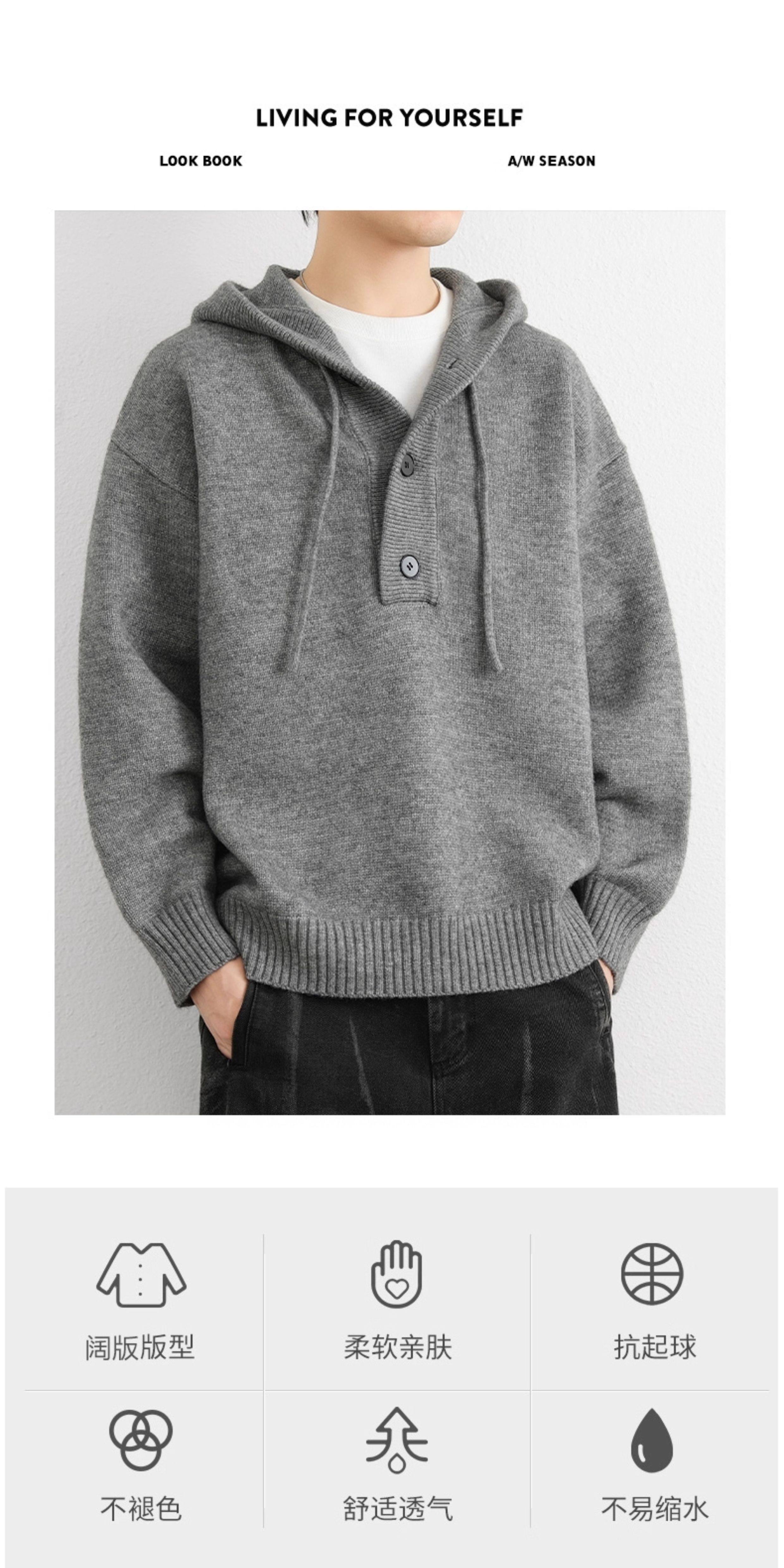 Ursbob Autumn and Winter Men's Sweater Loose Hooded Pullover Solid Color Knitwear Youth Knitwear High-End Outerwear