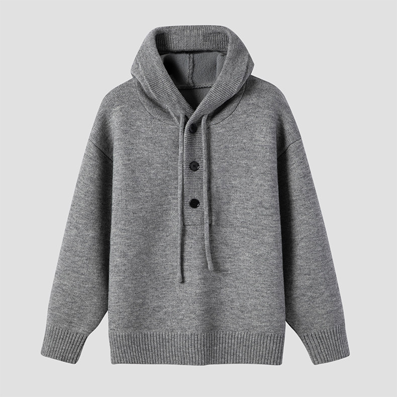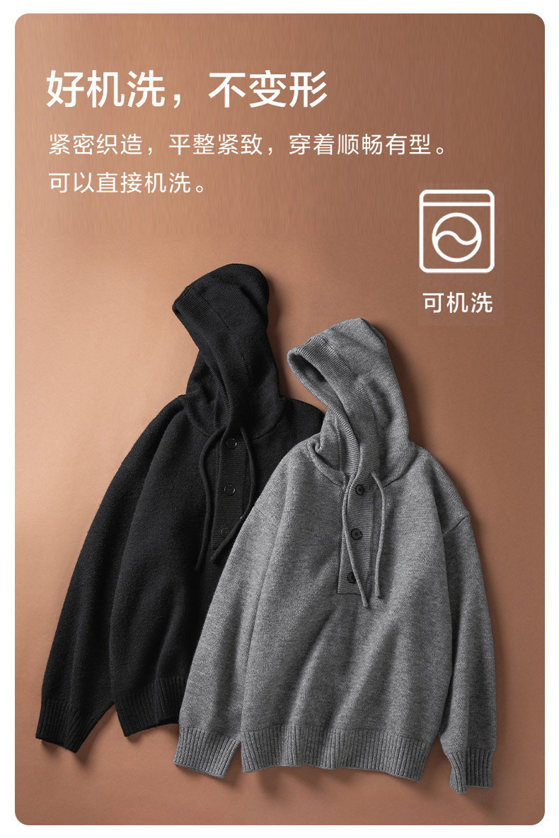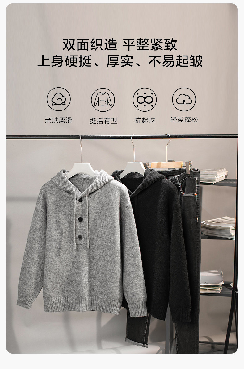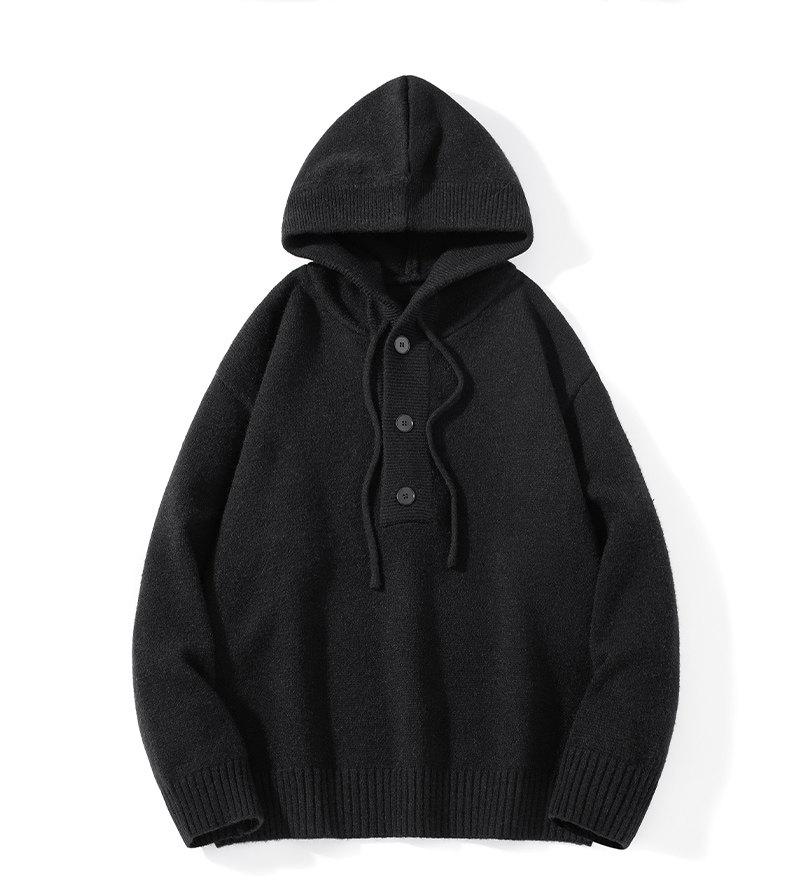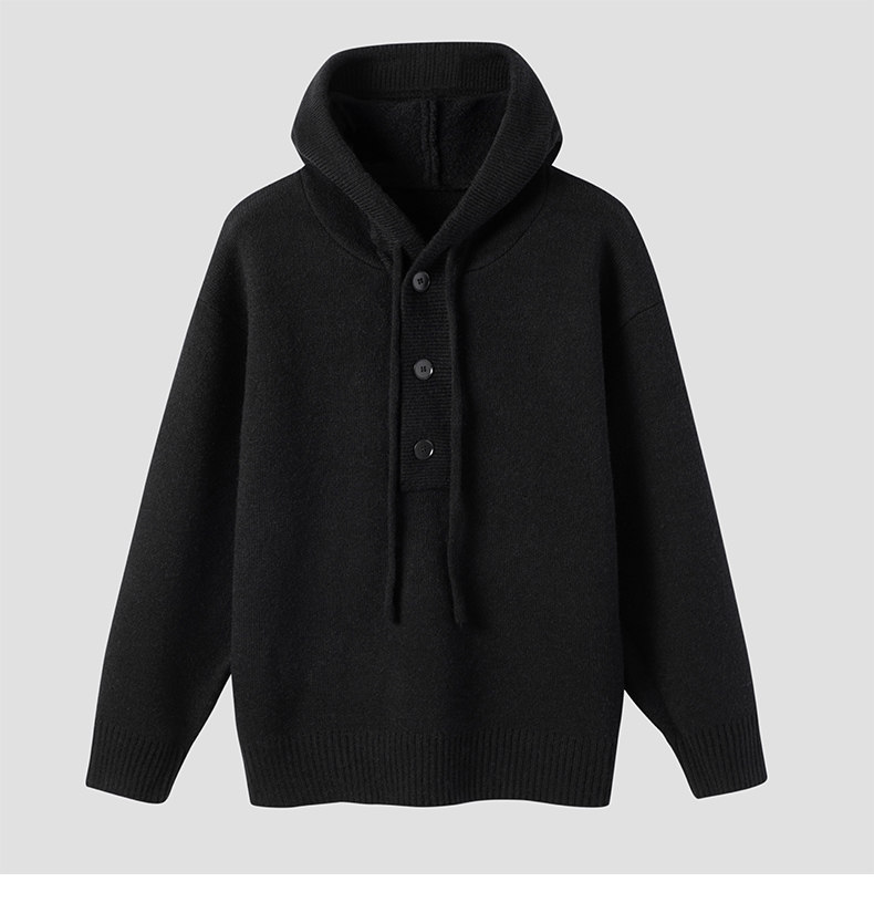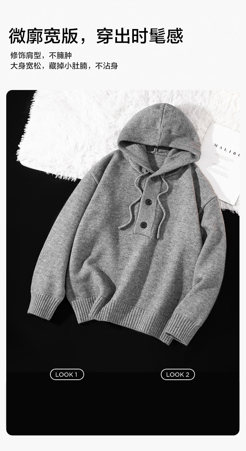 Ursbob Autumn and Winter Men's Sweater Loose Hooded Pullover Solid Color Knitwear Youth Knitwear High-End Outerwear