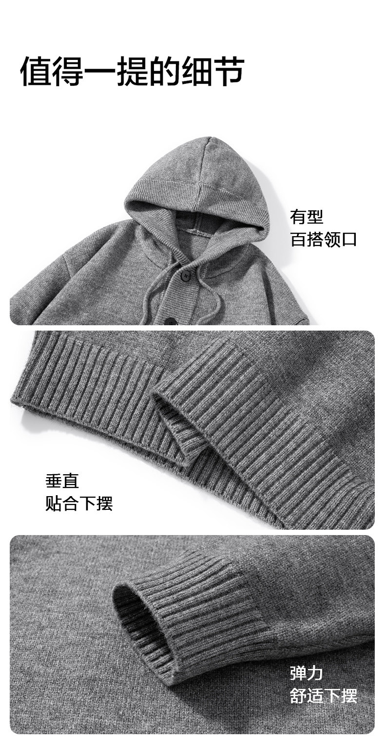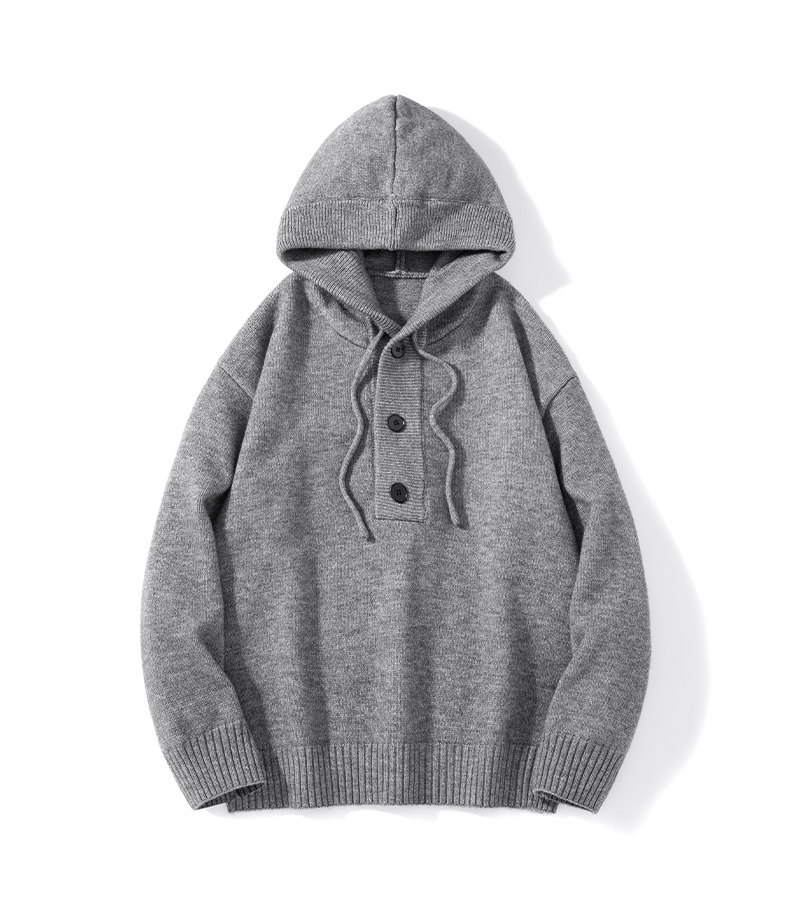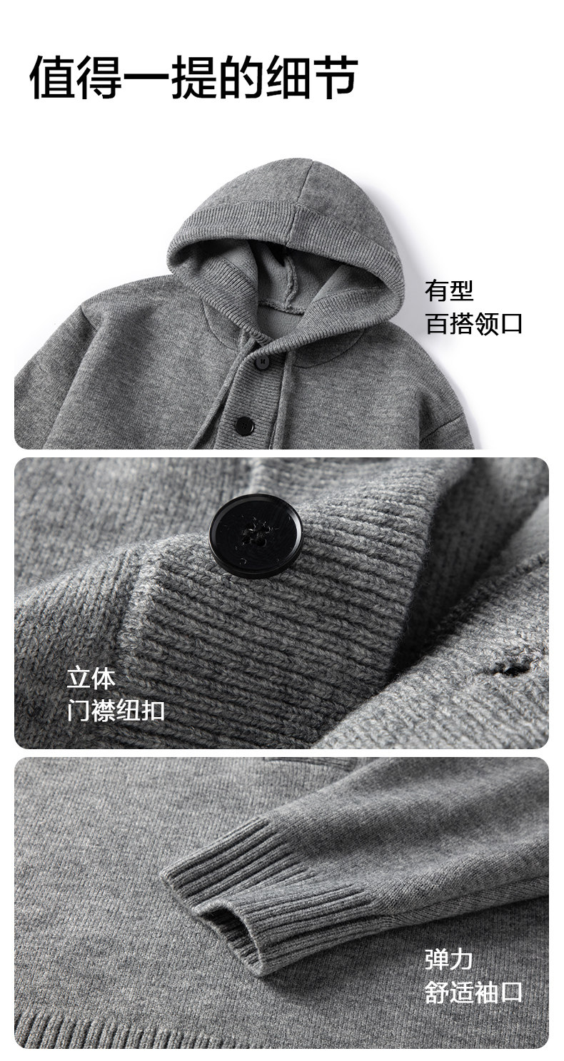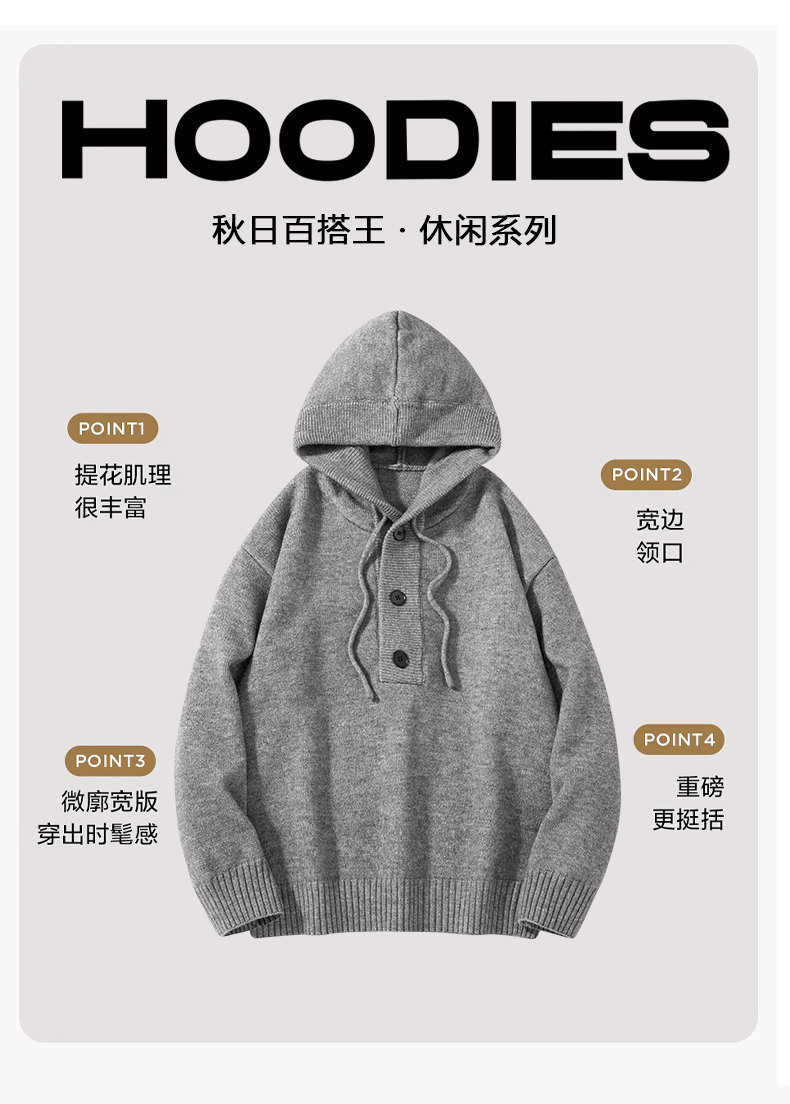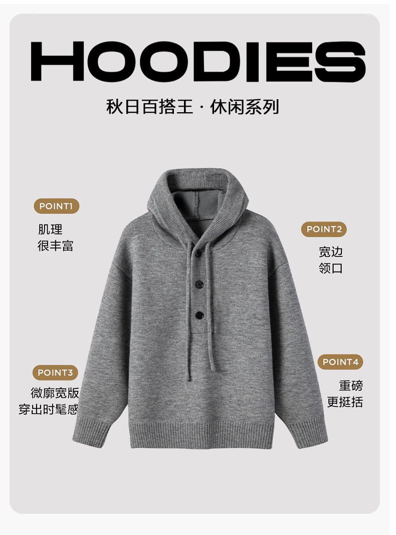 Ursbob Autumn and Winter Men's Sweater Loose Hooded Pullover Solid Color Knitwear Youth Knitwear High-End Outerwear