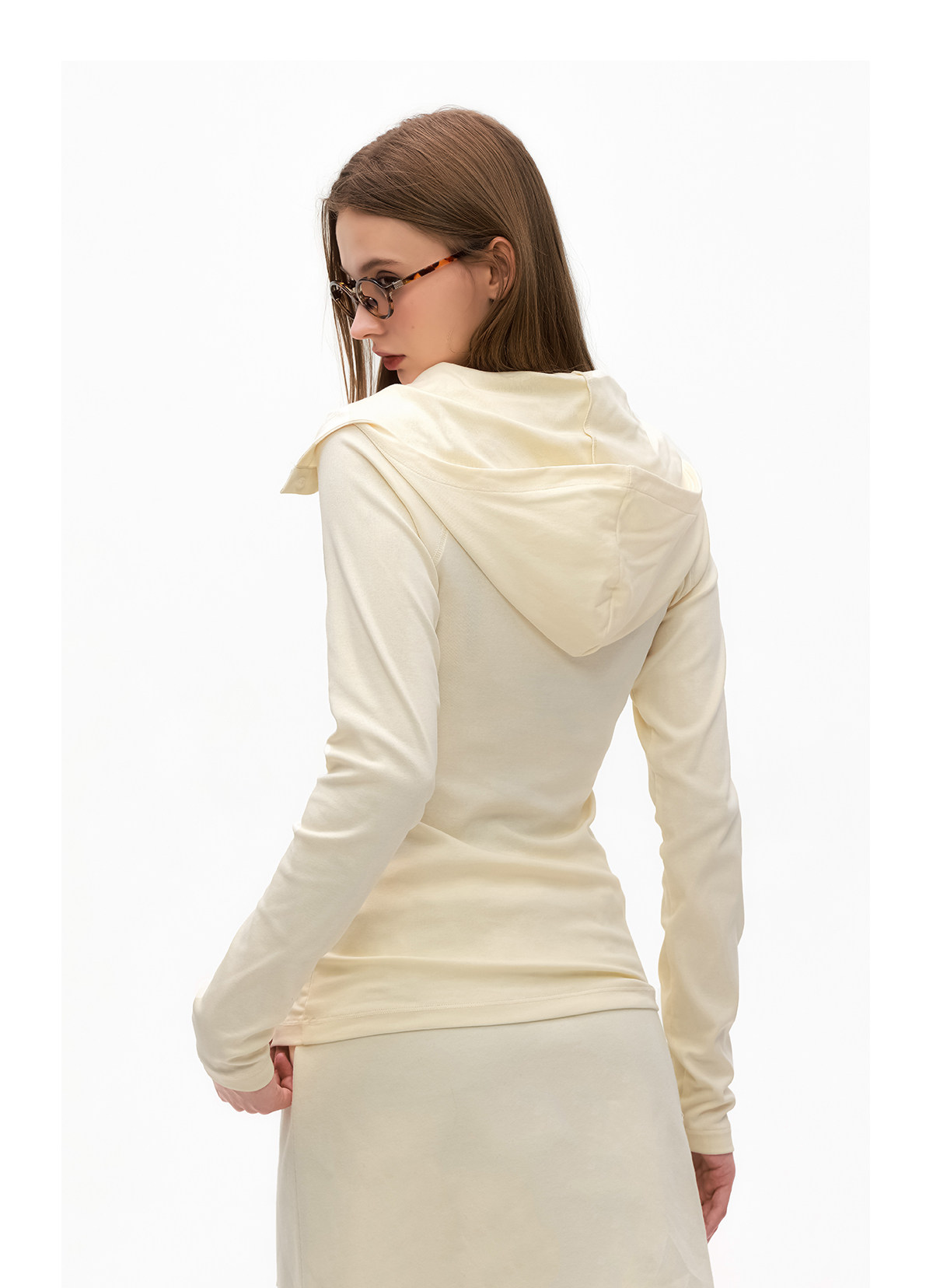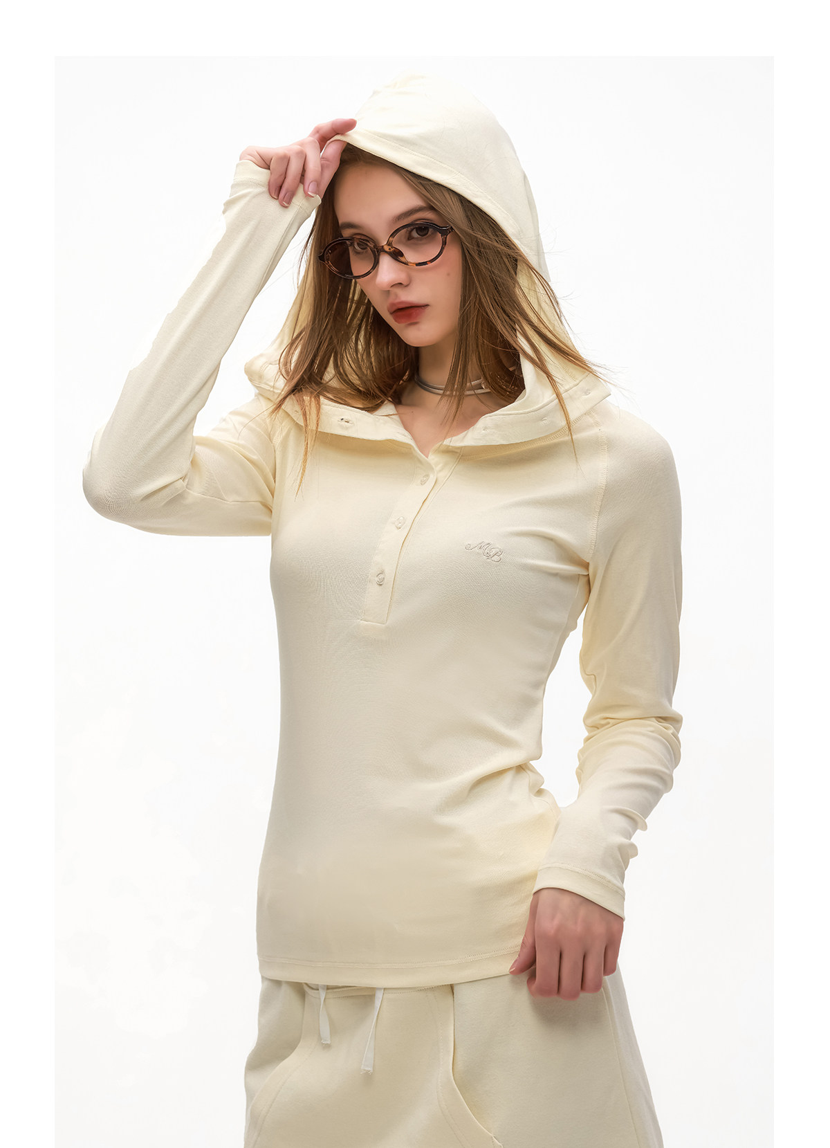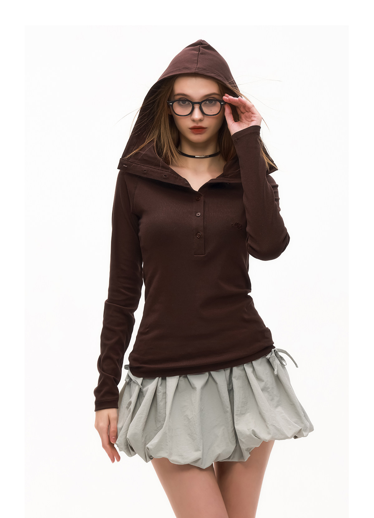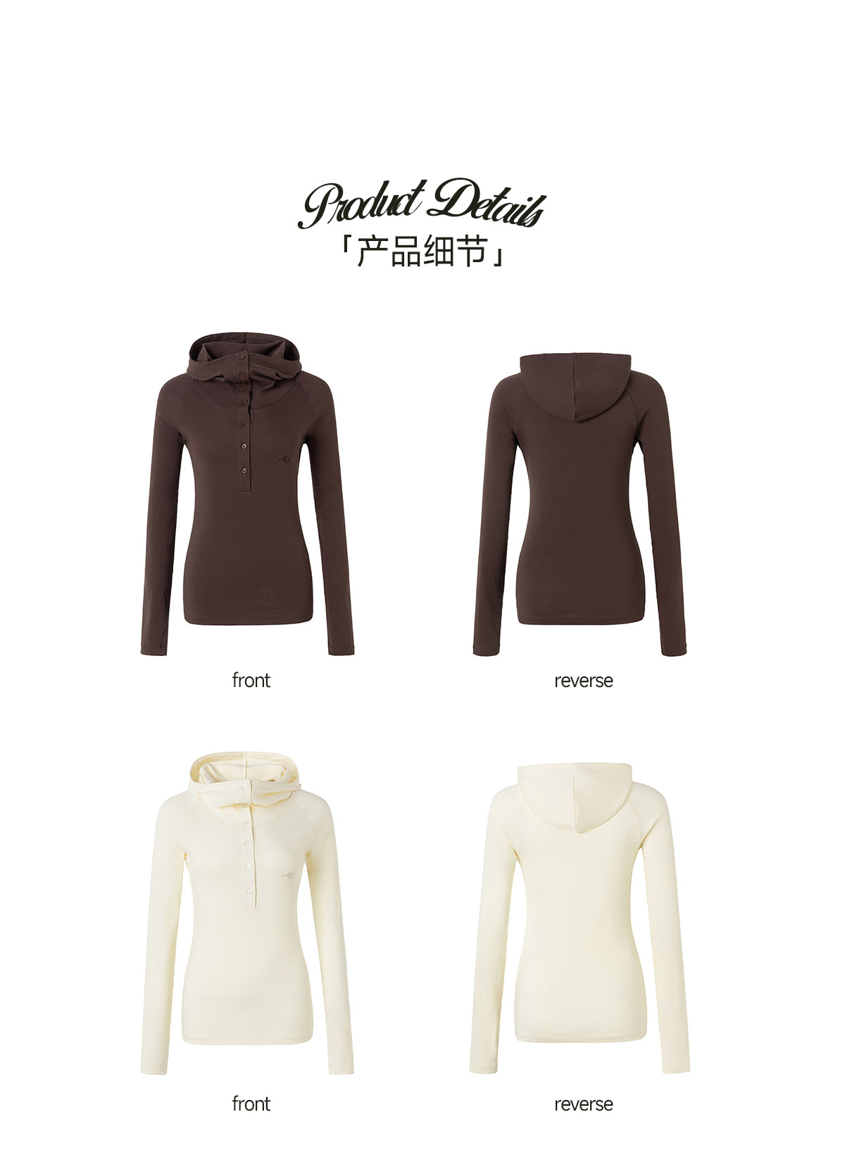 Moodberry American Retro Henry High-Neck Hooded Slim Long-Sleeved T-Shirt for Women Spring Sports Slimming Bottoming Shirt