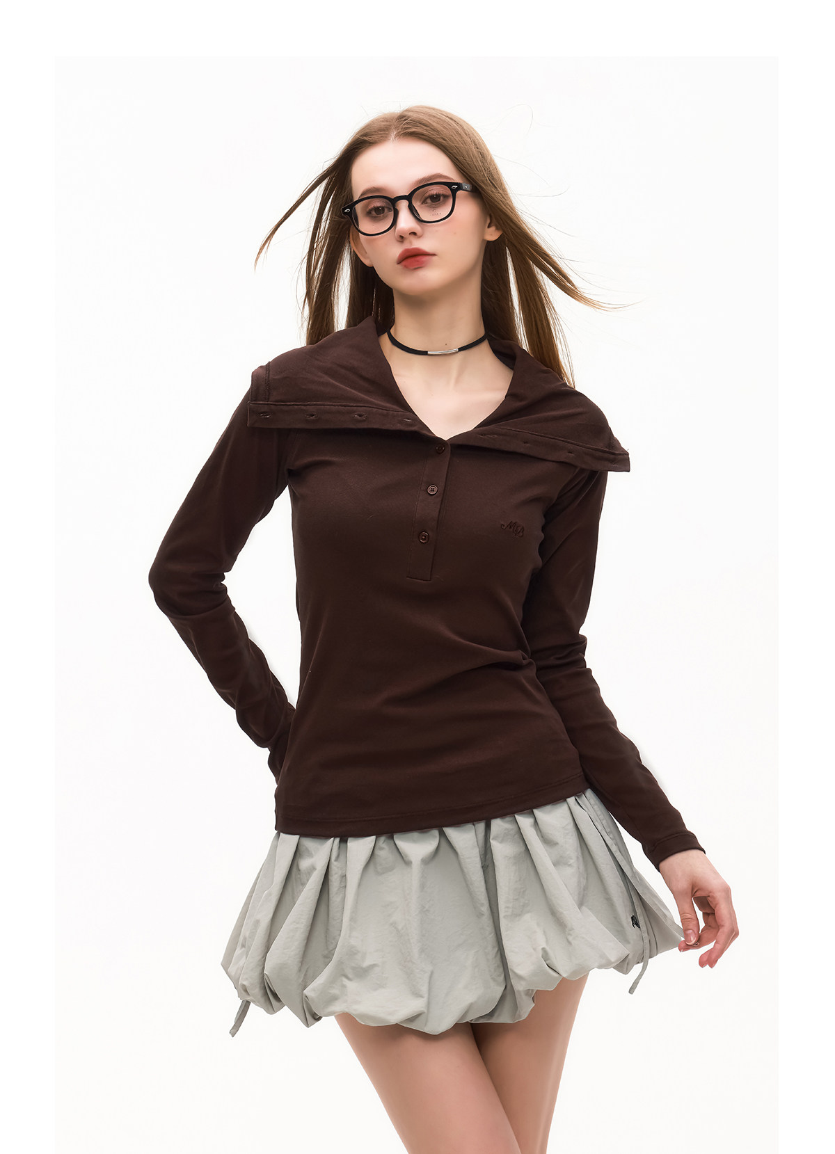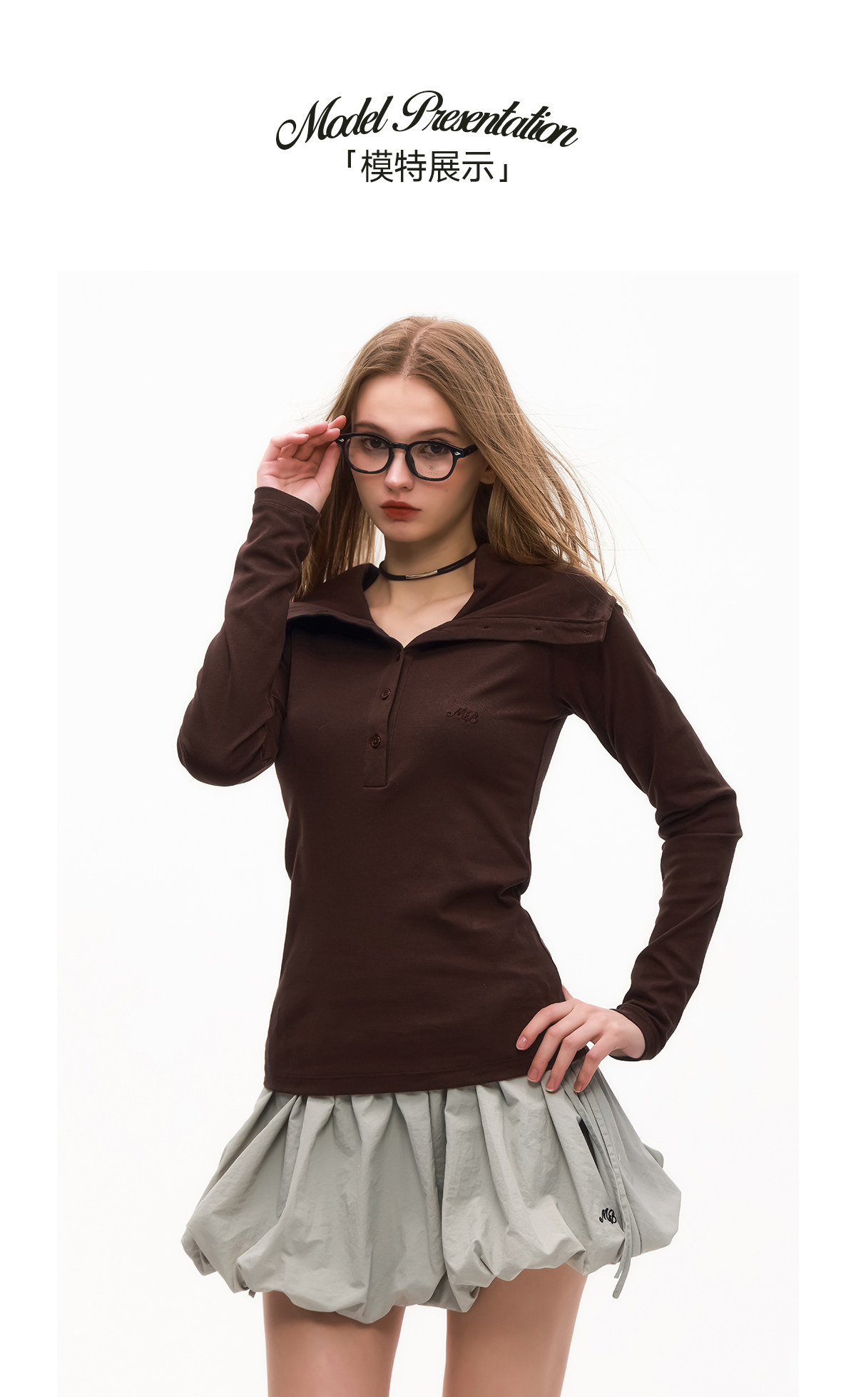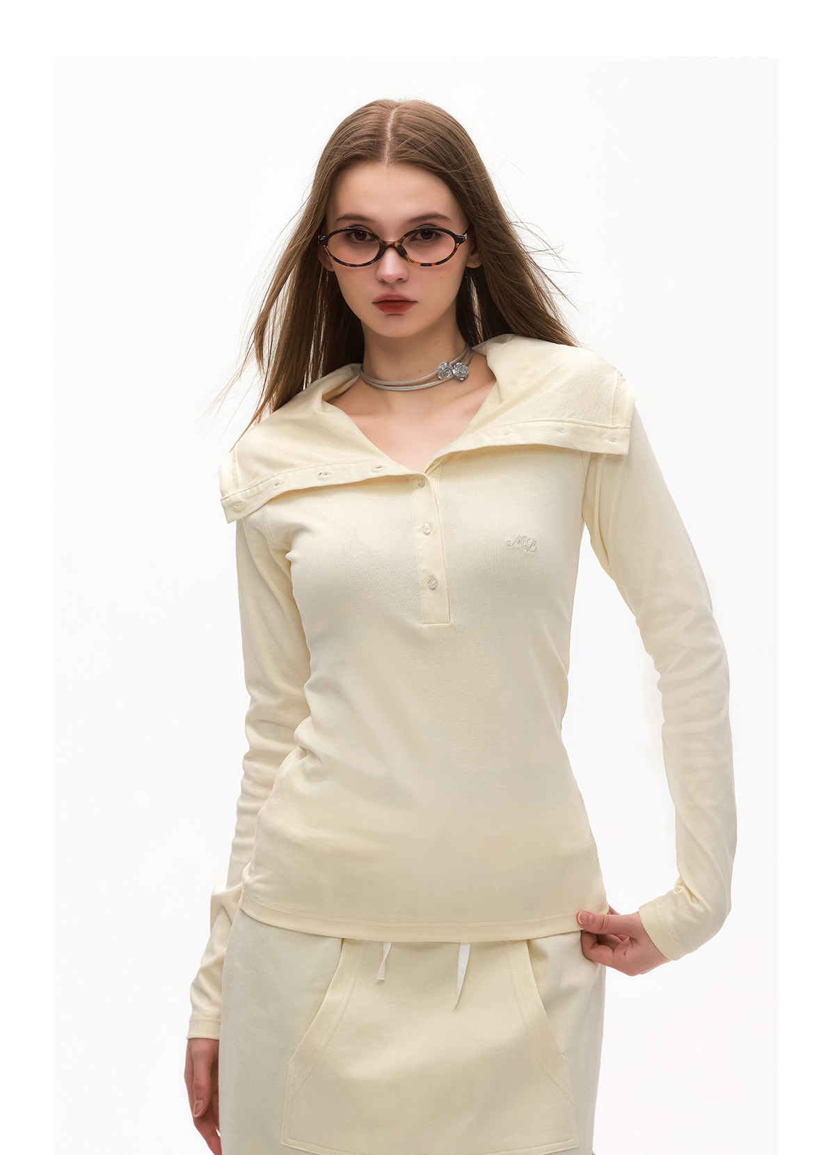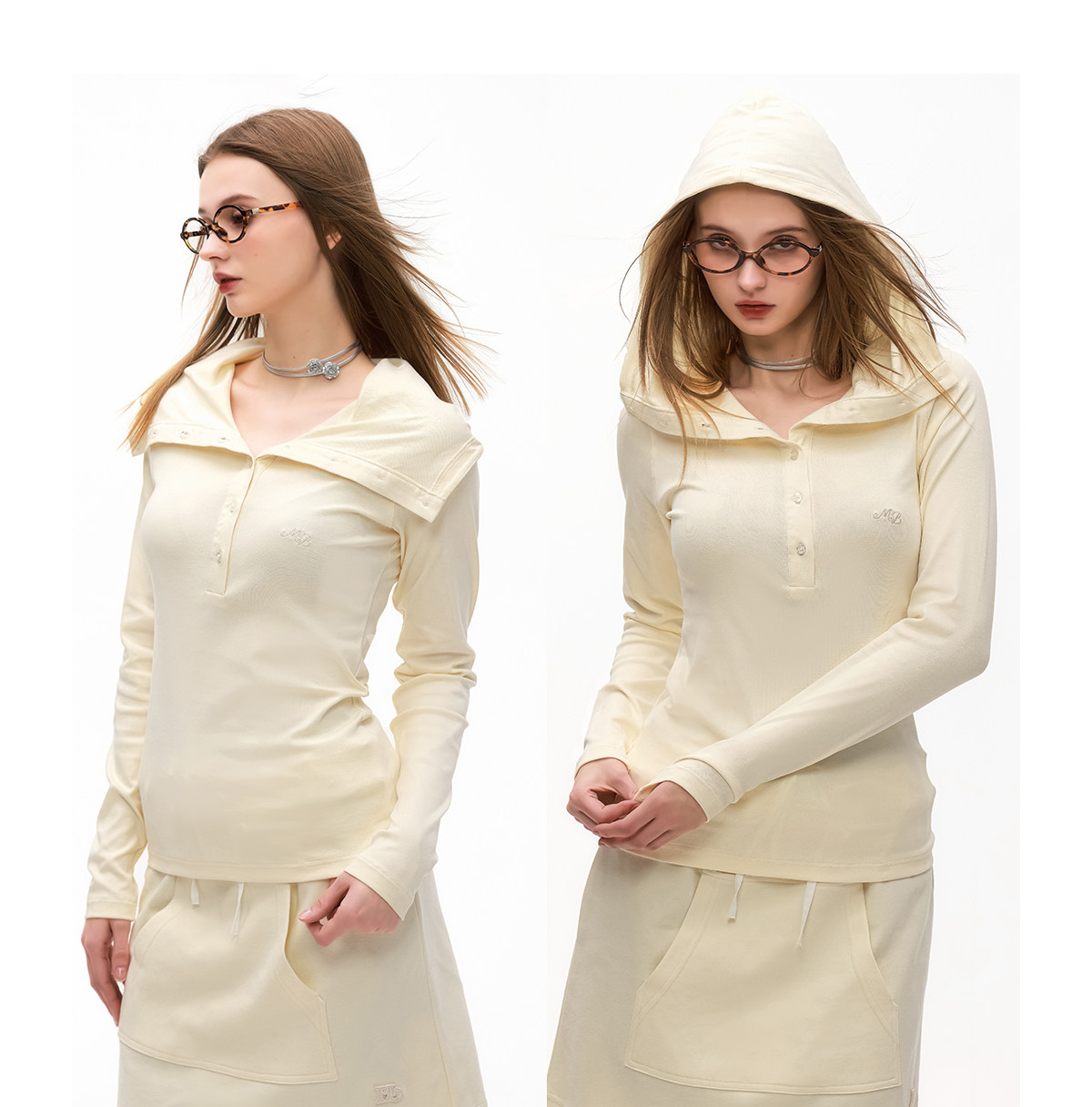 Moodberry American Retro Henry High-Neck Hooded Slim Long-Sleeved T-Shirt for Women Spring Sports Slimming Bottoming Shirt