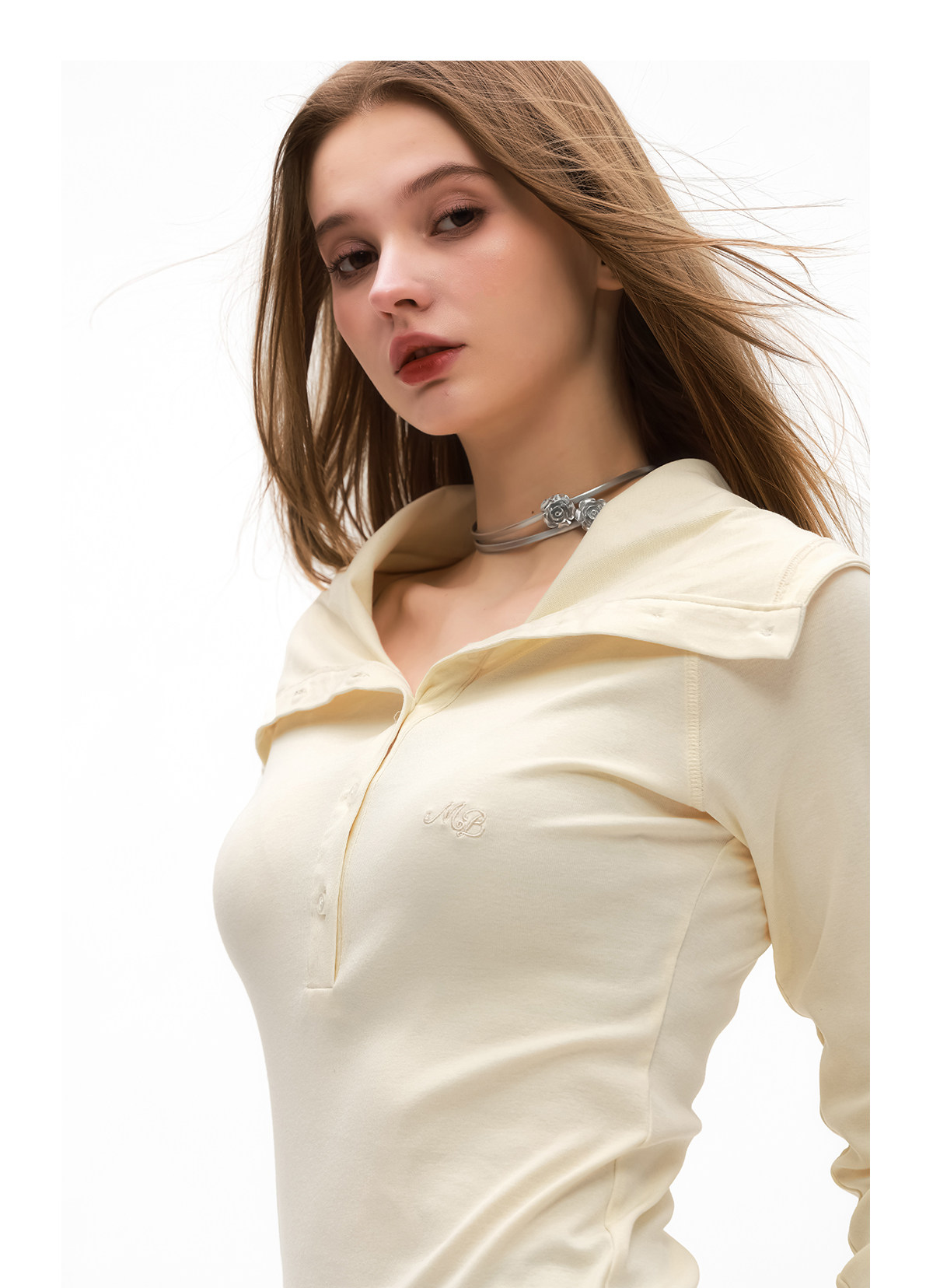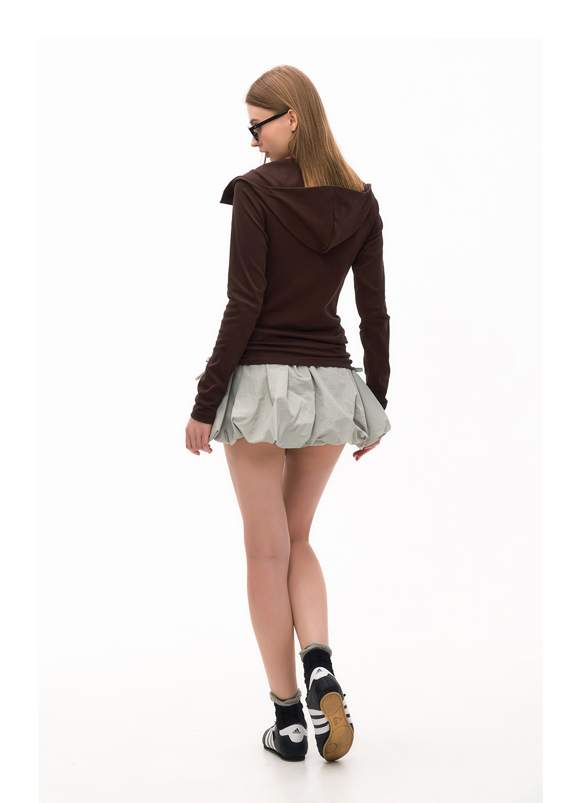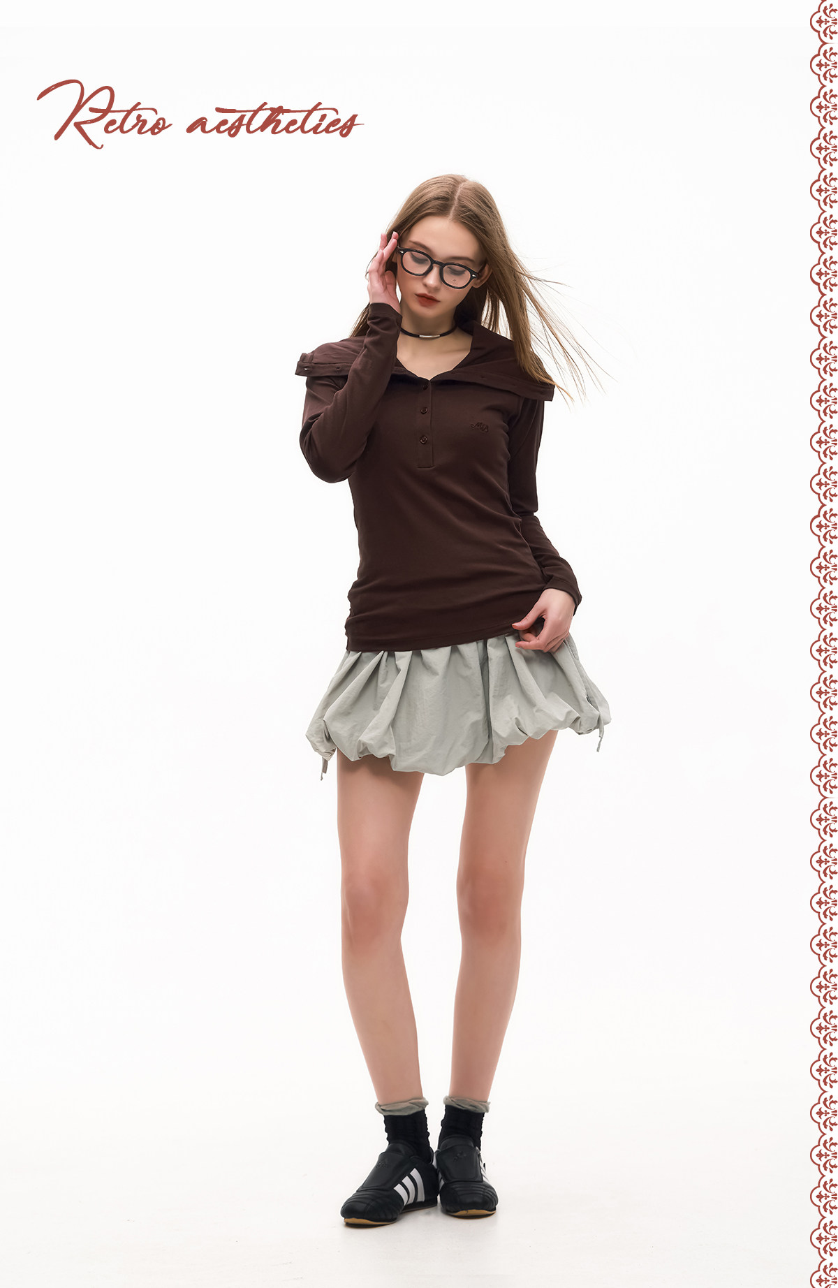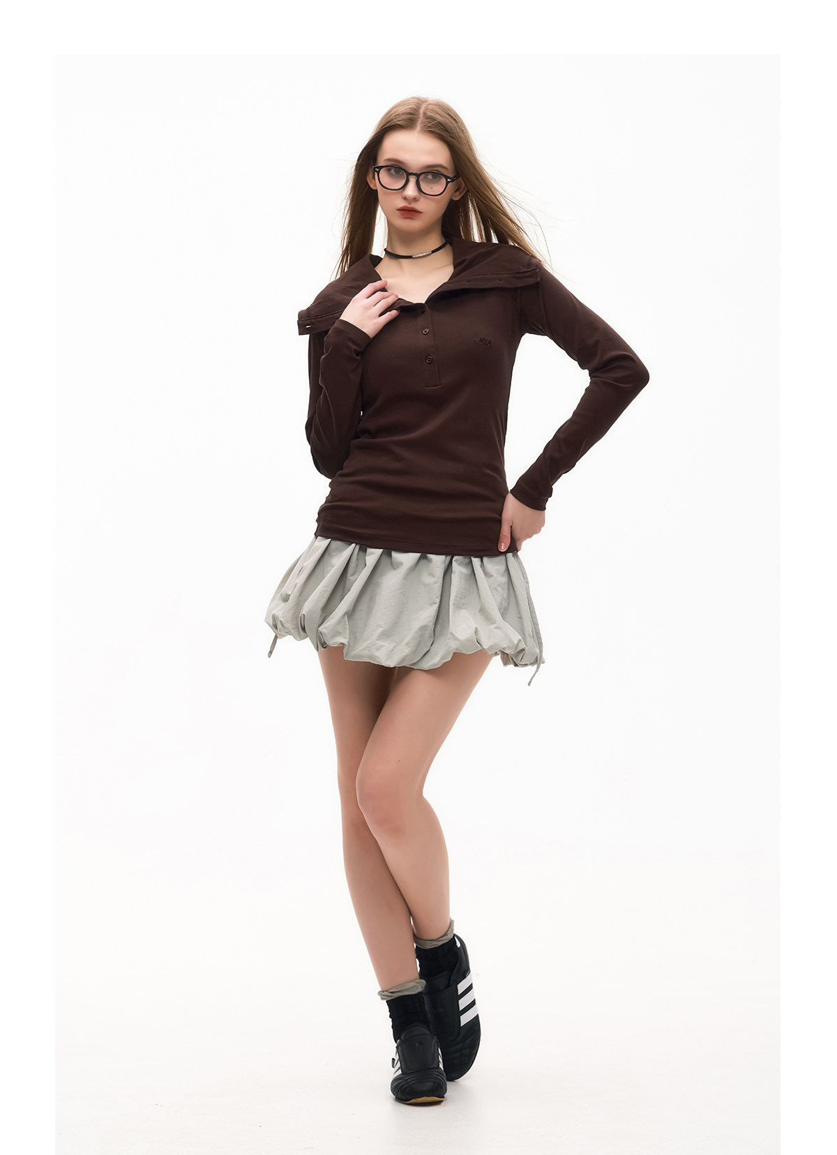 Moodberry American Retro Henry High-Neck Hooded Slim Long-Sleeved T-Shirt for Women Spring Sports Slimming Bottoming Shirt