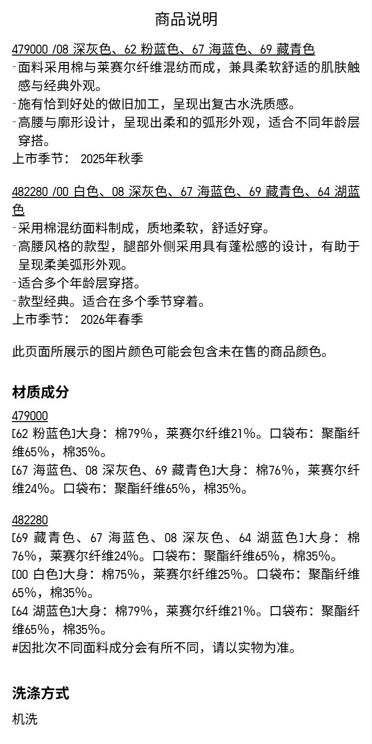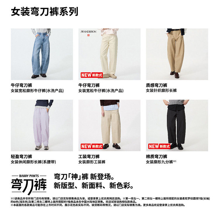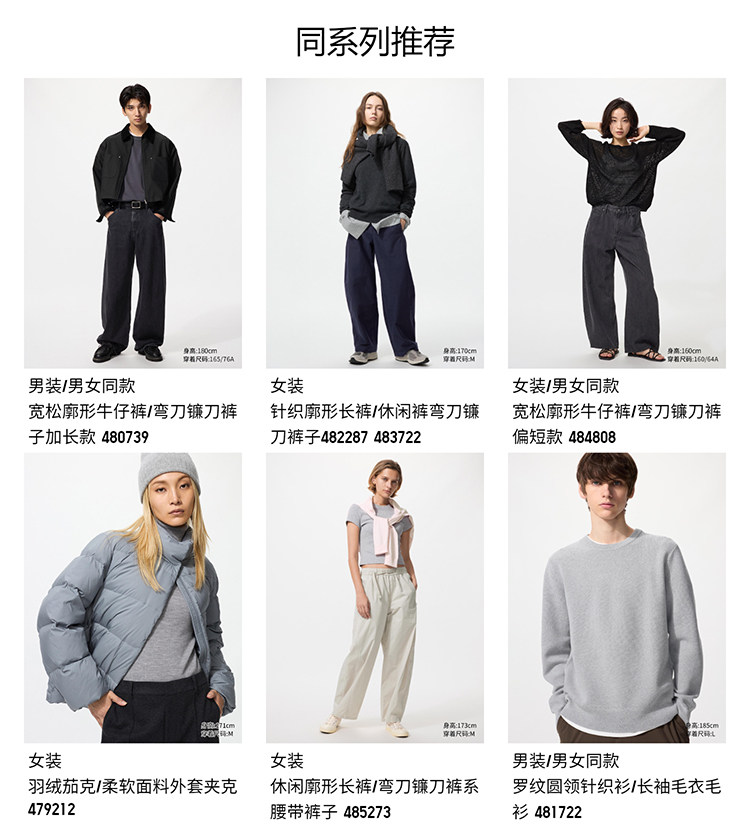 Uniqlo Women's and Men's Loose-Fit Jeans/Curved Hem Pants 479000 482280