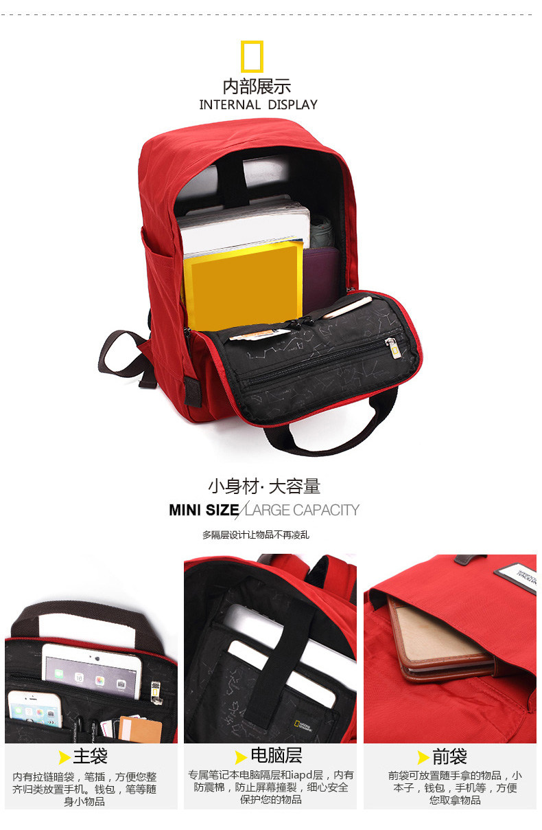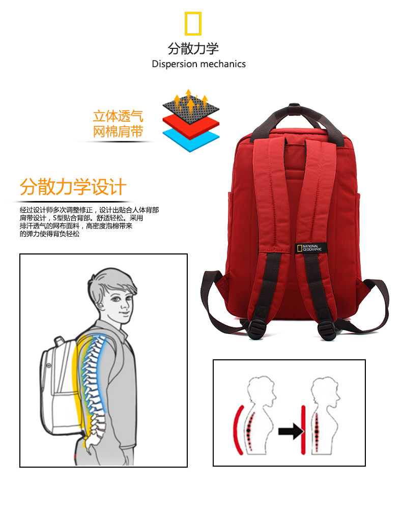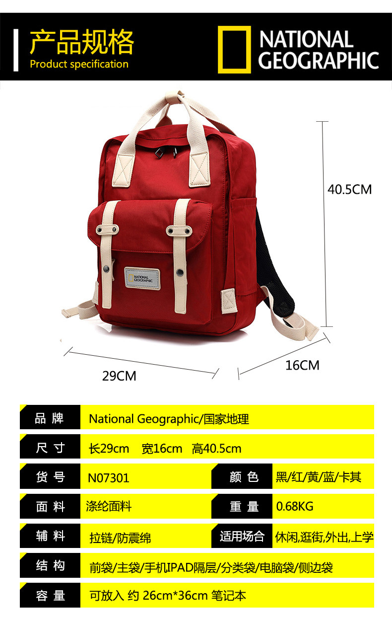 National Geographic Backpack, Large Capacity Student Computer Bag, High-Looking School Bag, Travel Couple Computer Backpack