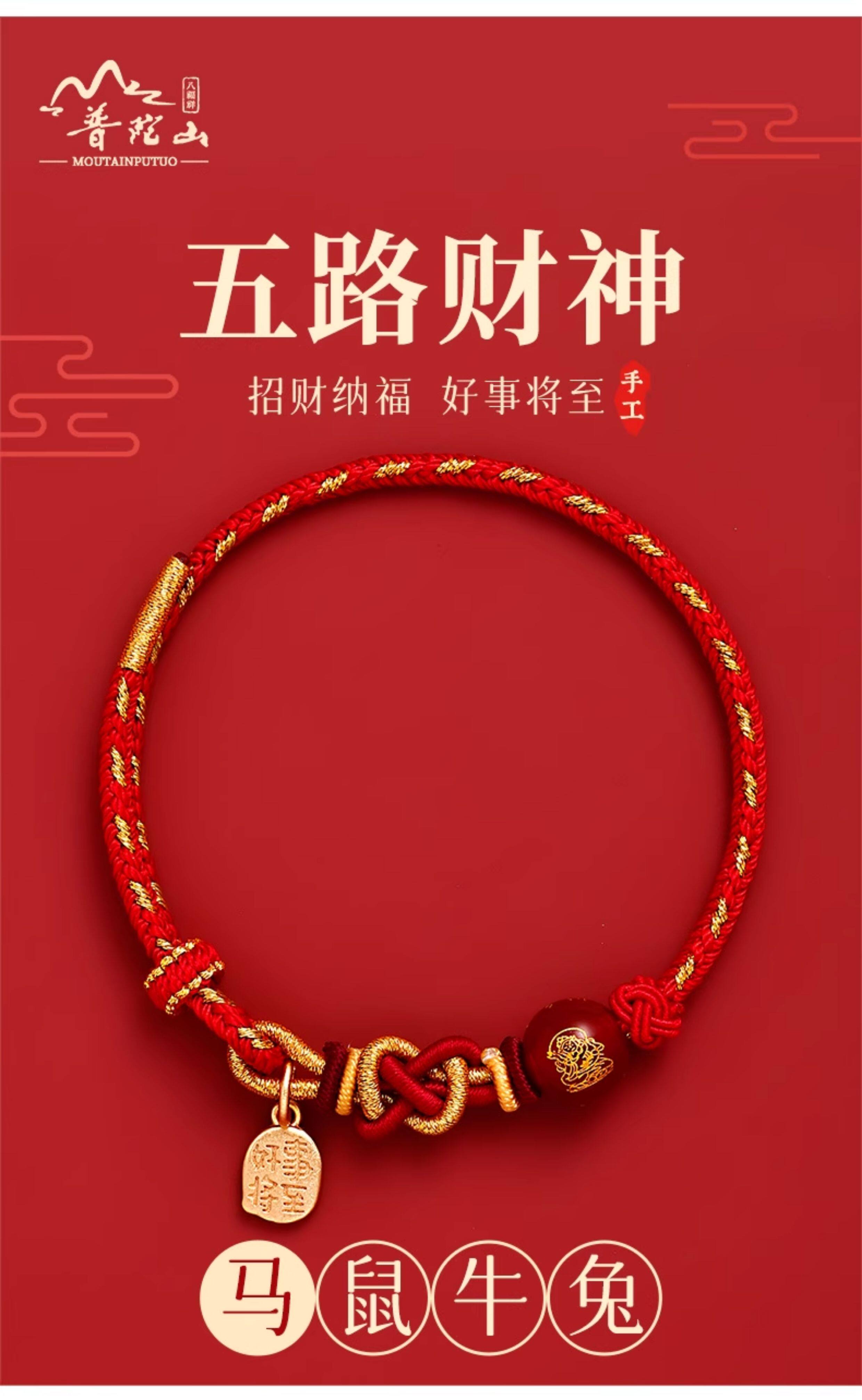 2026 Year of the Horse Red String Bracelet Five Directions God of Wealth Horse Zodiac Year Braided Rope Zodiac Horse Rat Ox Rabbit Tai Sui Bracelet