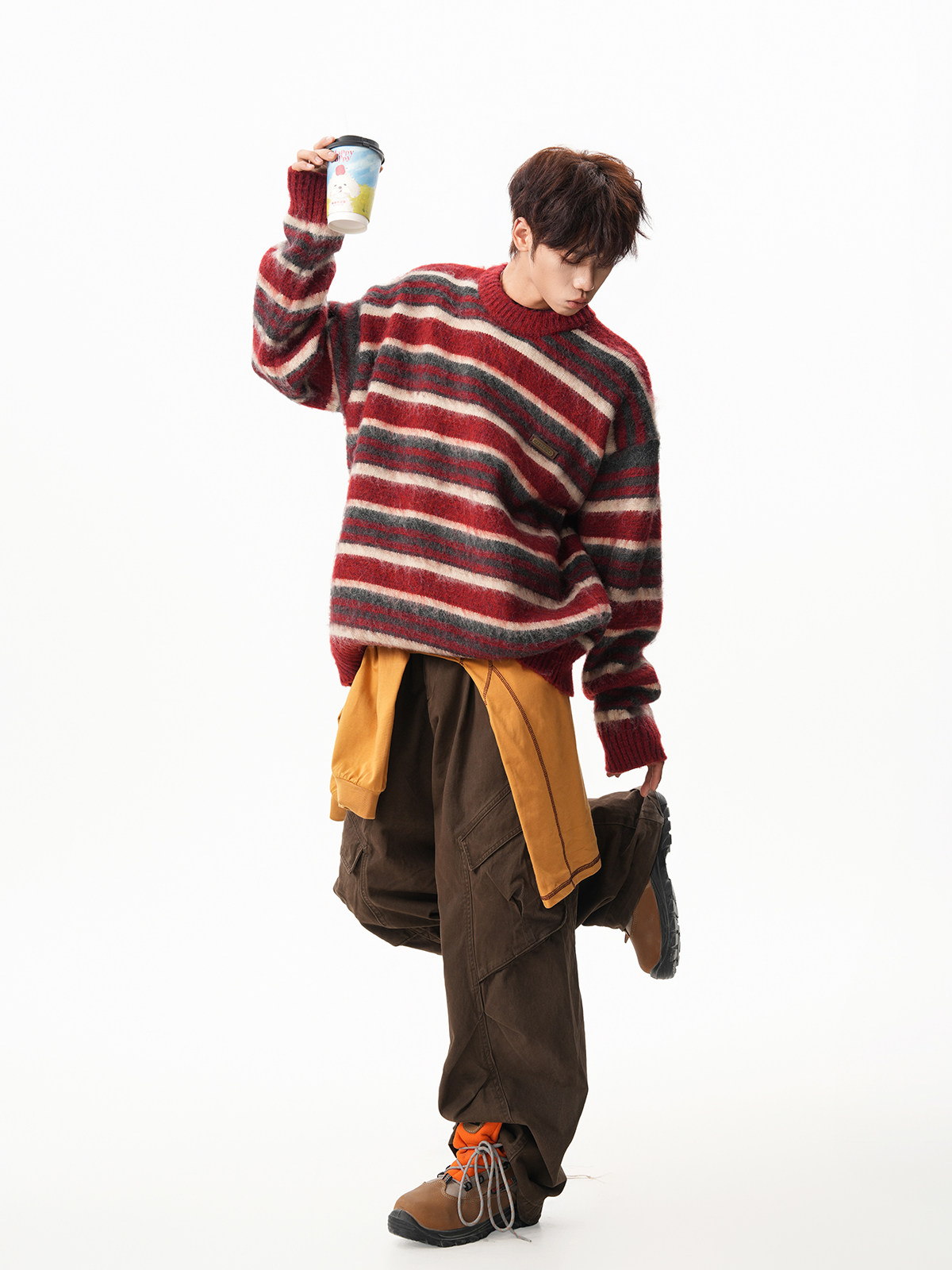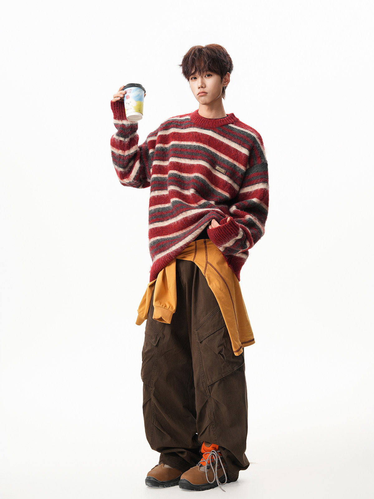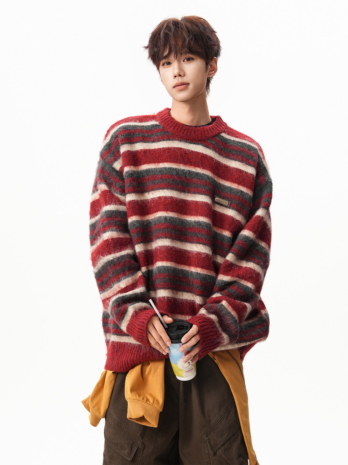 American-Style Mohair Striped Color-Blocked Crew Neck Sweater for Men and Women, Autumn and Winter Lazy Style Knitted Sweater, Christmas Red Coat