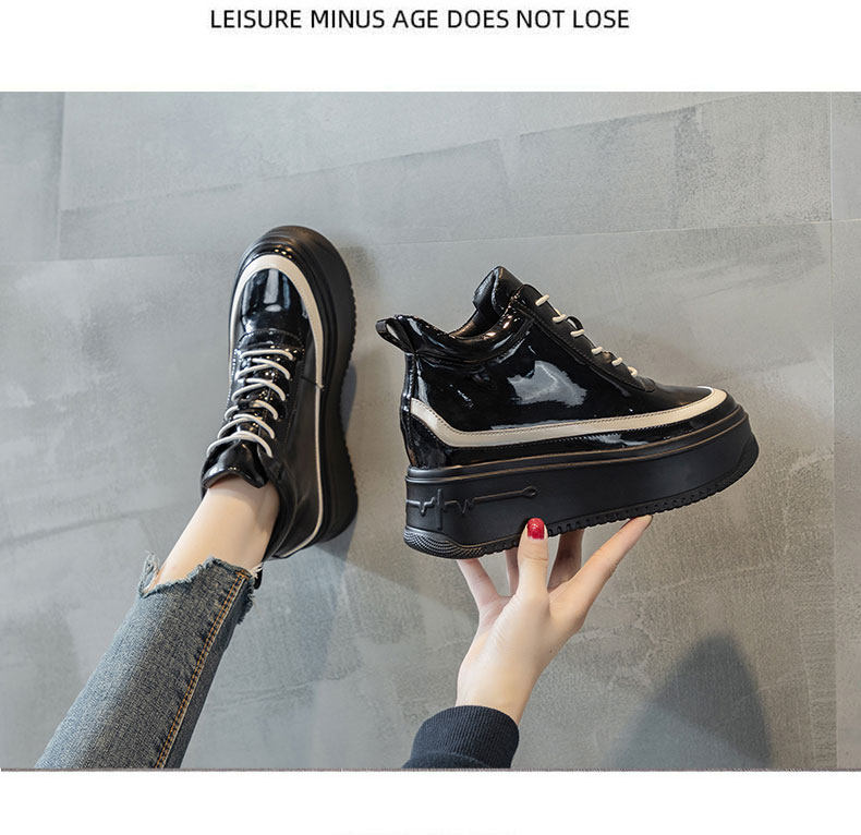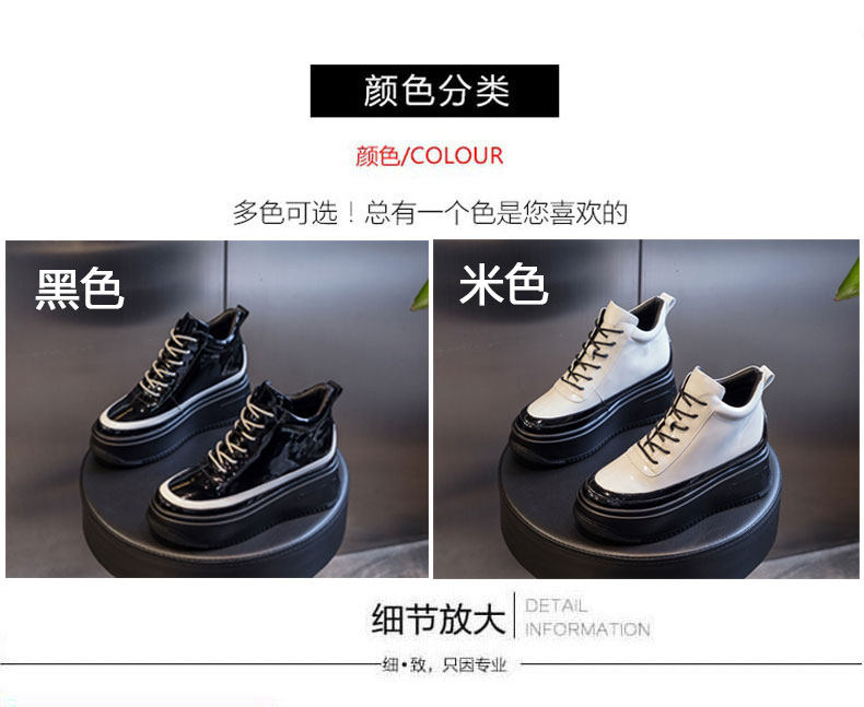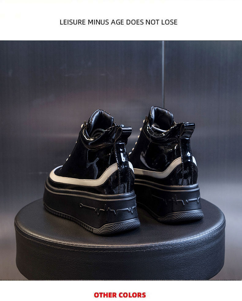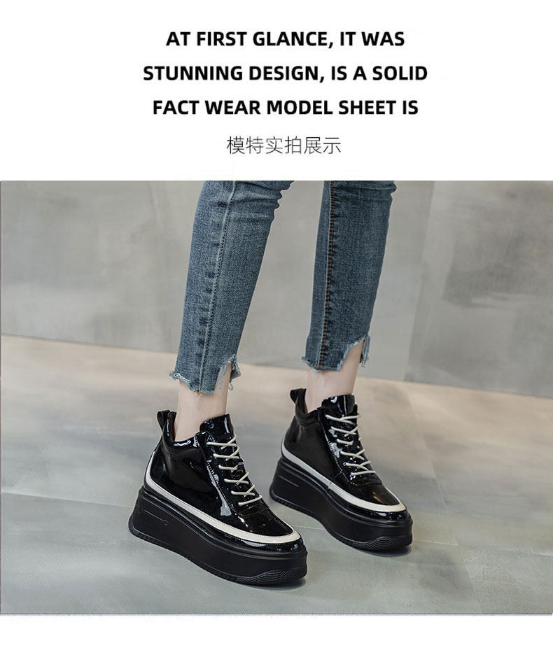 Hong Kong High-Top Shoes for Women 2025 Spring and Autumn New Fashion Thick-Soled Genuine Leather Inner Height-Increasing Patent Leather Versatile Short Boots Martin Boots