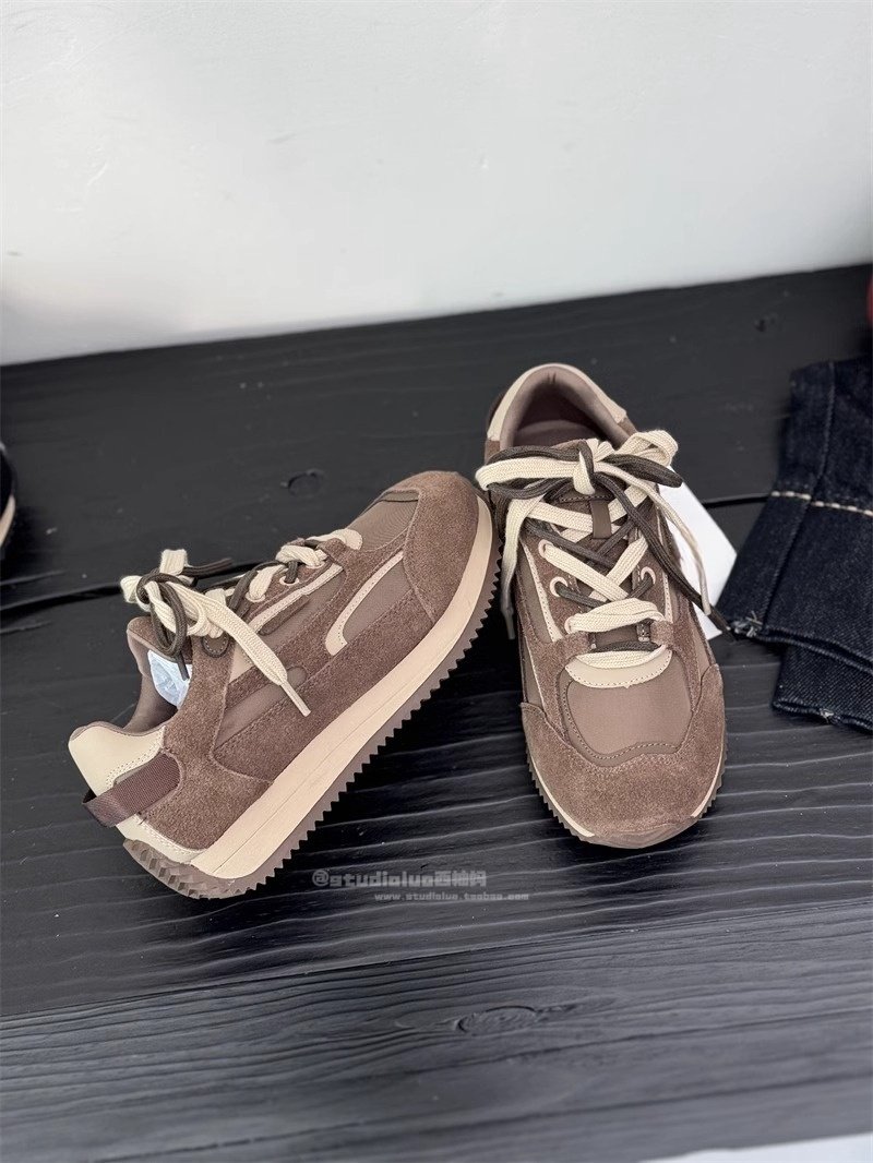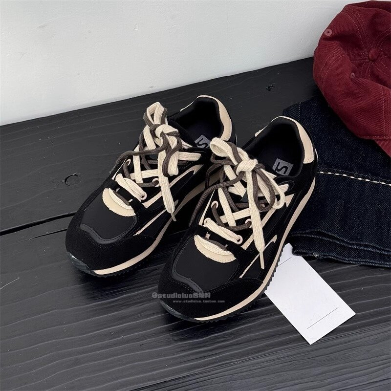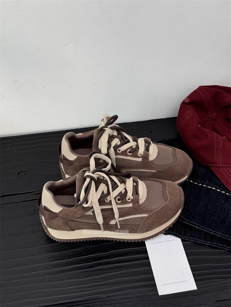 Hong Kong Retro Fashion Genuine Leather Casual German Training Shoes for Women 2025 Spring and Autumn Thick-Soled Height-Increasing Versatile Sneakers