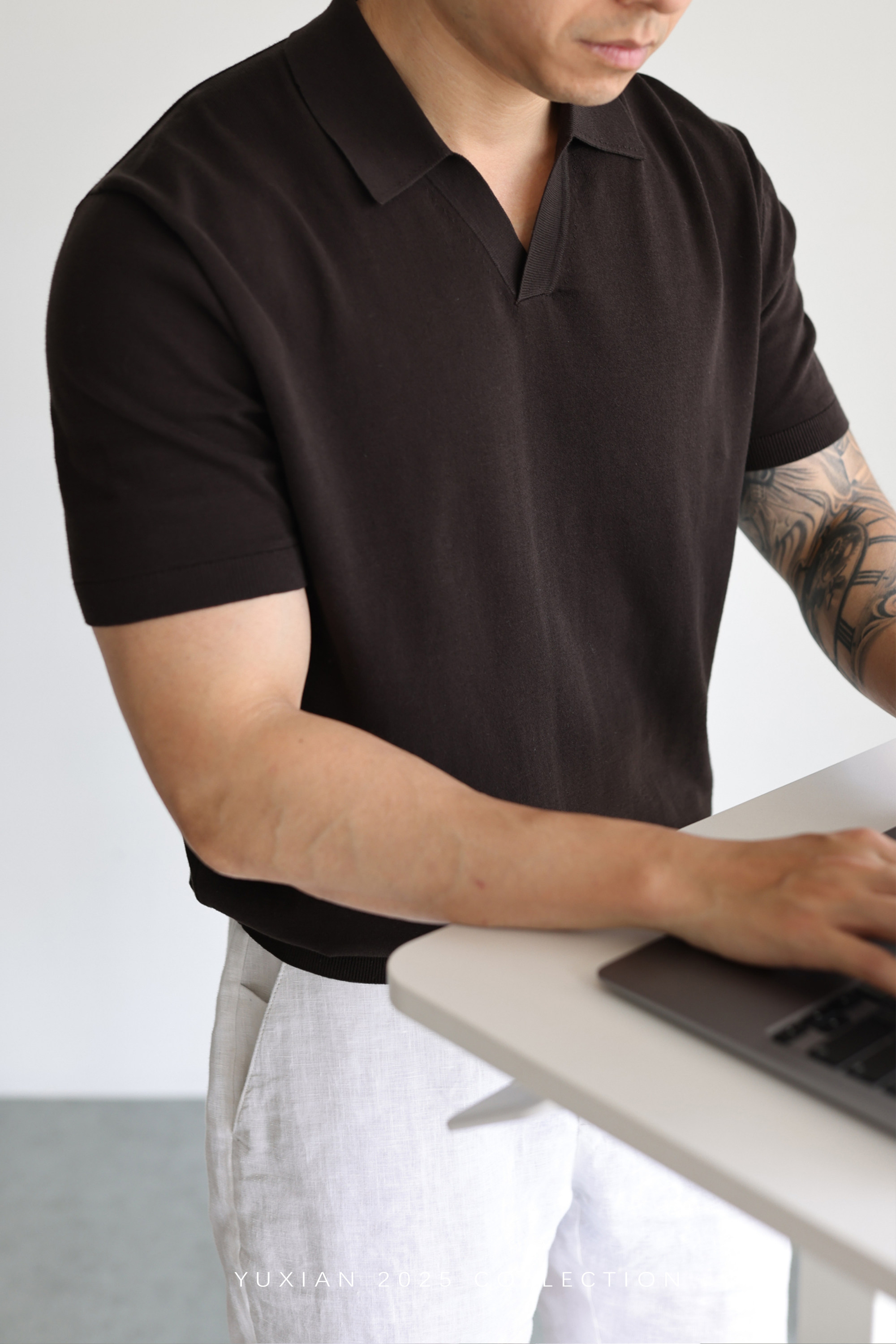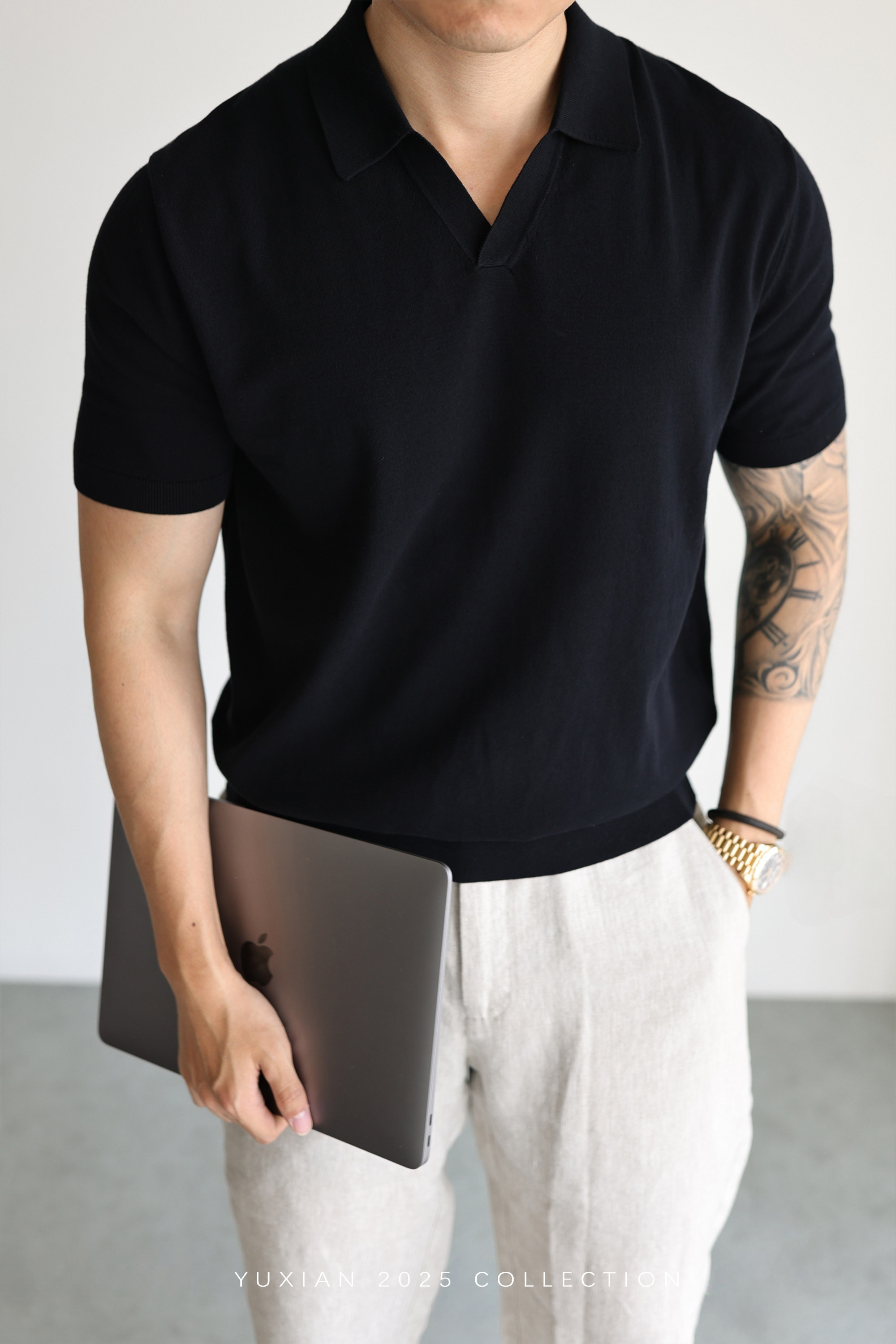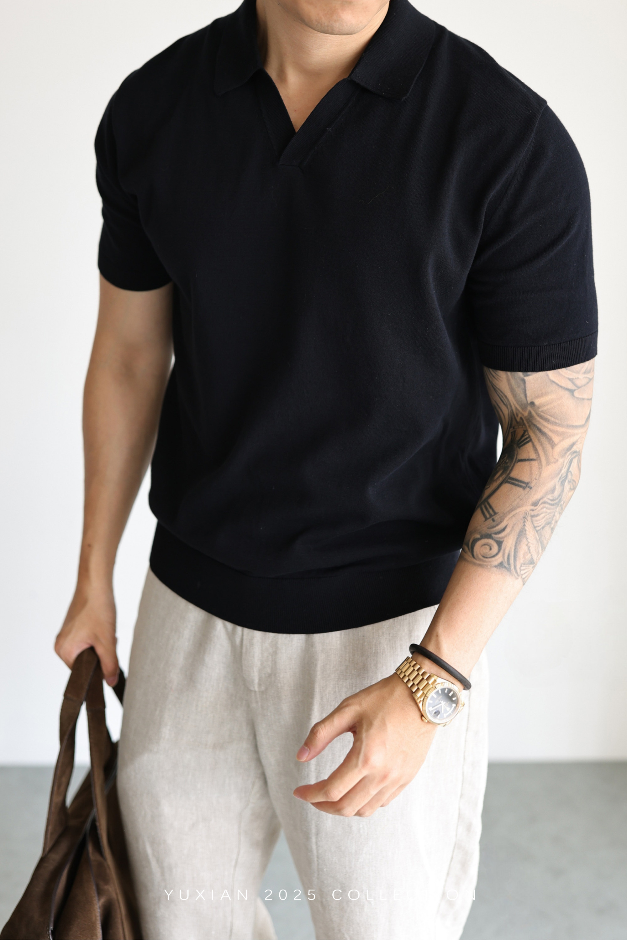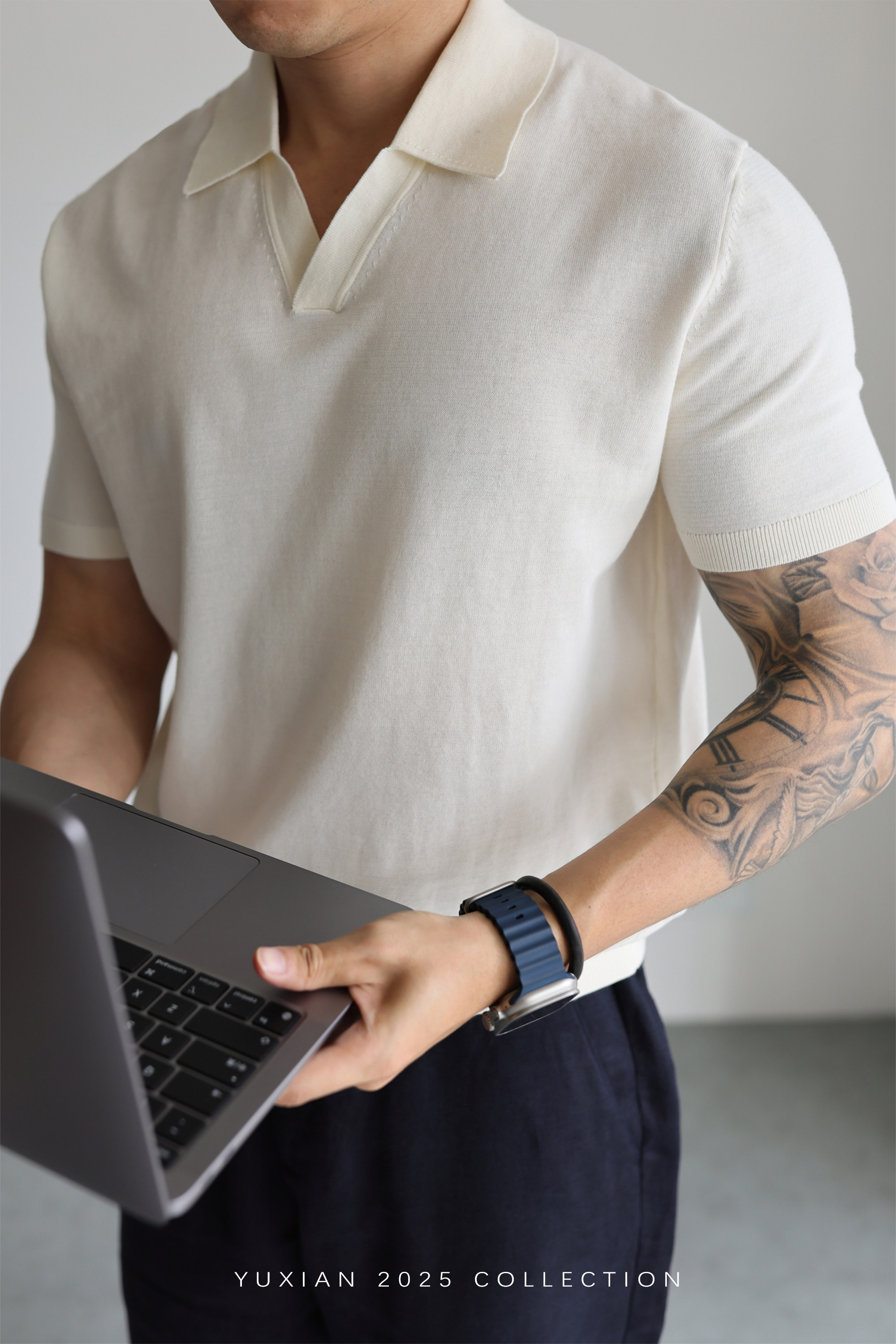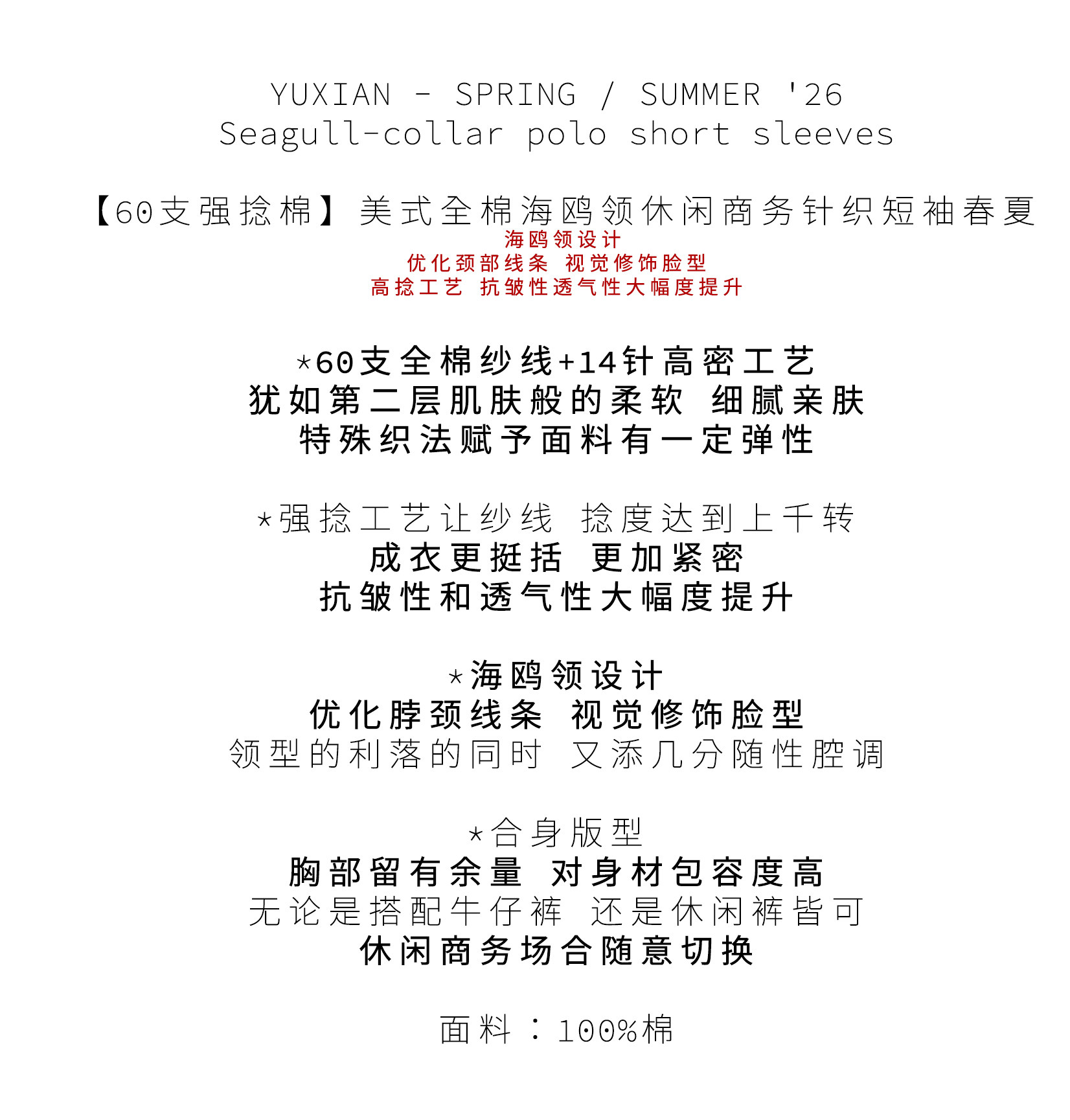 [60-Count Strong Twisted Cotton] American-Style Pure Cotton Seagull Collar Retro Polo Casual Business Knit Short-Sleeve Turn-Down Collar Spring and Summer