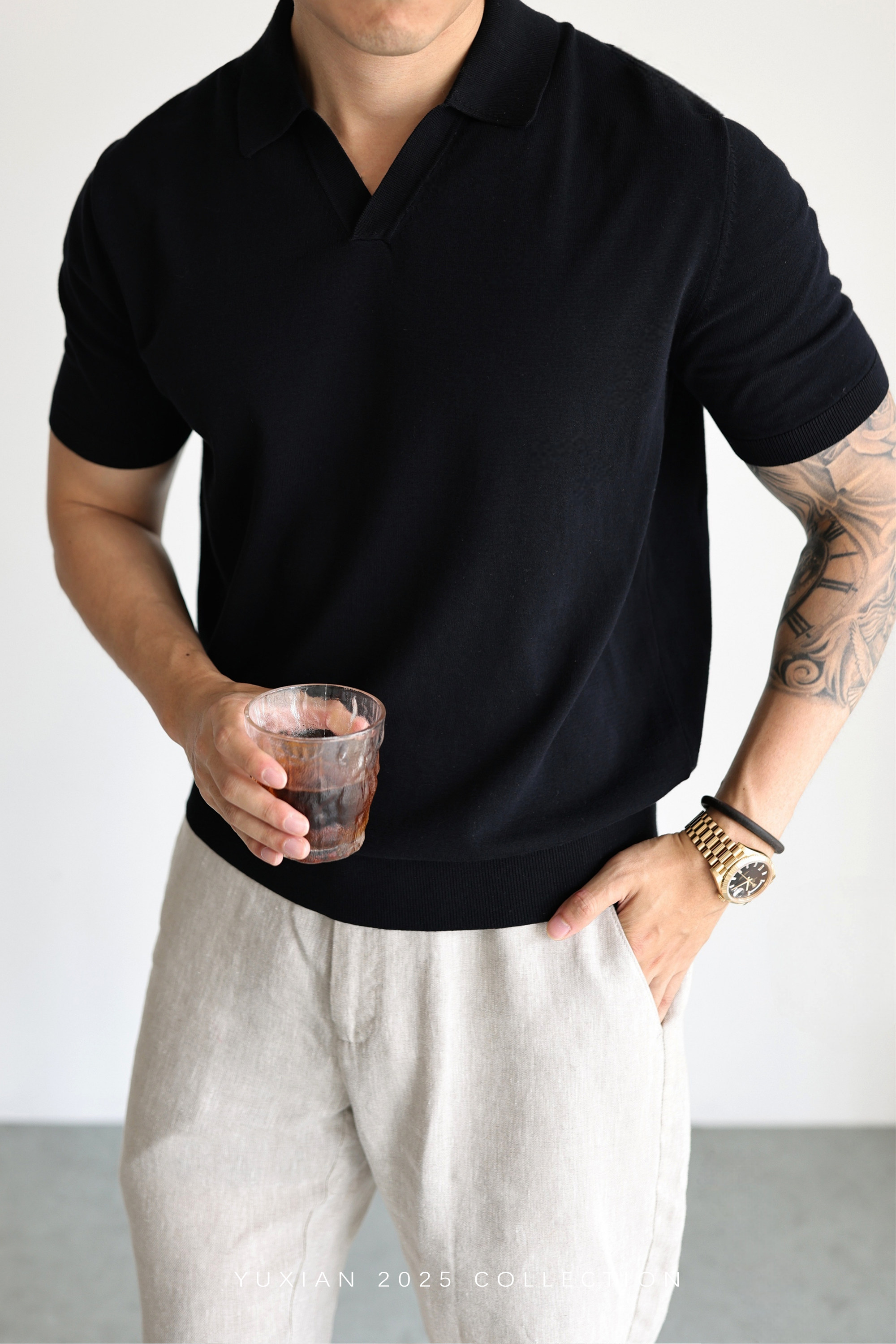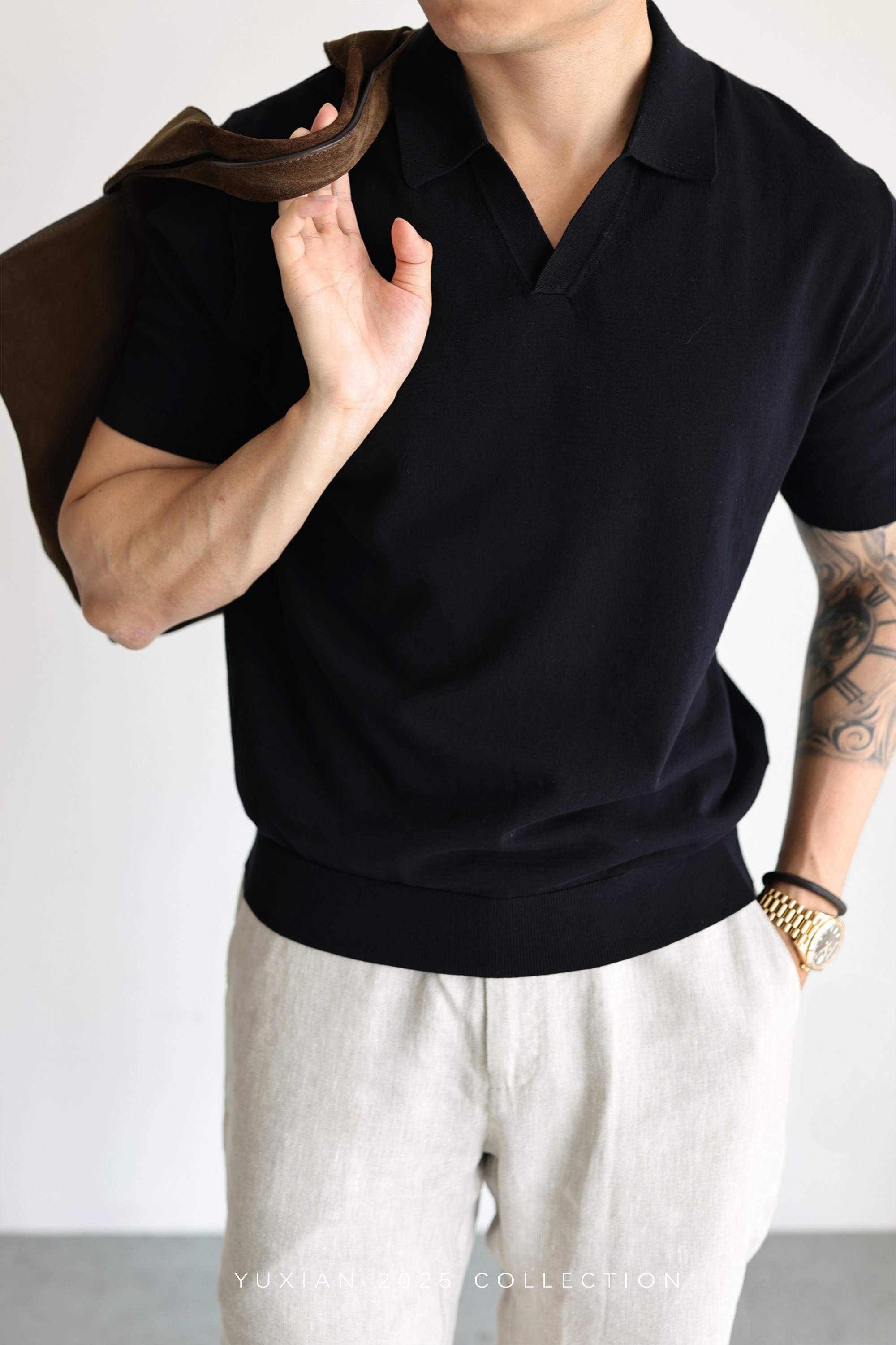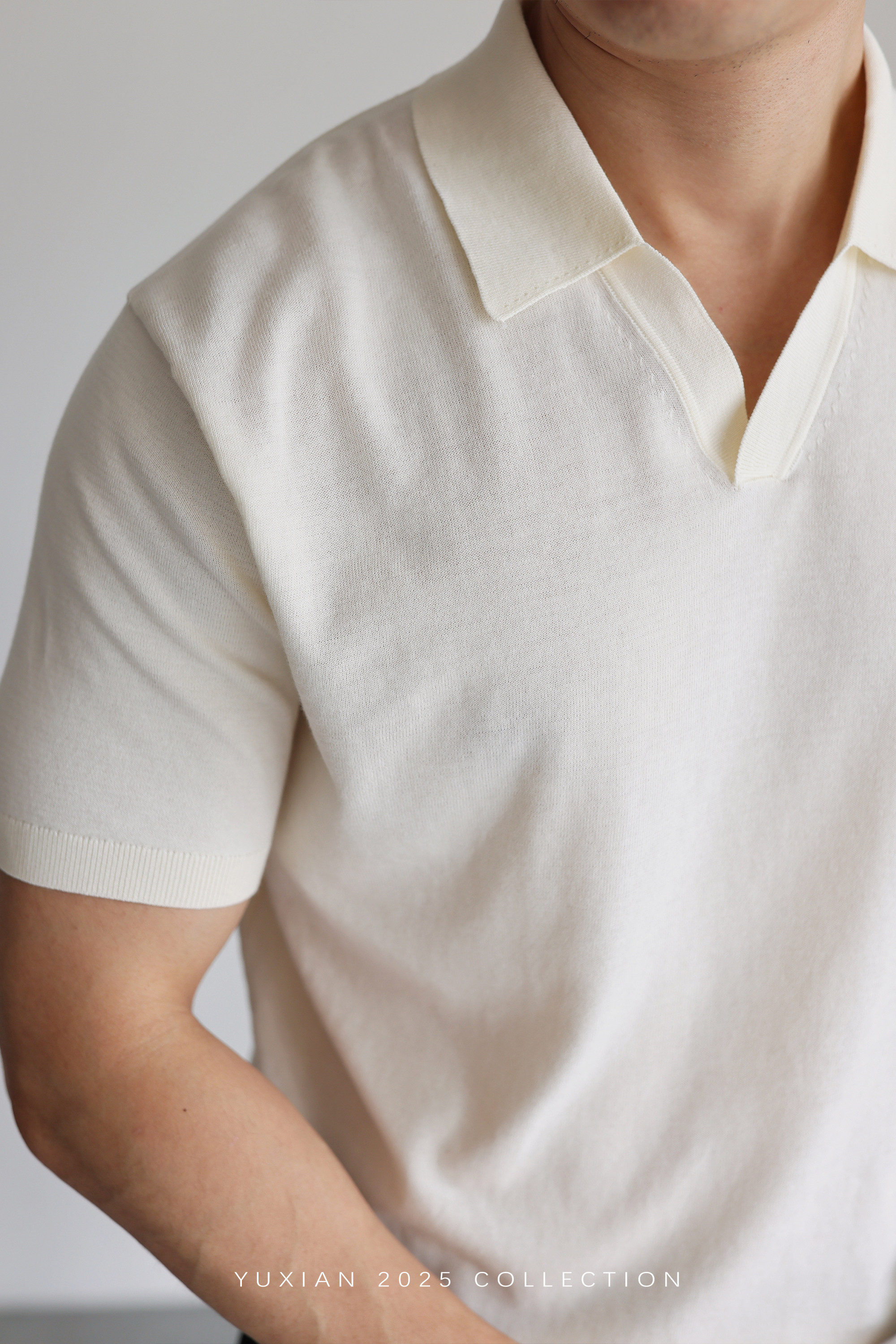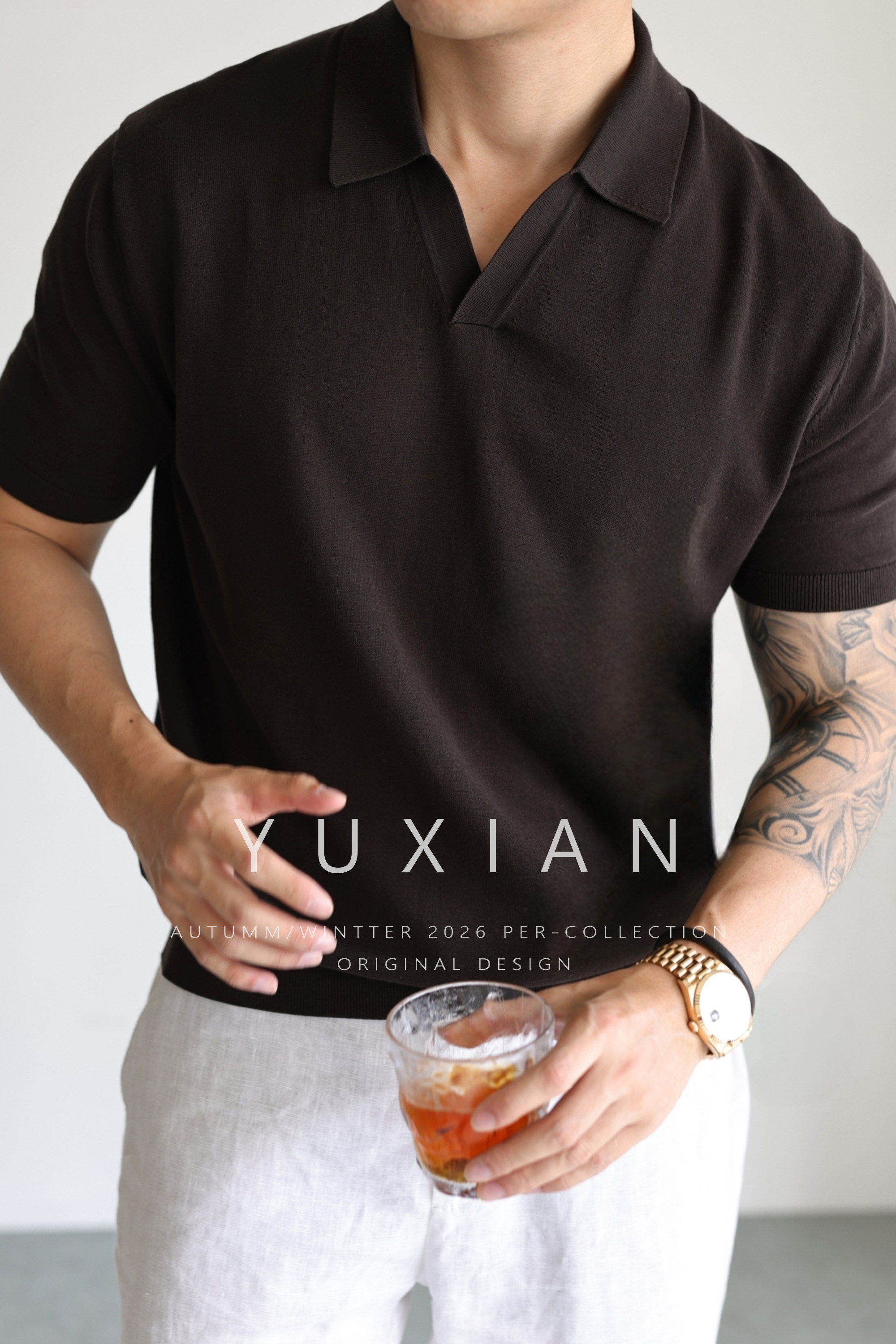 [60-Count Strong Twisted Cotton] American-Style Pure Cotton Seagull Collar Retro Polo Casual Business Knit Short-Sleeve Turn-Down Collar Spring and Summer