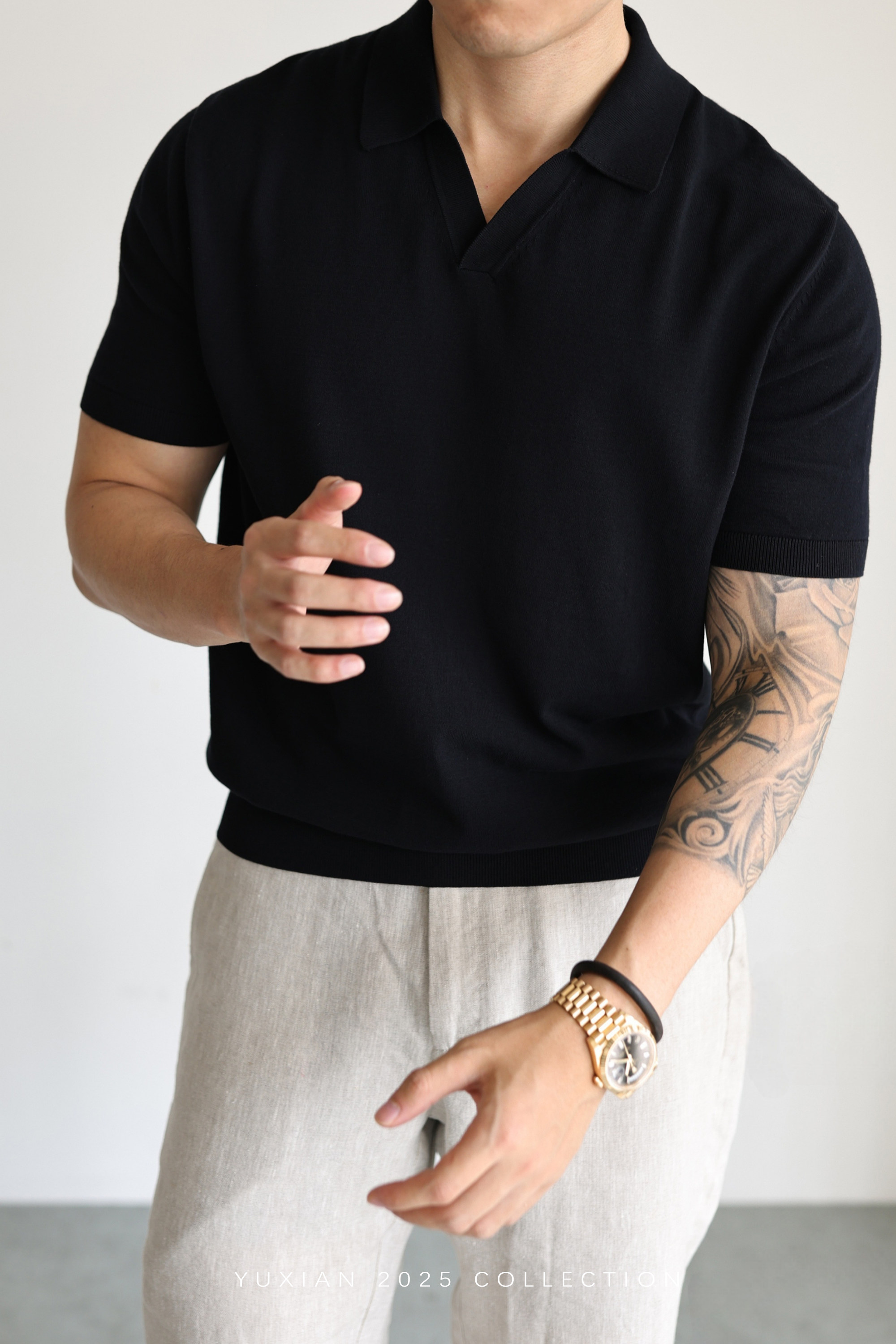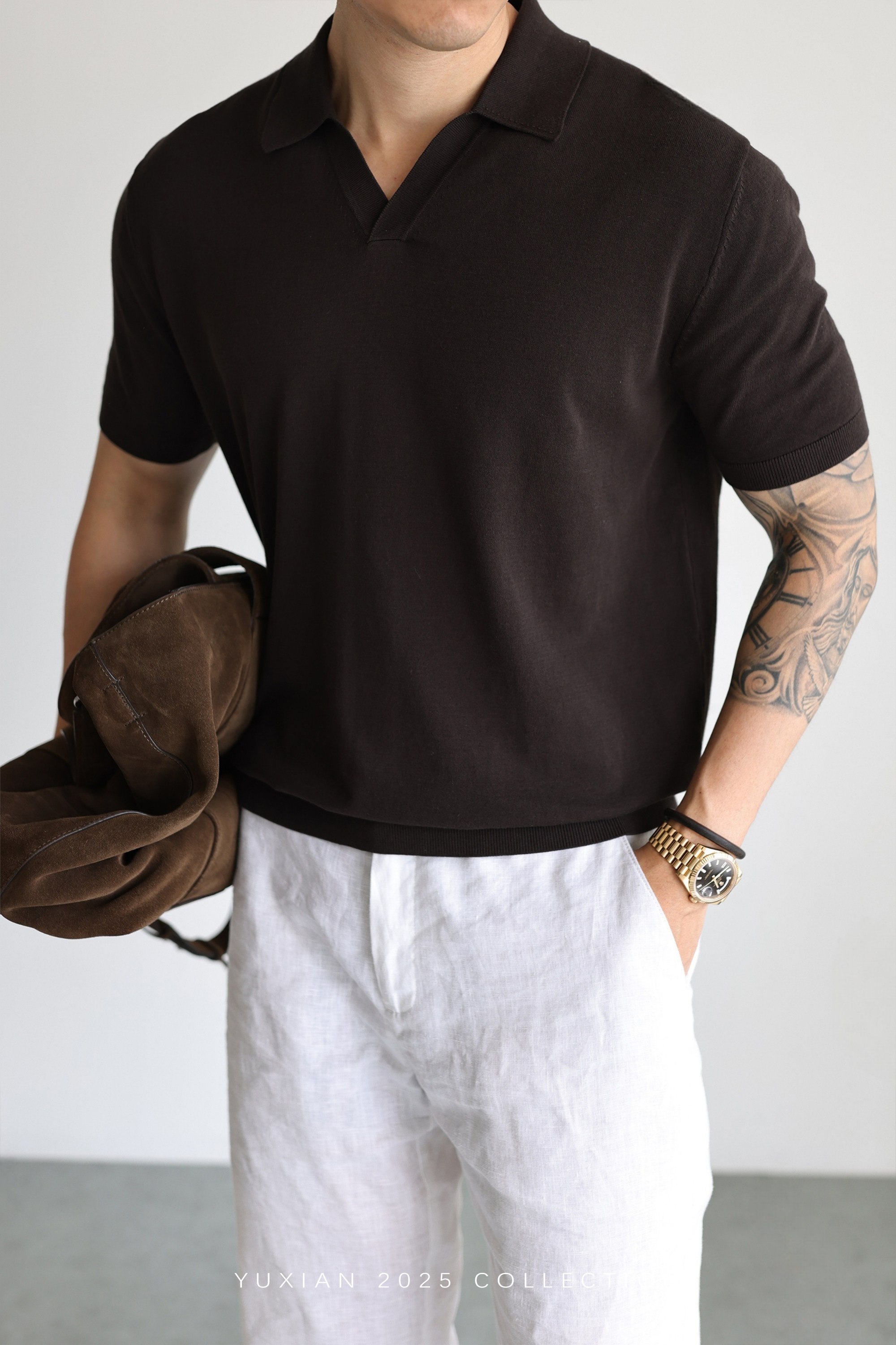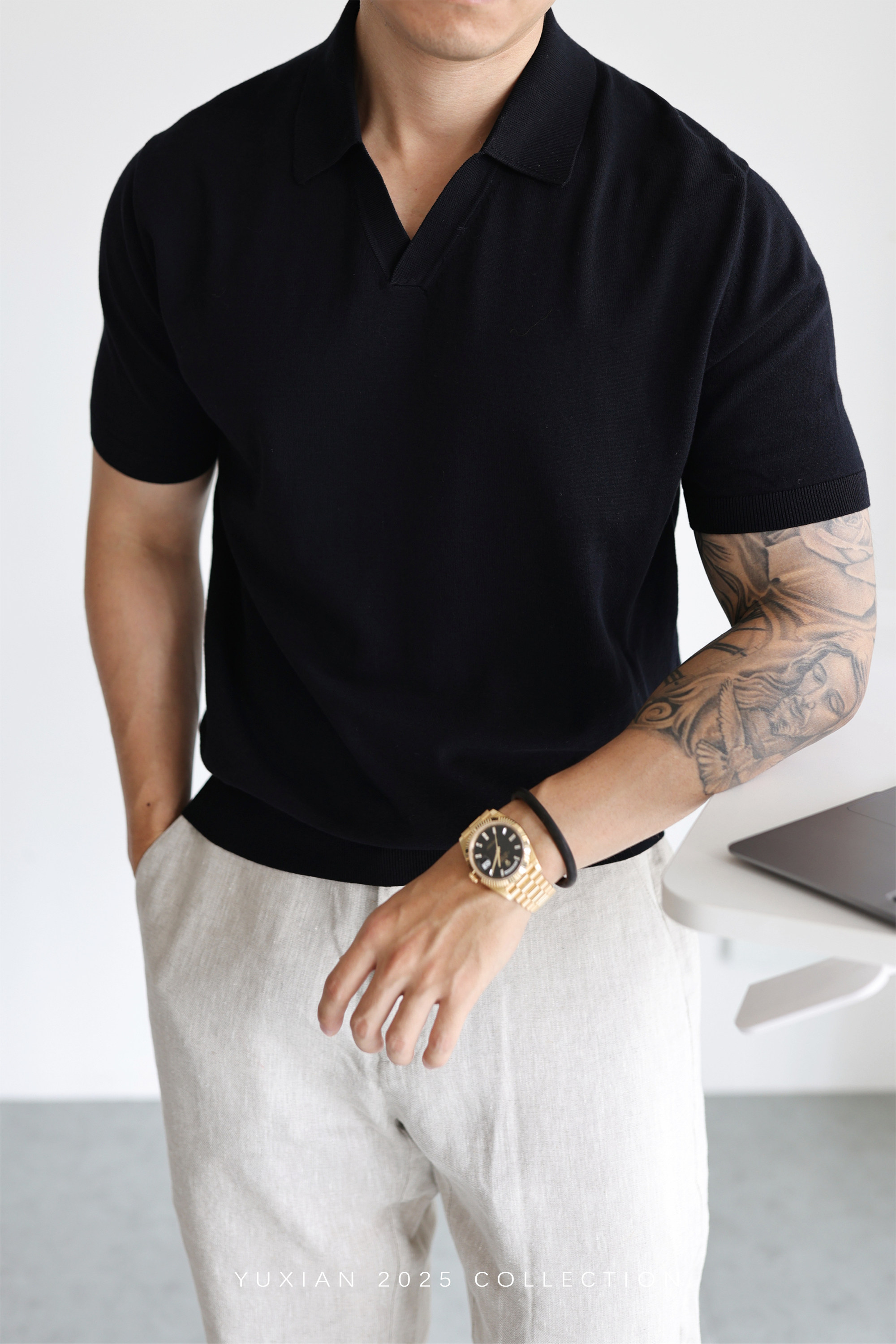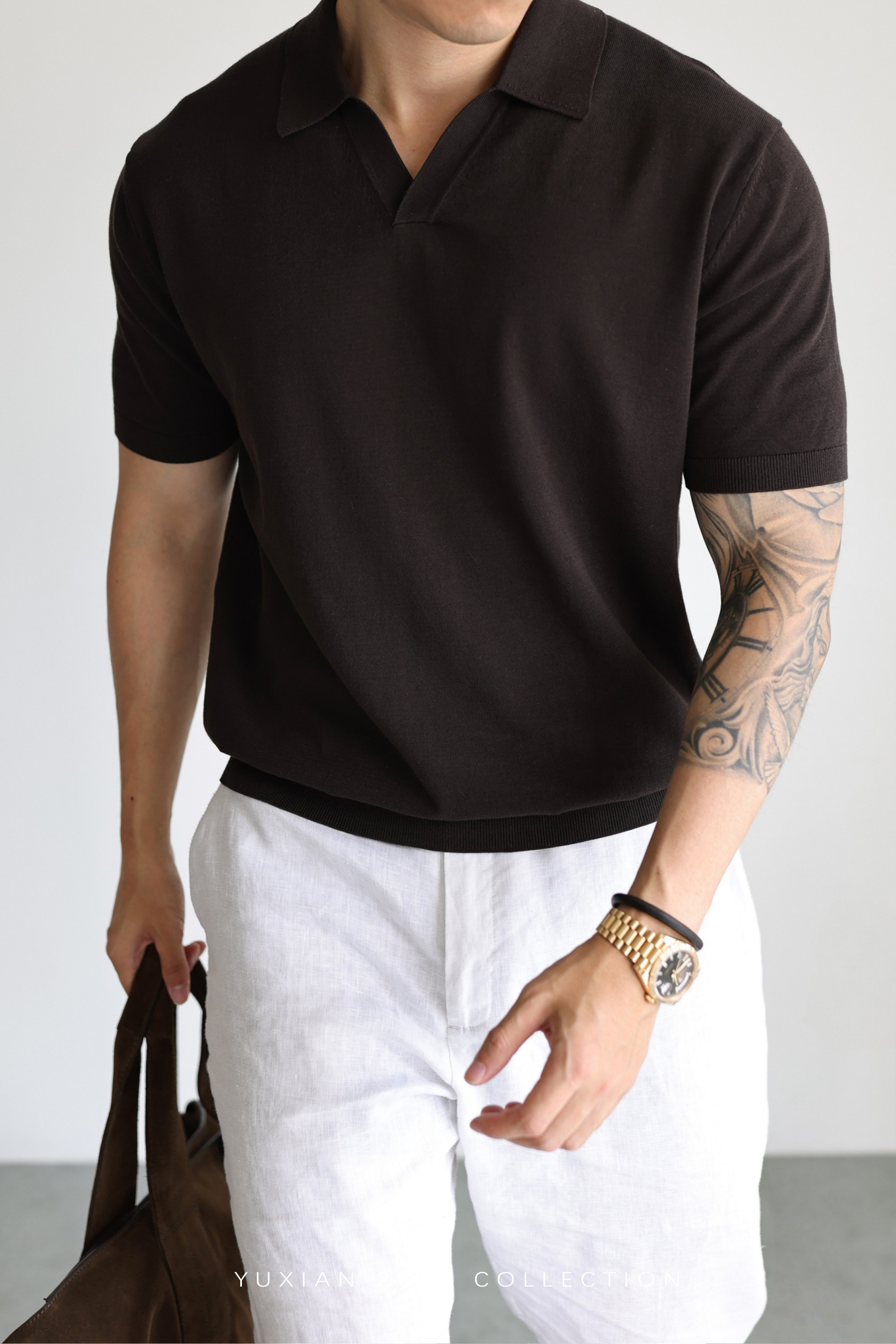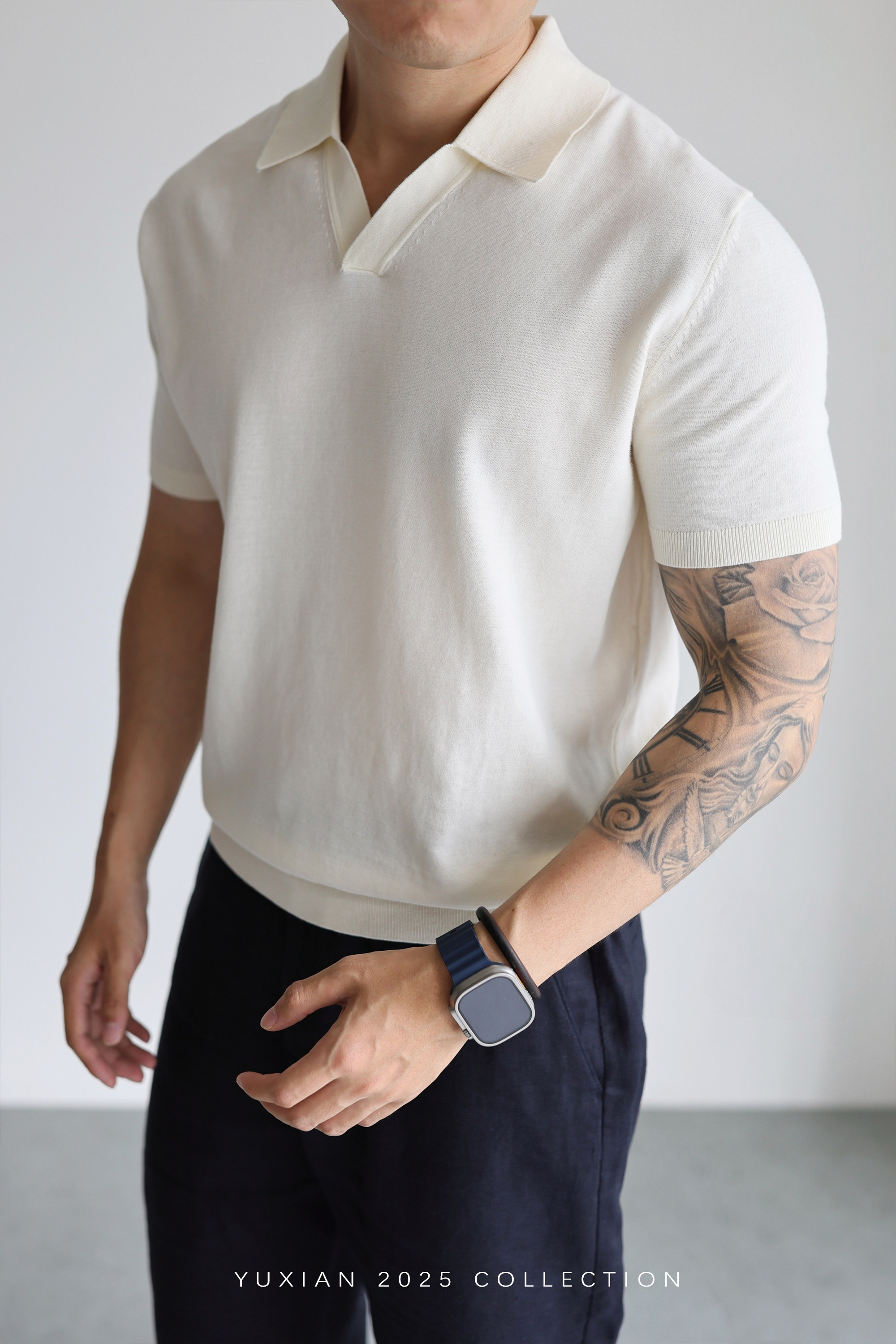 [60-Count Strong Twisted Cotton] American-Style Pure Cotton Seagull Collar Retro Polo Casual Business Knit Short-Sleeve Turn-Down Collar Spring and Summer
