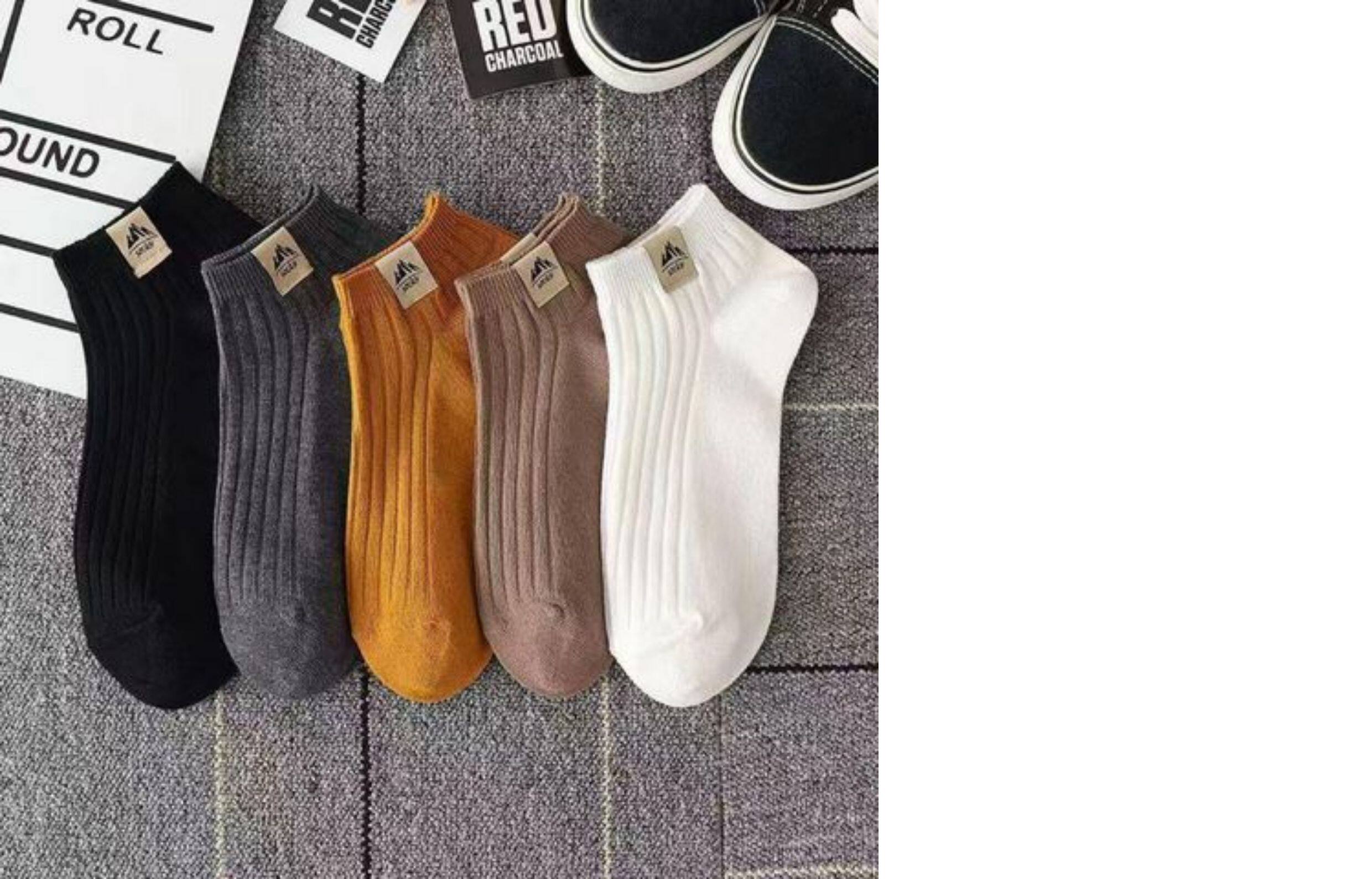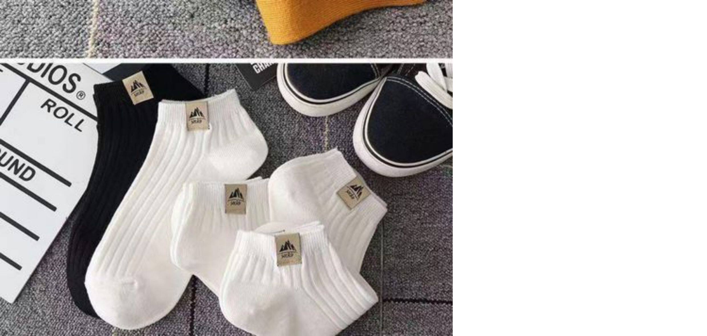 Men's Trendy Socks ins Summer Thin Versatile Short Socks Deodorant Sweat-Absorbent Low-Cut Spring and Autumn Black and White Men's No-Show Socks