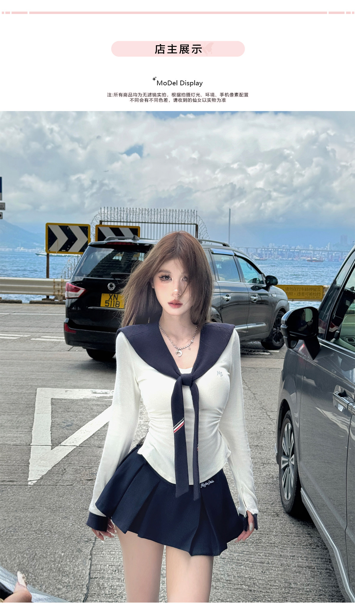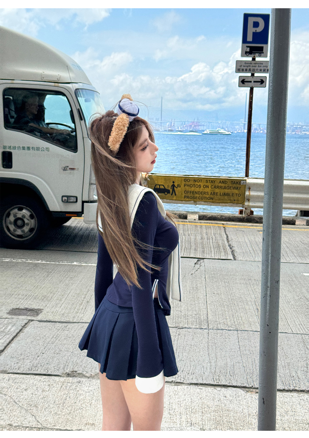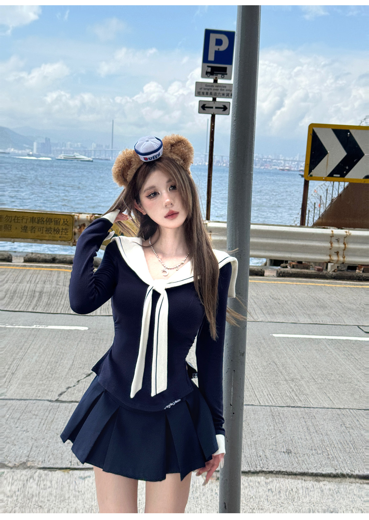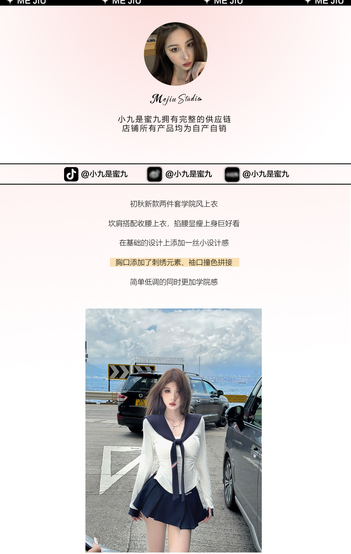 Mejiu Honey Nine [Gardenia Skirt] College Style Hot Girl Skirt Feminine Design Navy Blue Short Skirt