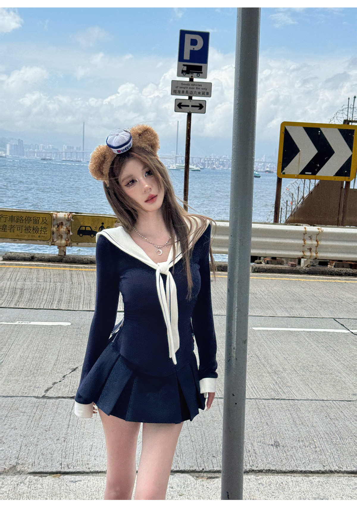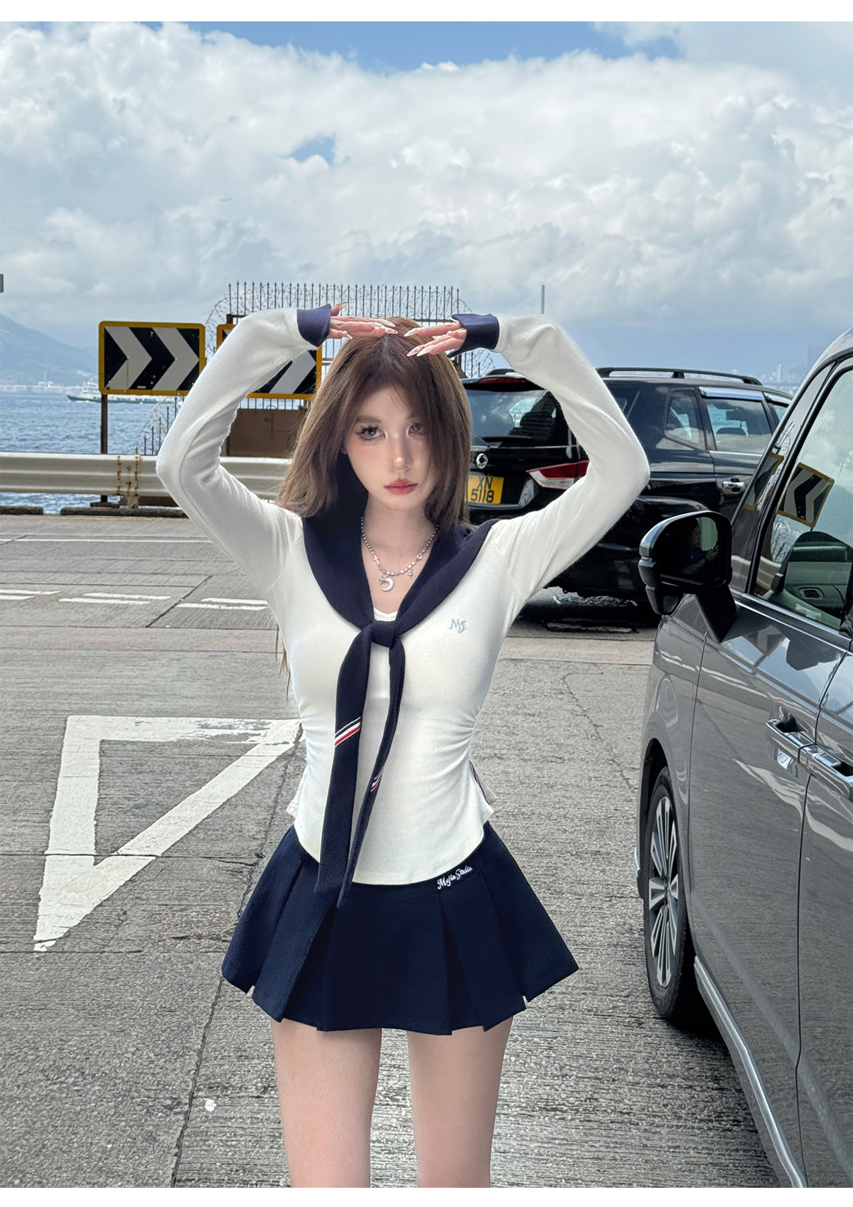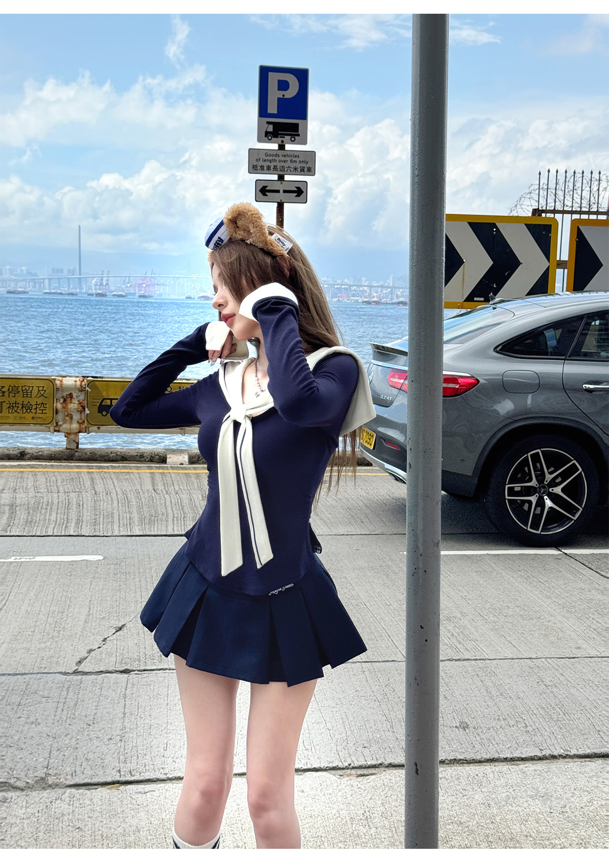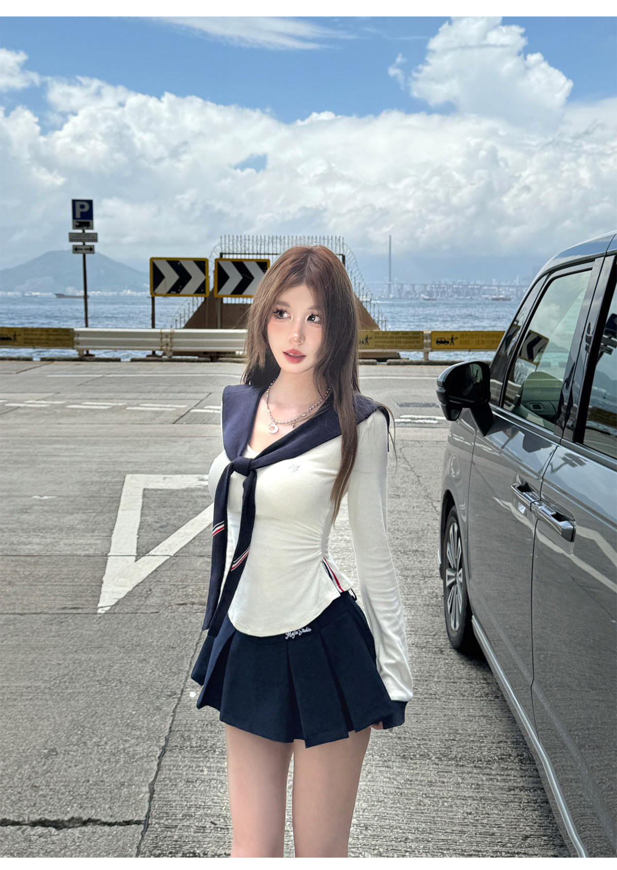 Mejiu Honey Nine [Gardenia Skirt] College Style Hot Girl Skirt Feminine Design Navy Blue Short Skirt