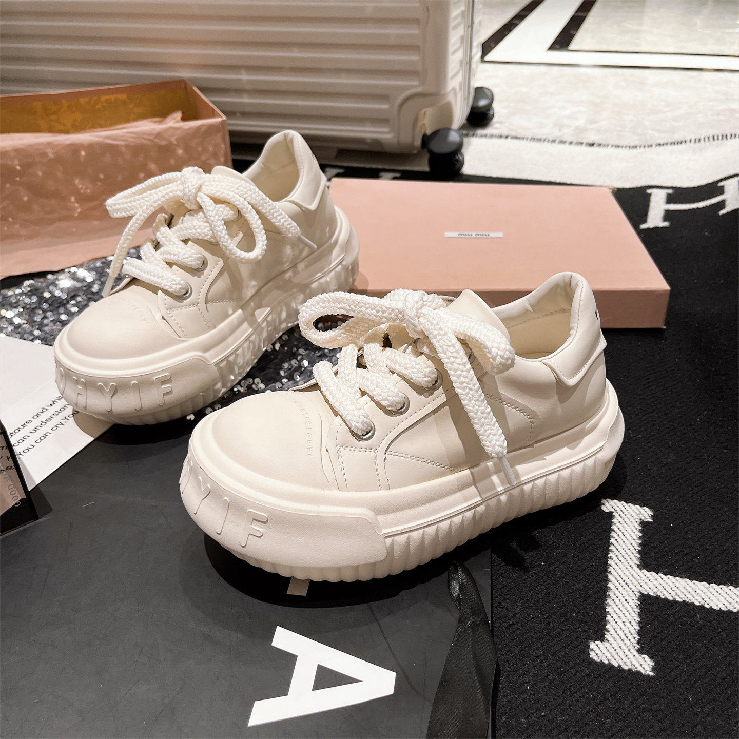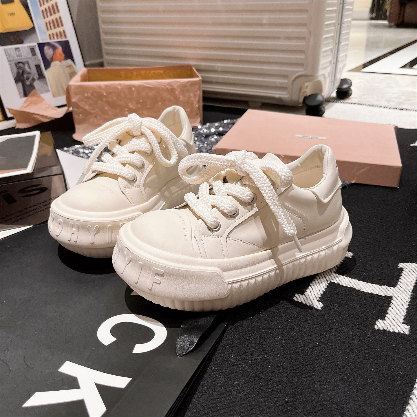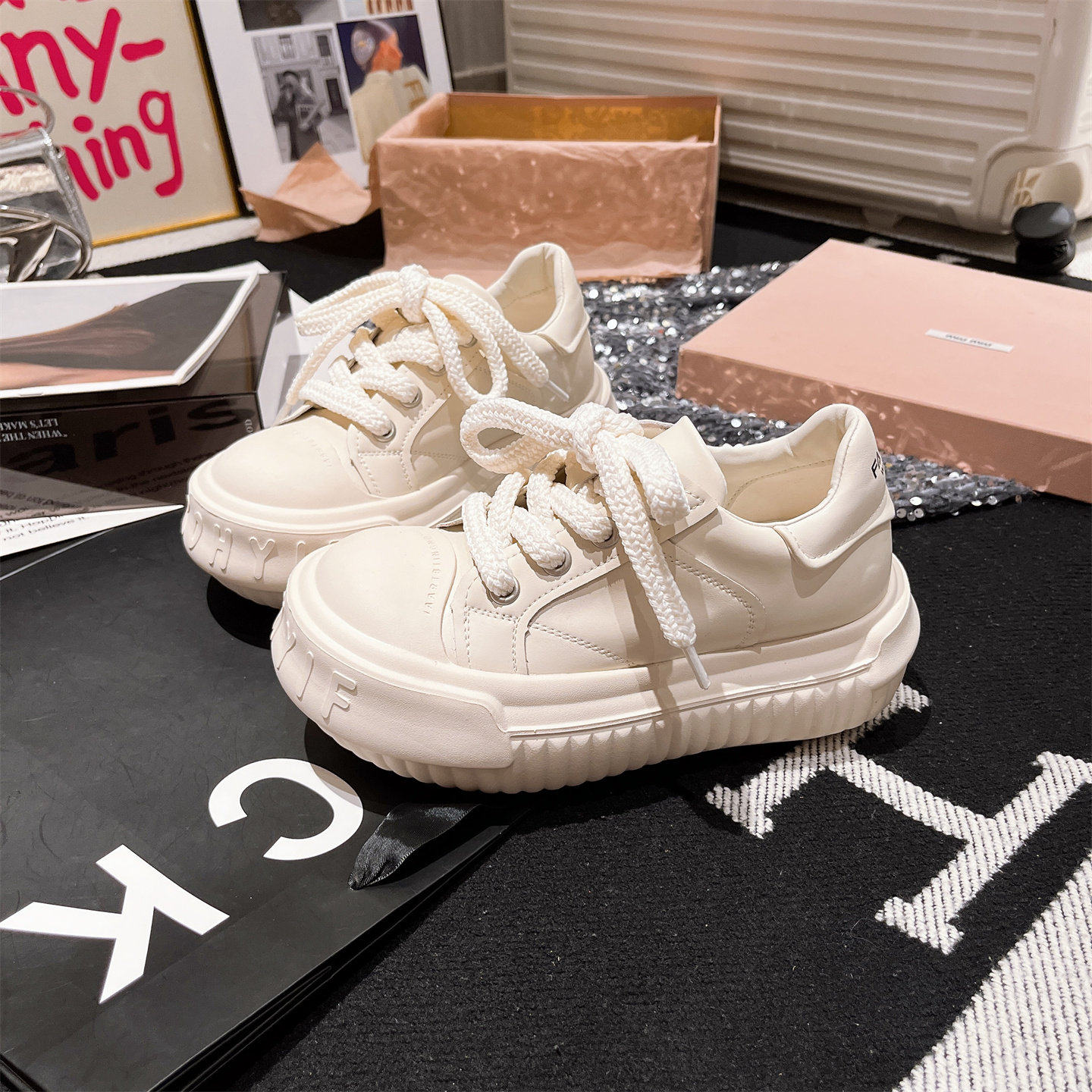 Sanli Japanese-Style Mickey Casual Chunky Loafers for Women 2025 Autumn New Genuine Leather Thick-Soled Height-Increasing White Shoes Korean Version