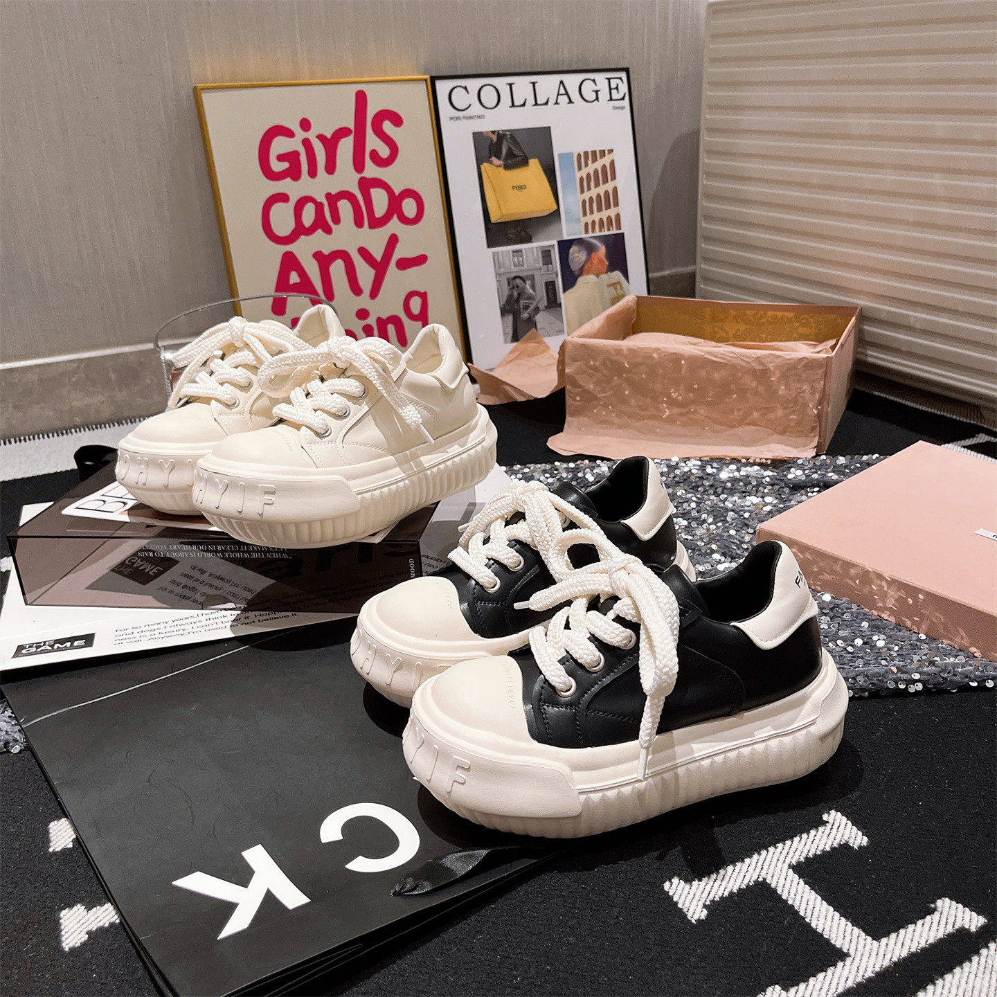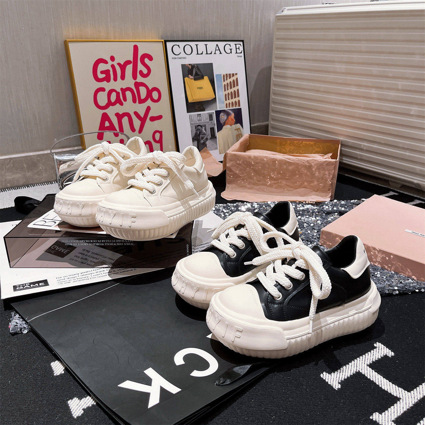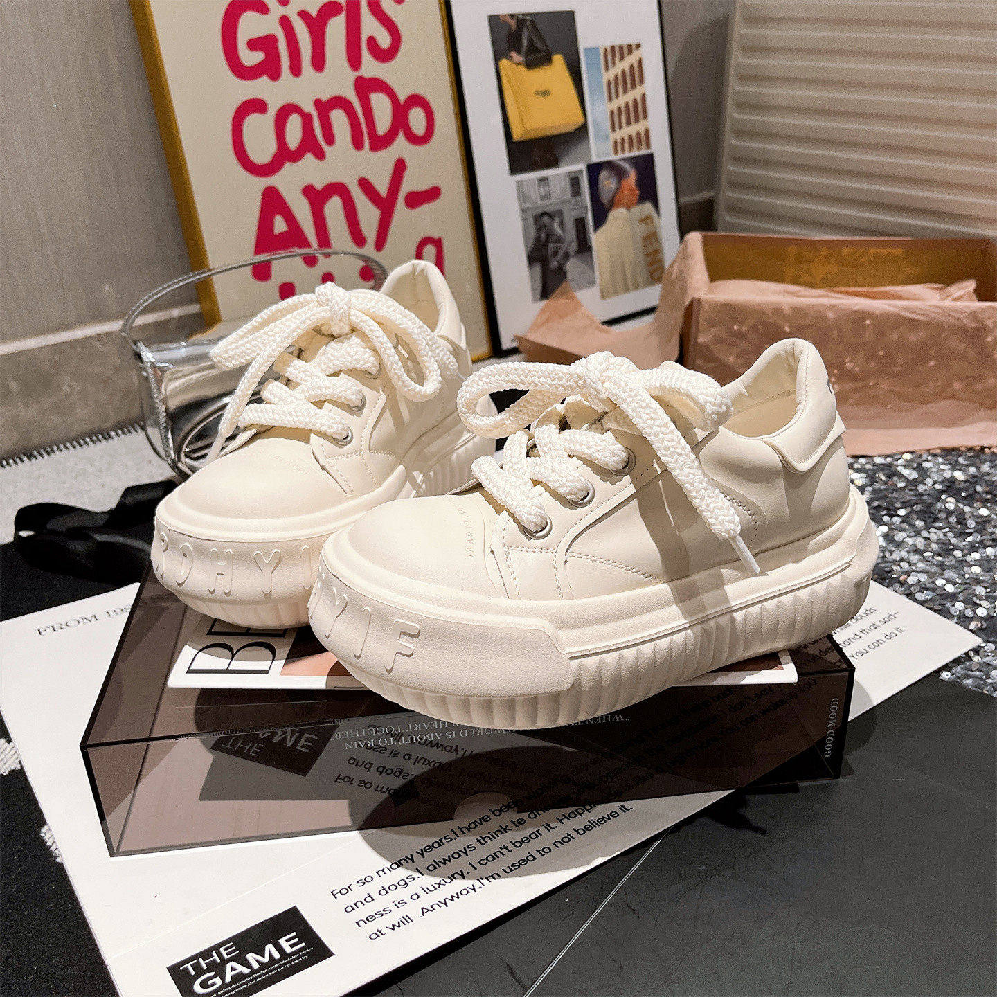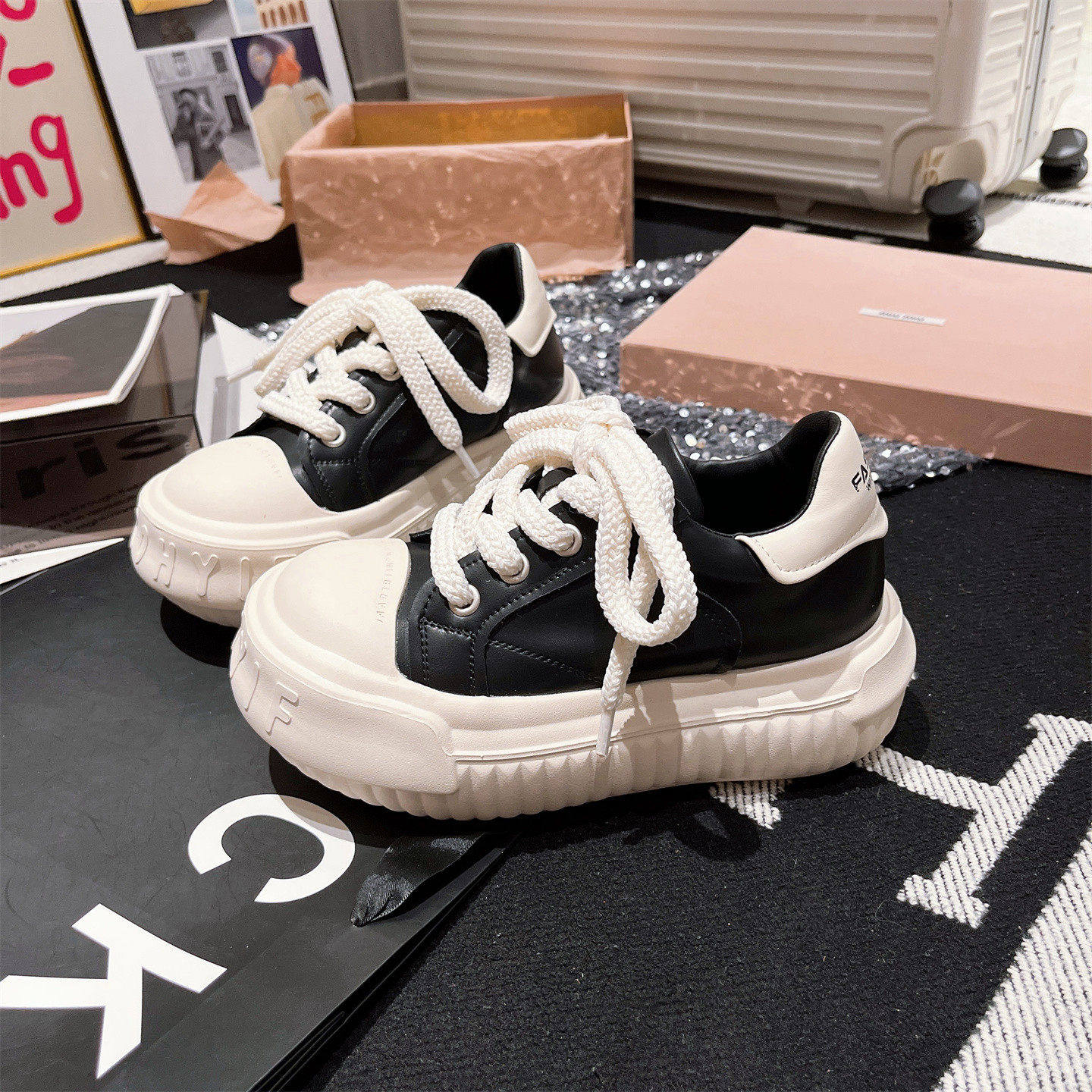 Sanli Japanese-Style Mickey Casual Chunky Loafers for Women 2025 Autumn New Genuine Leather Thick-Soled Height-Increasing White Shoes Korean Version