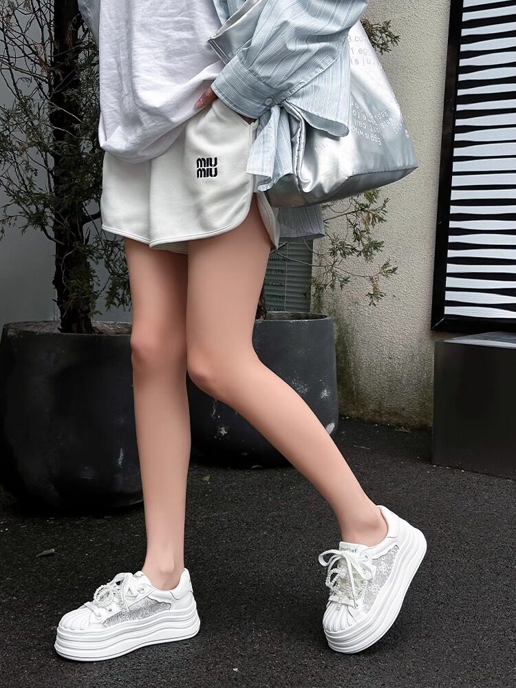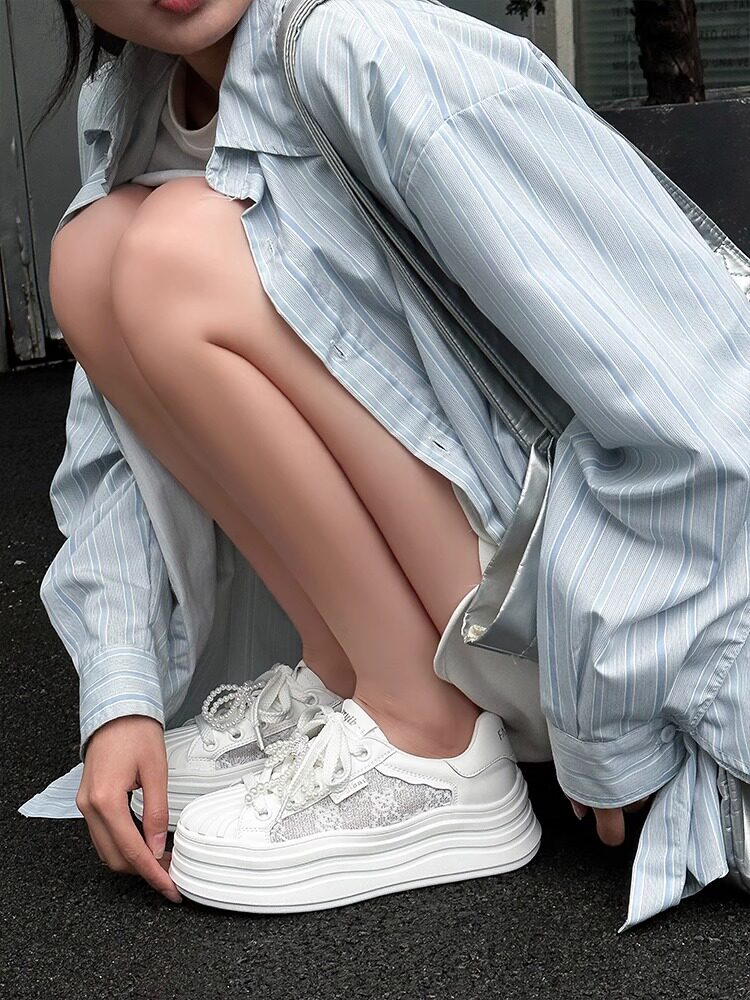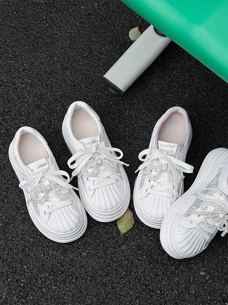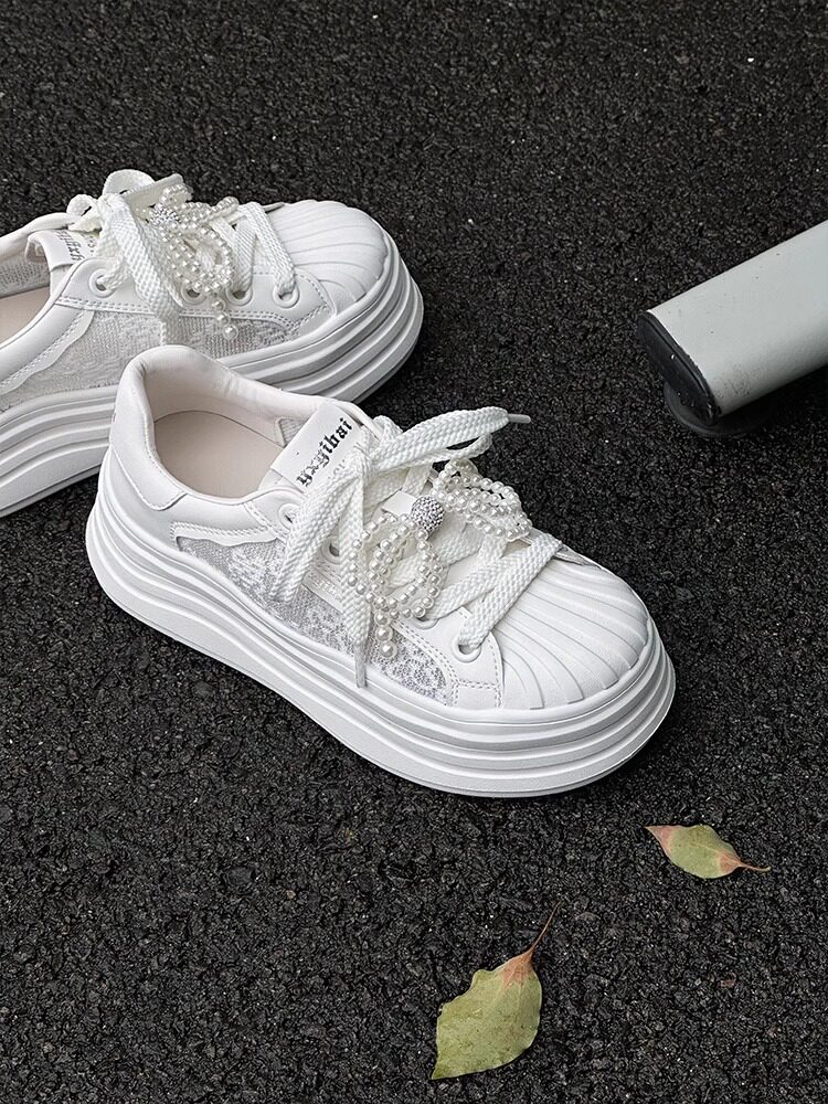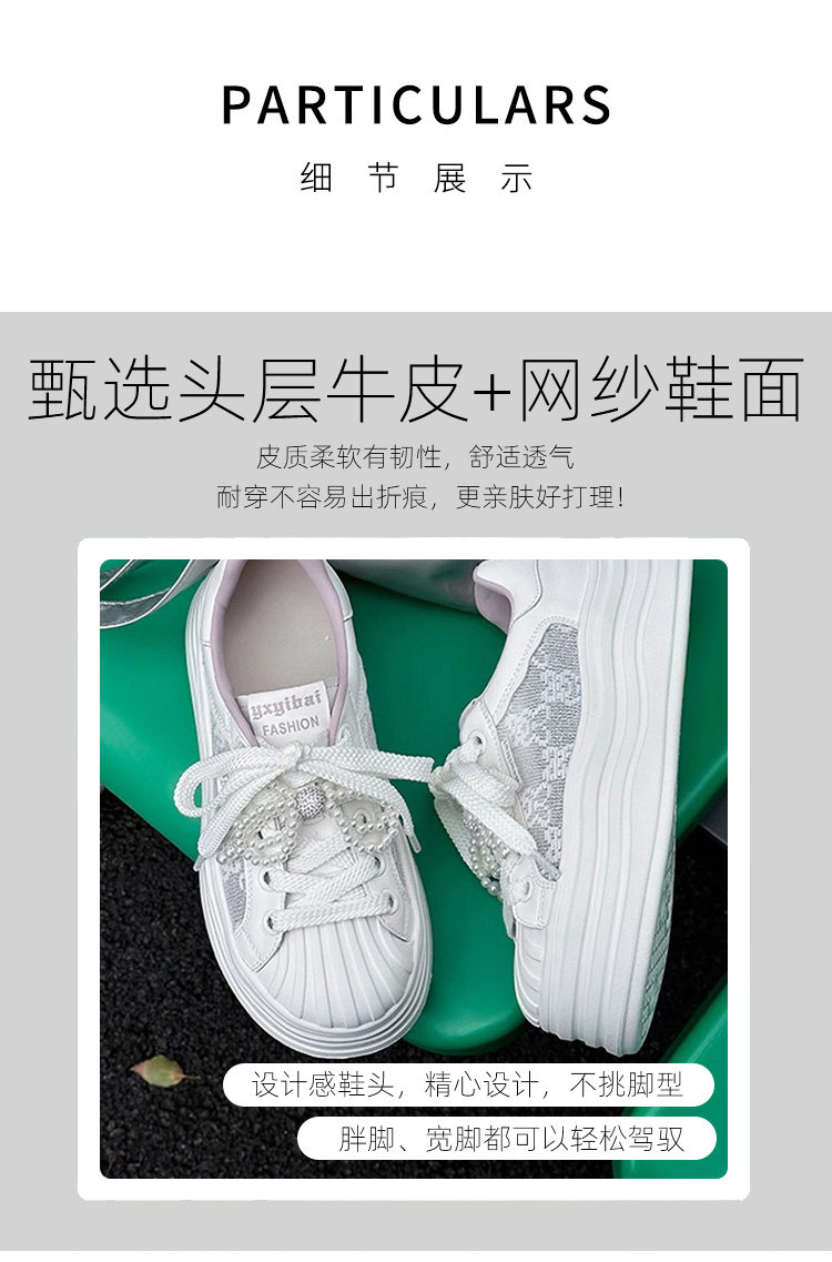 Hong Kong Niche Shell-Toe Mesh Breathable Sneakers for Women 2025 Summer New Versatile Casual Thick-Soled Height-Increasing White Shoes