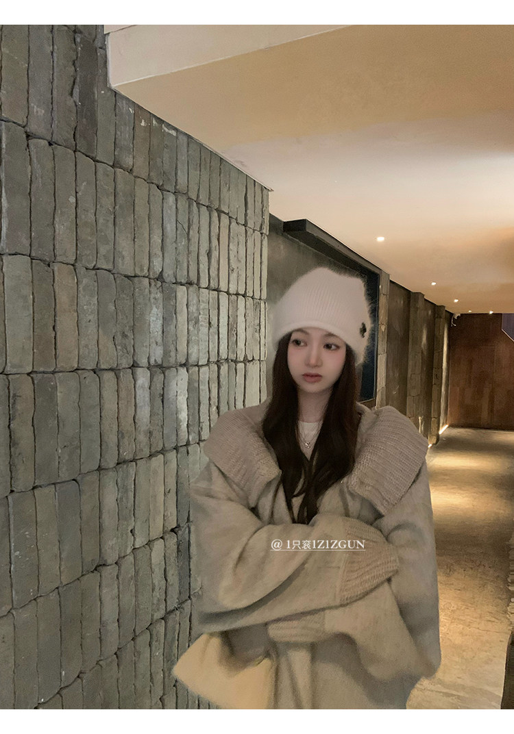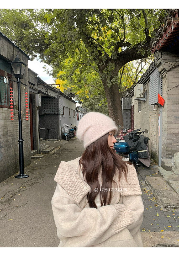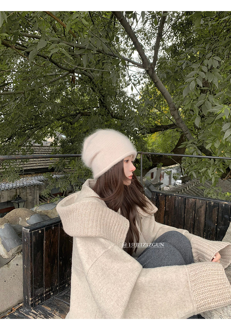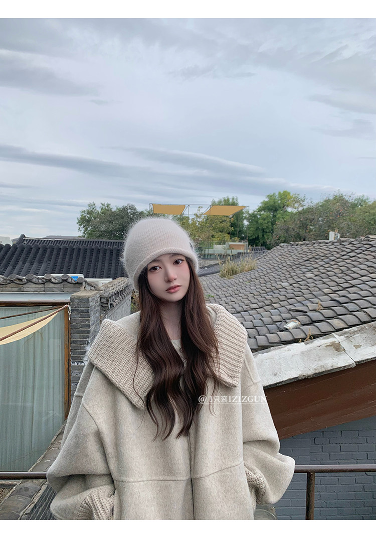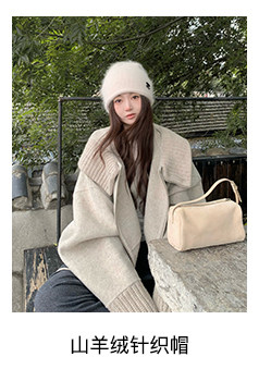 帽沿拼接的毛织部分有两颗手缝配色暗扣设计