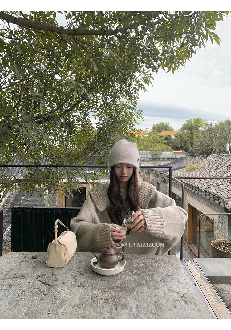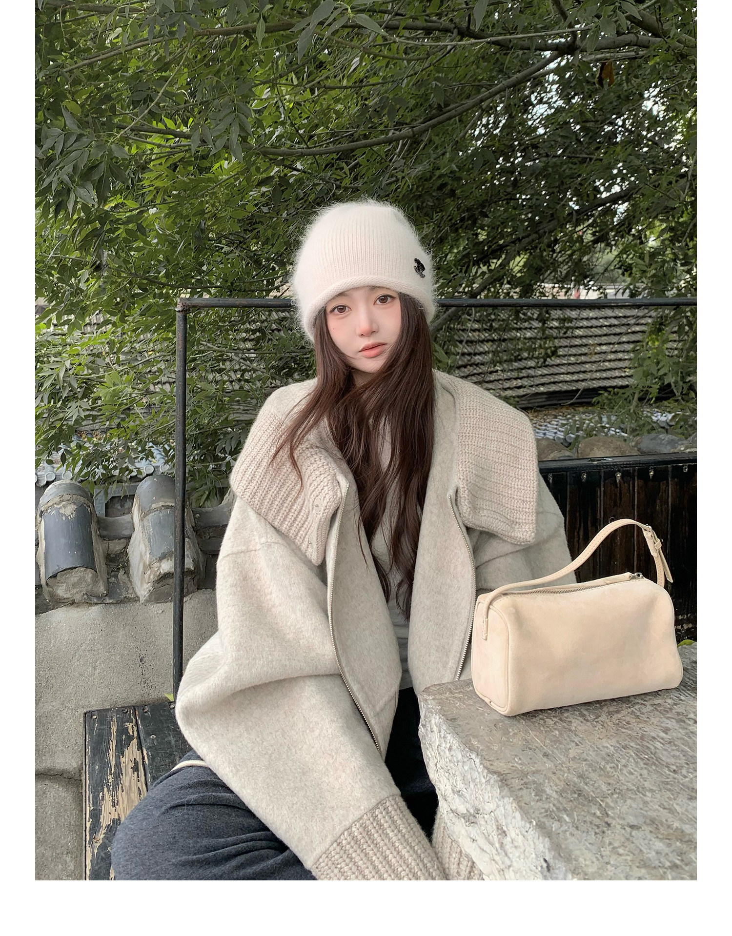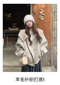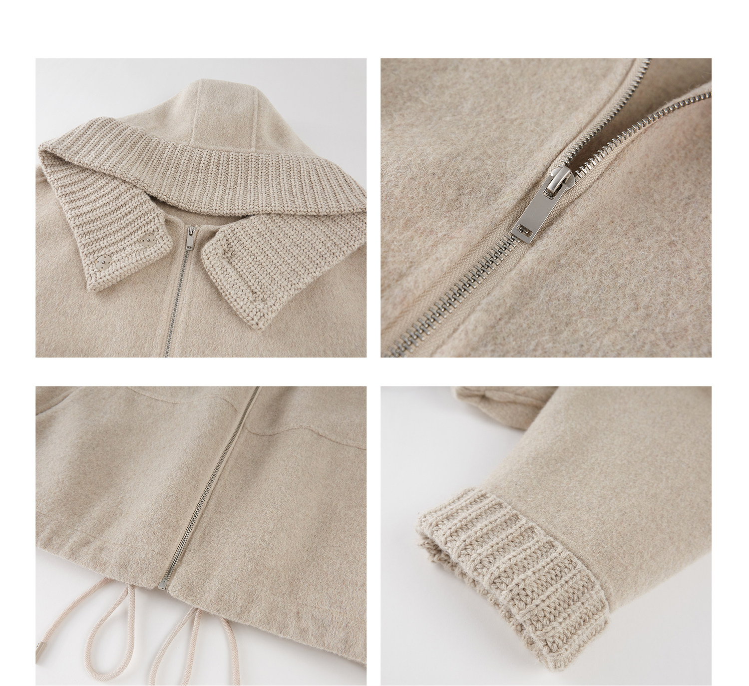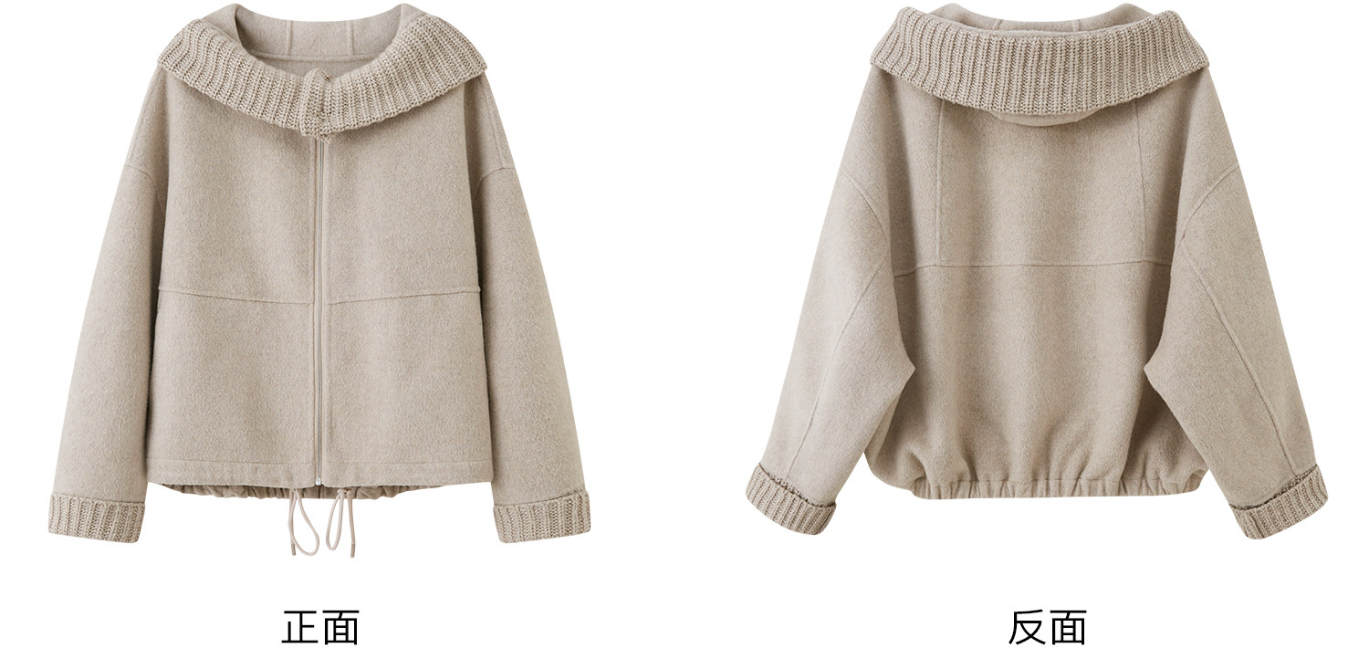 呈现出双面毛呢和毛织不同面料质感的碰撞