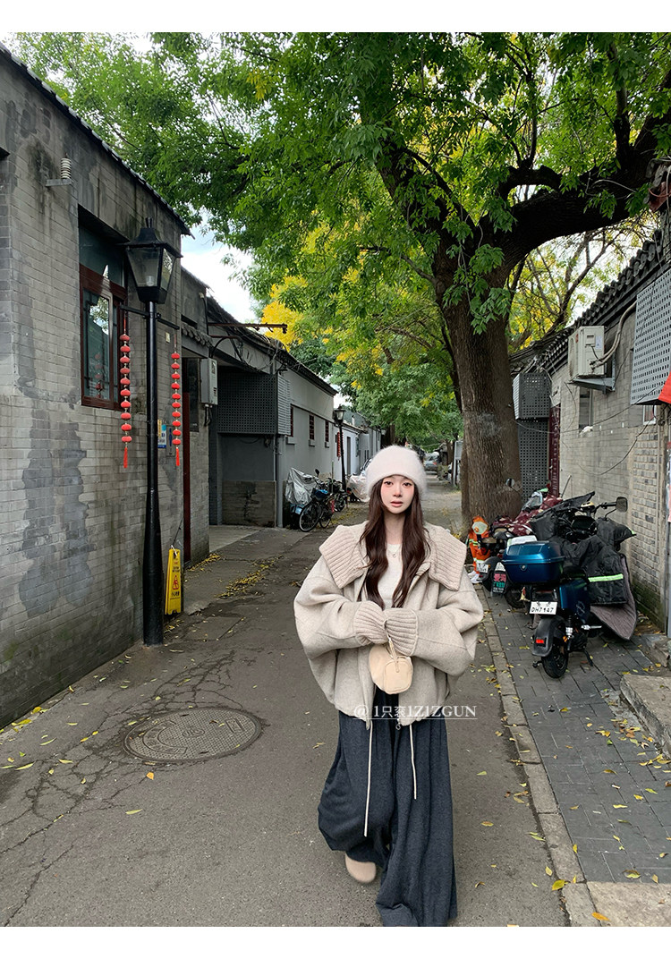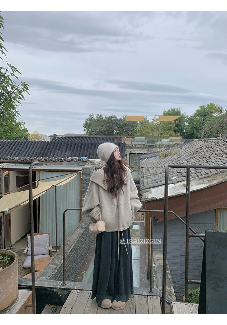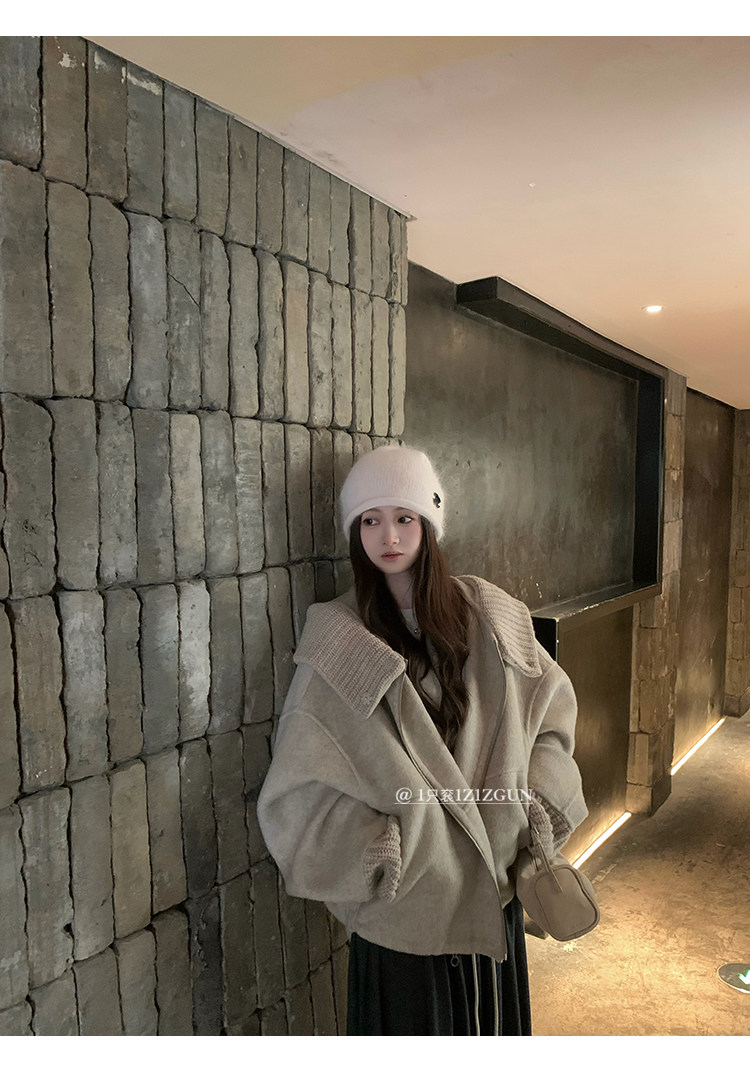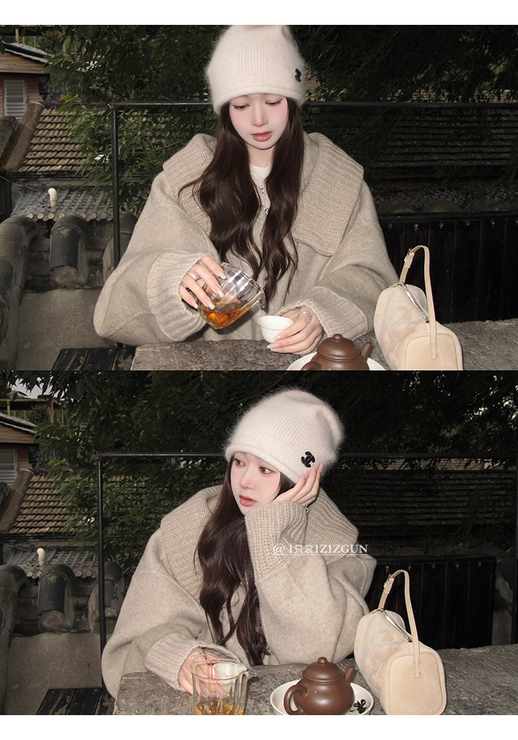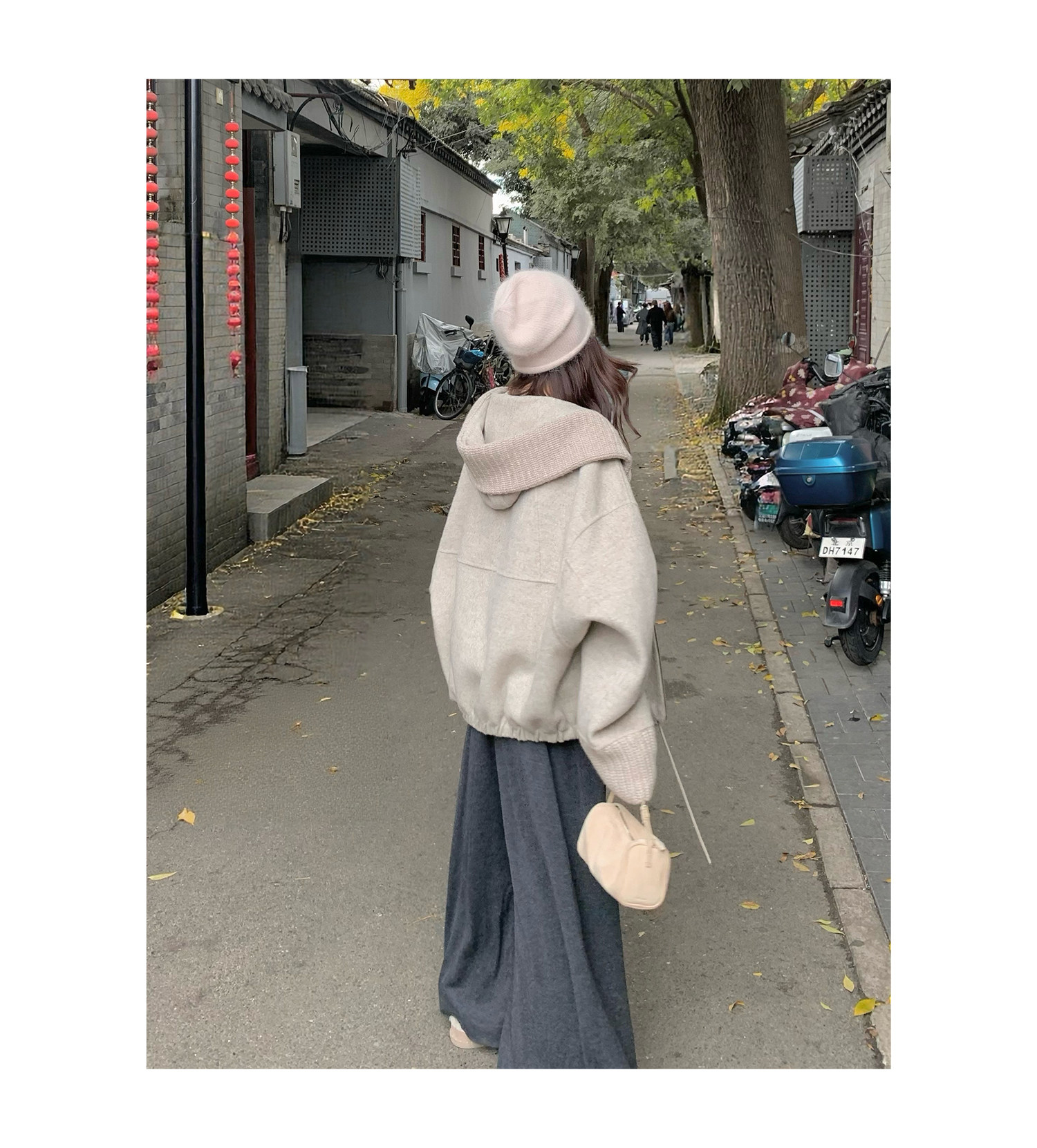 呈现出双面毛呢和毛织不同面料质感的碰撞