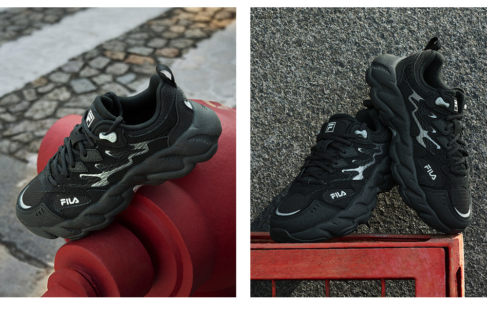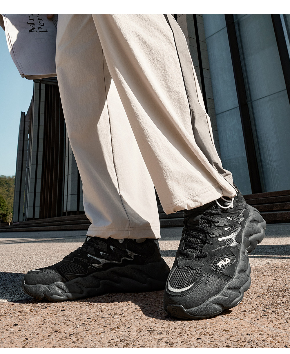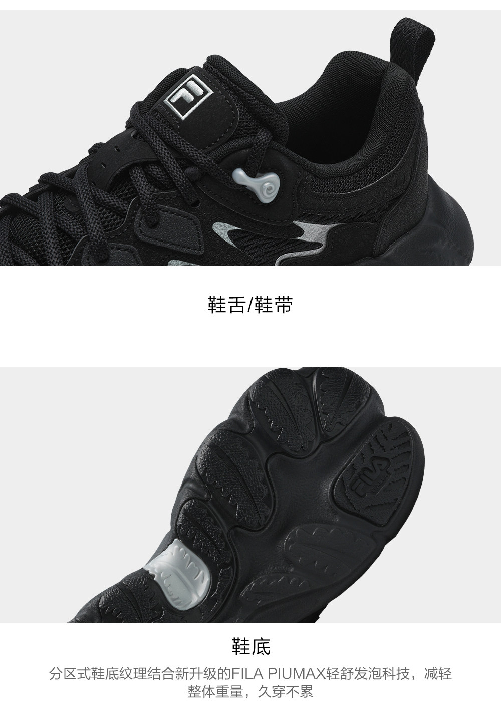 Fila Official Fern Grass 2 Men's Shoes Dad Shoes Retro Spring New Thick-Soled Sneakers Black Casual Shoes