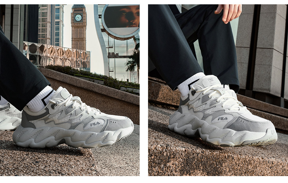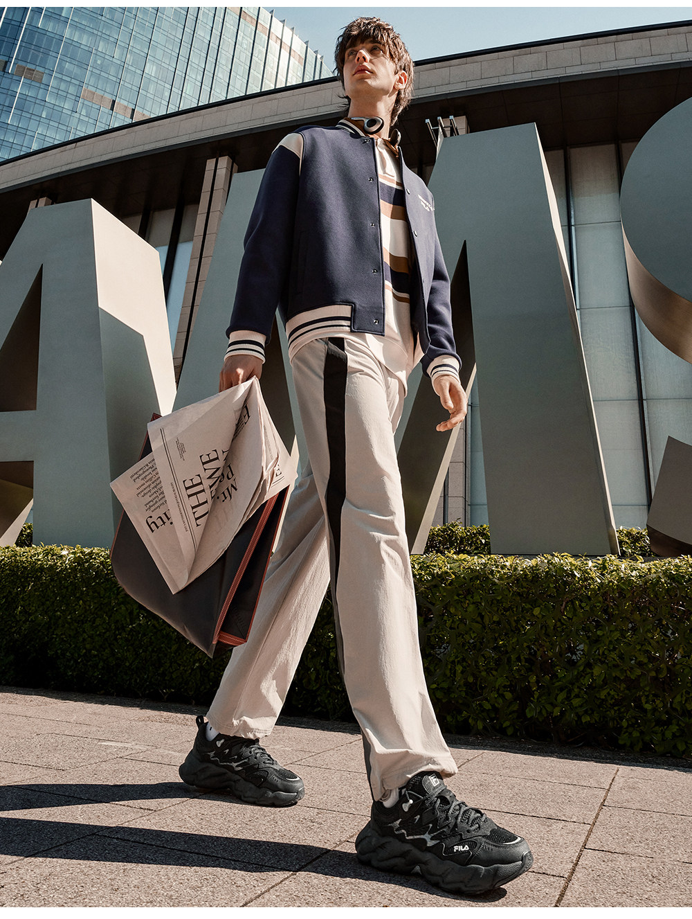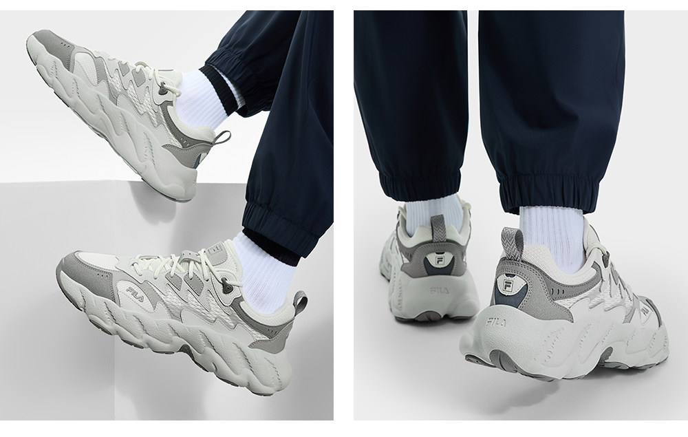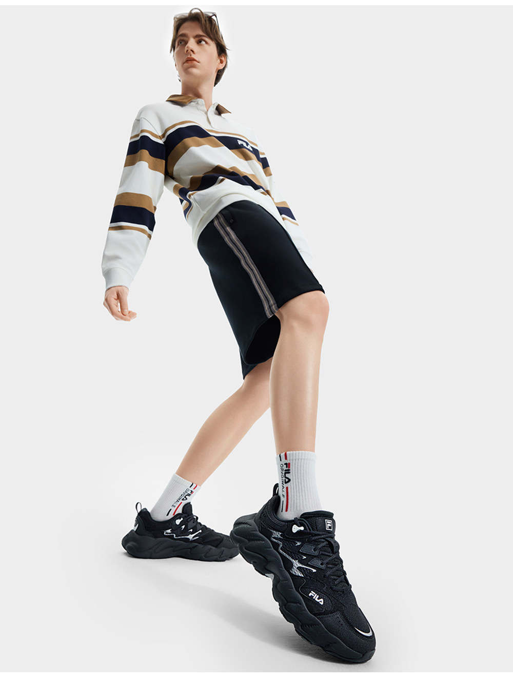 Fila Official Fern Grass 2 Men's Shoes Dad Shoes Retro Spring New Thick-Soled Sneakers Black Casual Shoes