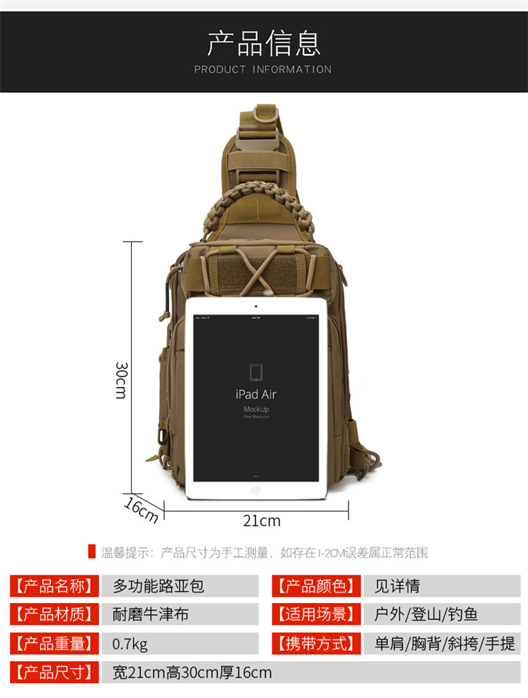 New Outdoor Bag for Men, Luya Backpack, Crossbody Single Shoulder Multifunctional Chest Bag, Tactical Camouflage Bag, Large Capacity