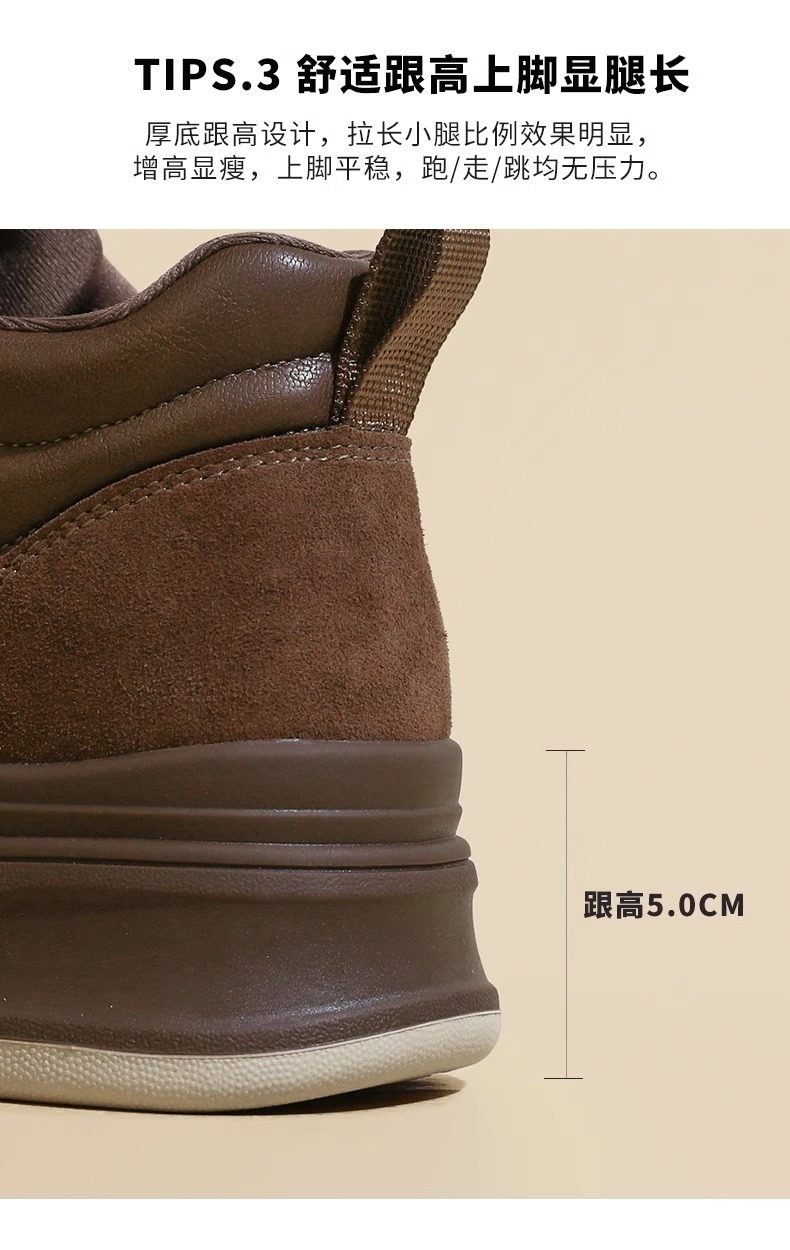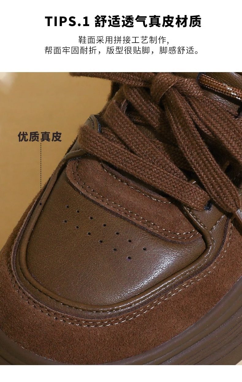 Hong Kong Retro Style Double Lace High-Top Shoes for Women 2025 Winter Korean Version Genuine Leather Thick-Soled Sneakers Versatile Casual Shoes