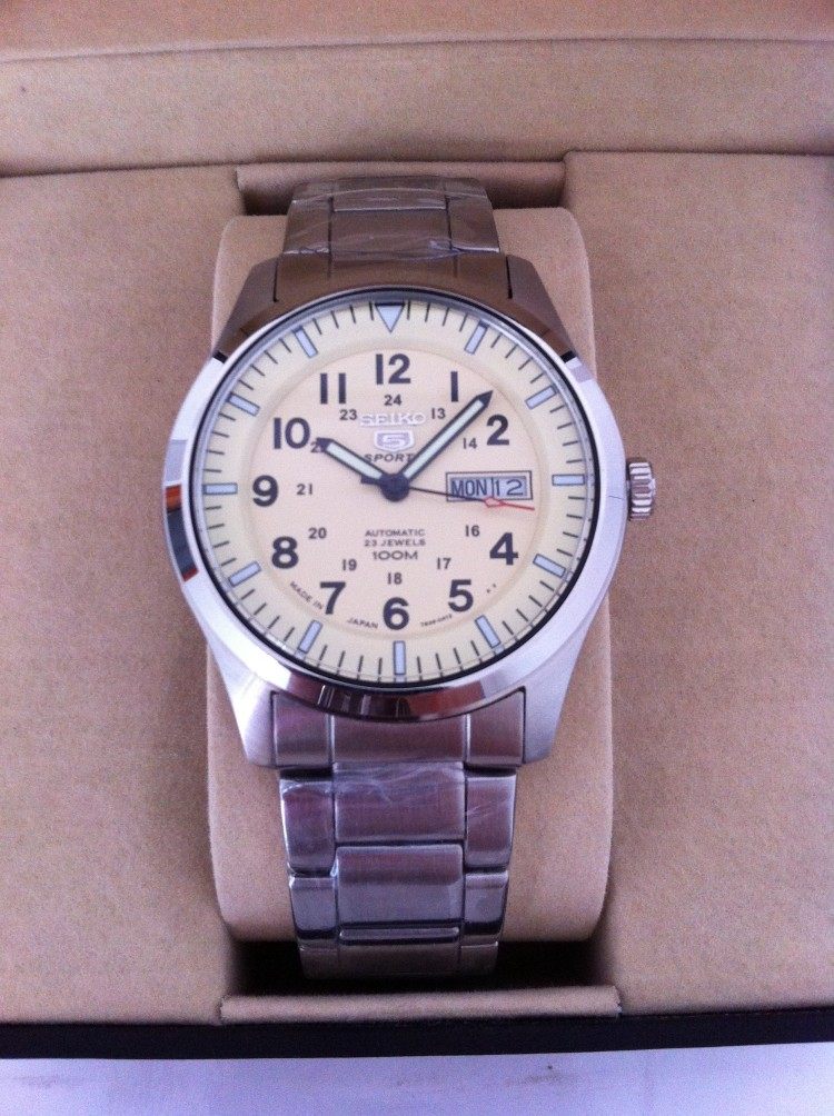 Seiko No. 5 Shield Men's Watch Fully Automatic Mechanical Watch Business Casual Waterproof Dual Calendar Watch Snzg13