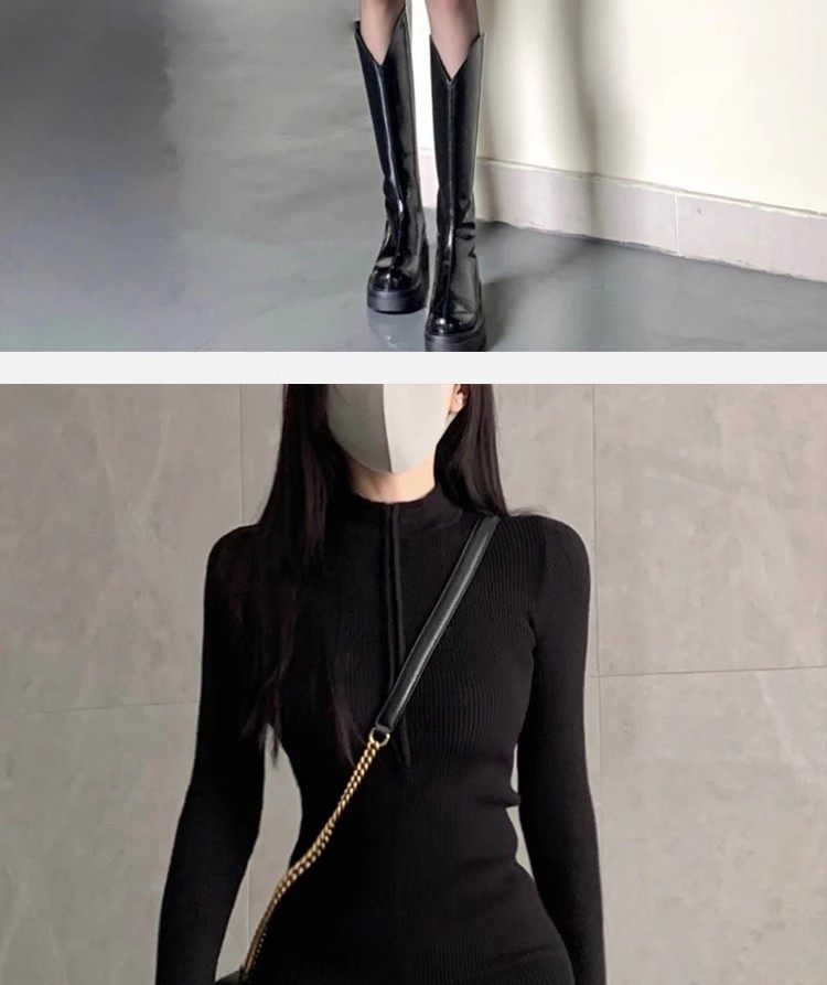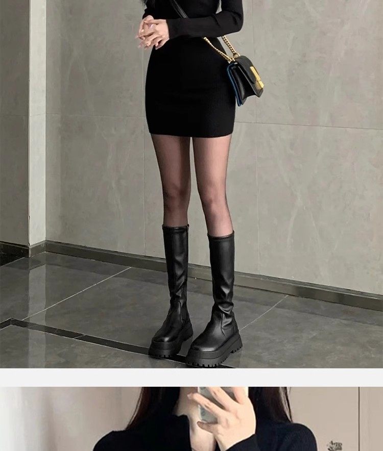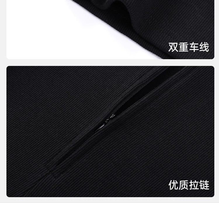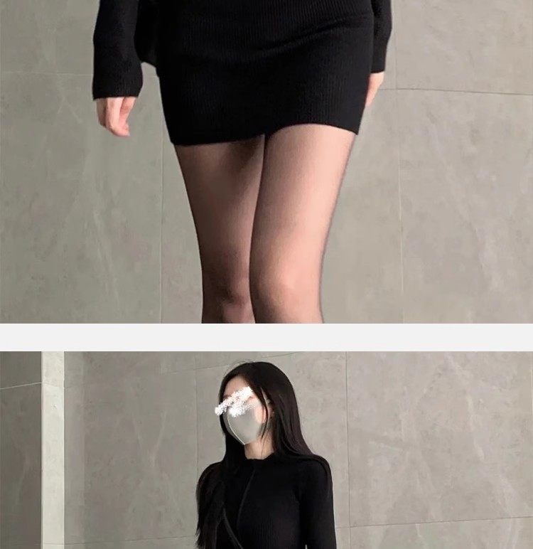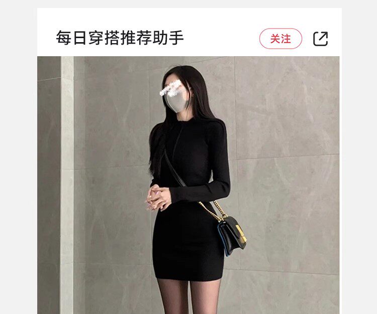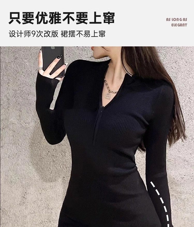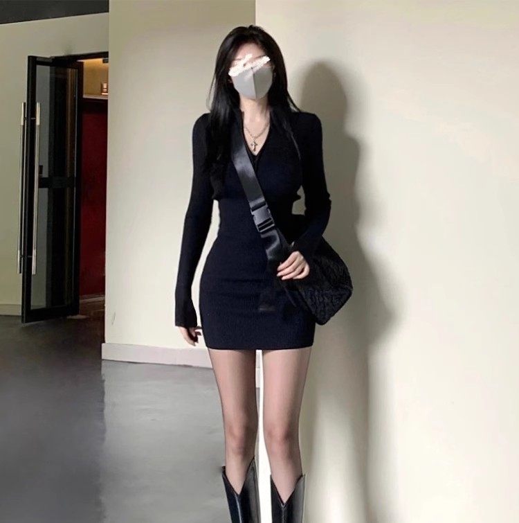 Black Bodycon Skirt with Long Sleeves, Inner Dress, Cinched Waist, Slim Fit, Slimming, Little Black Dress, Autumn and Winter Waist-Cinching Dress