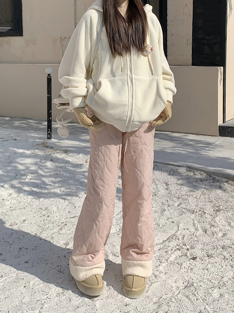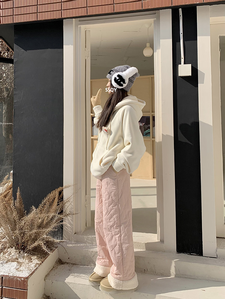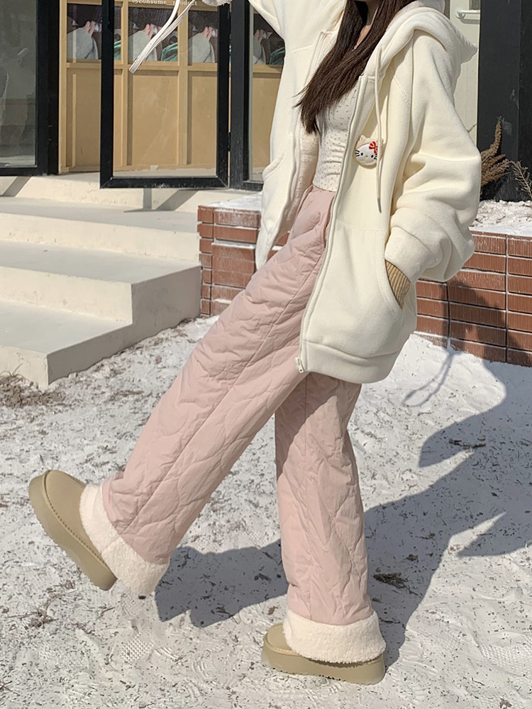 Northeast Harbin Changbai Mountain Snow Country Travel Outfit Fleece-Lined Thickened down Cotton Pants for Women, Cold-Proof Pants for Temperatures as Low as Minus 40 Degrees
