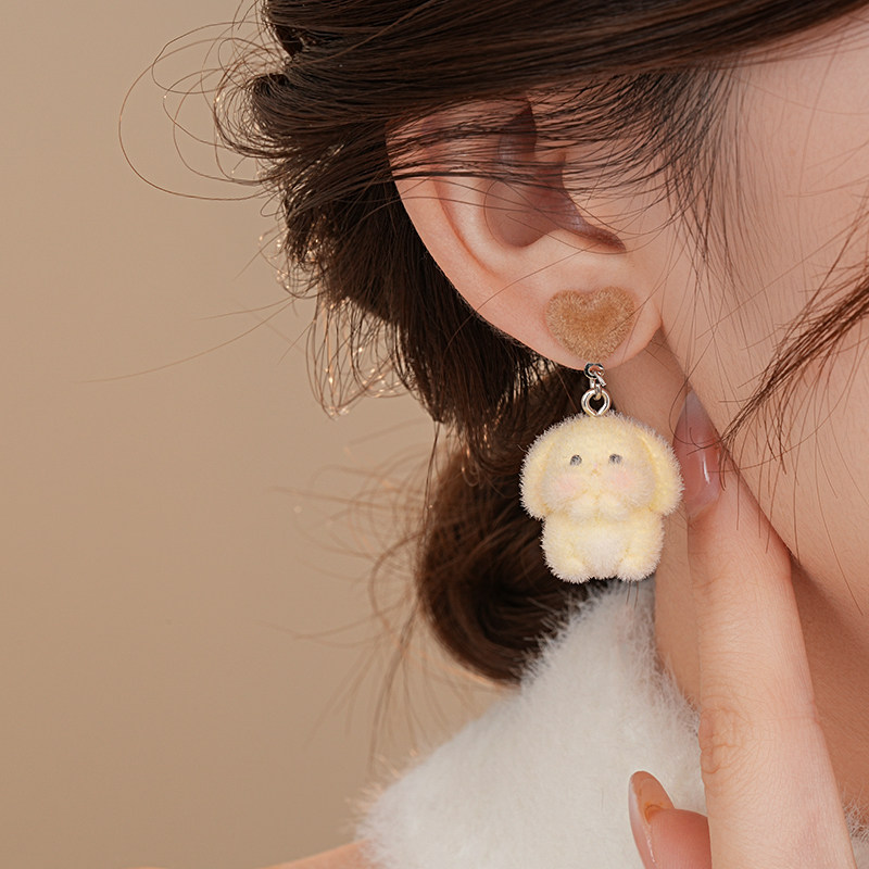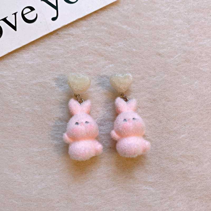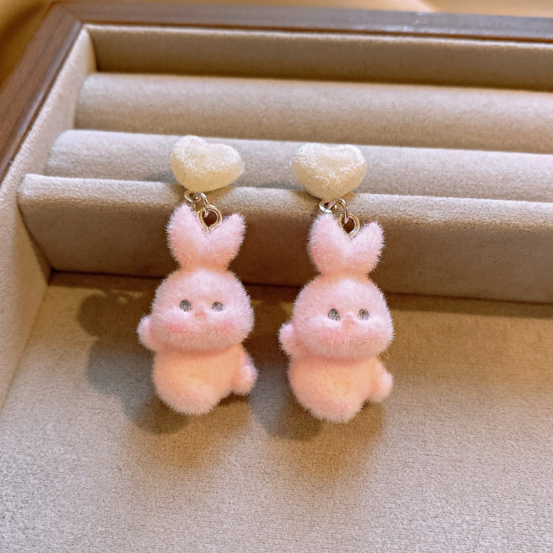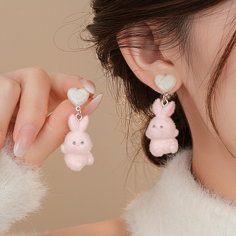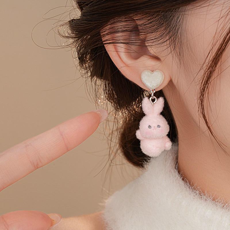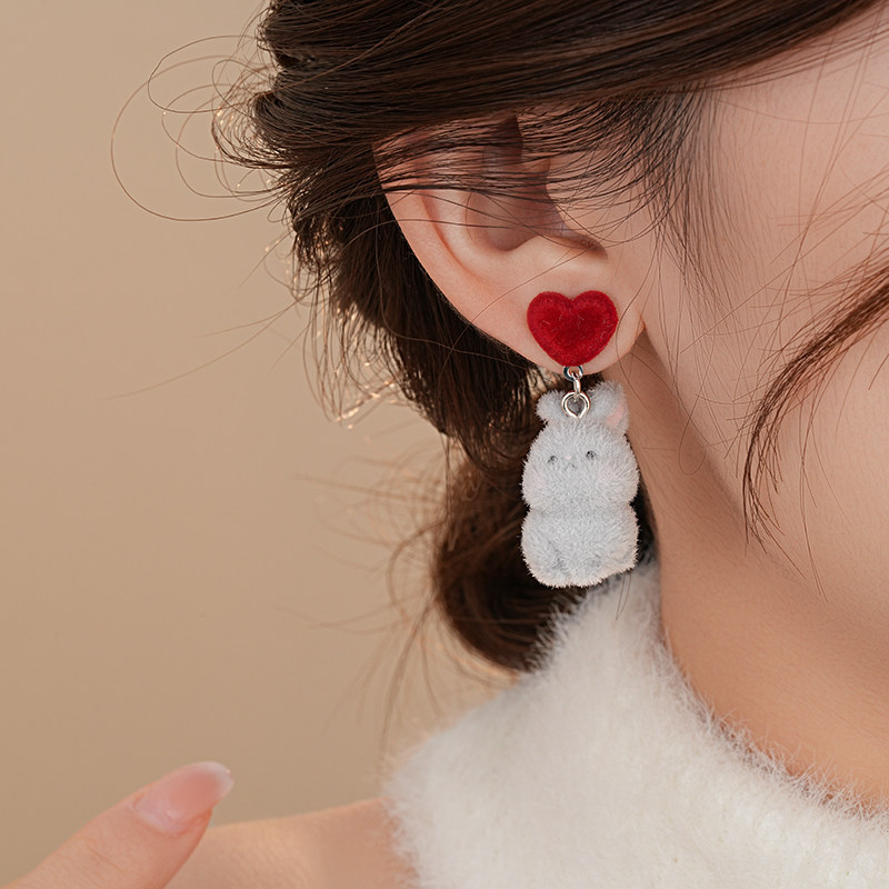 [Healing ~ Fat Rabbit] Love Earrings Rabbit Stuffed Earrings Sweet and Cute 2025 New Earrings Dopamine