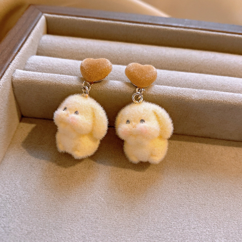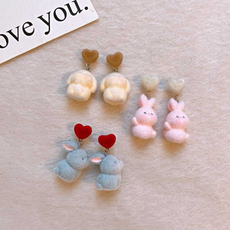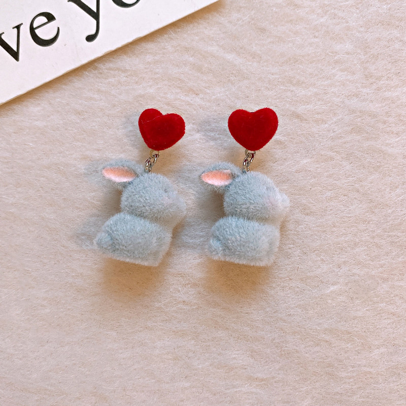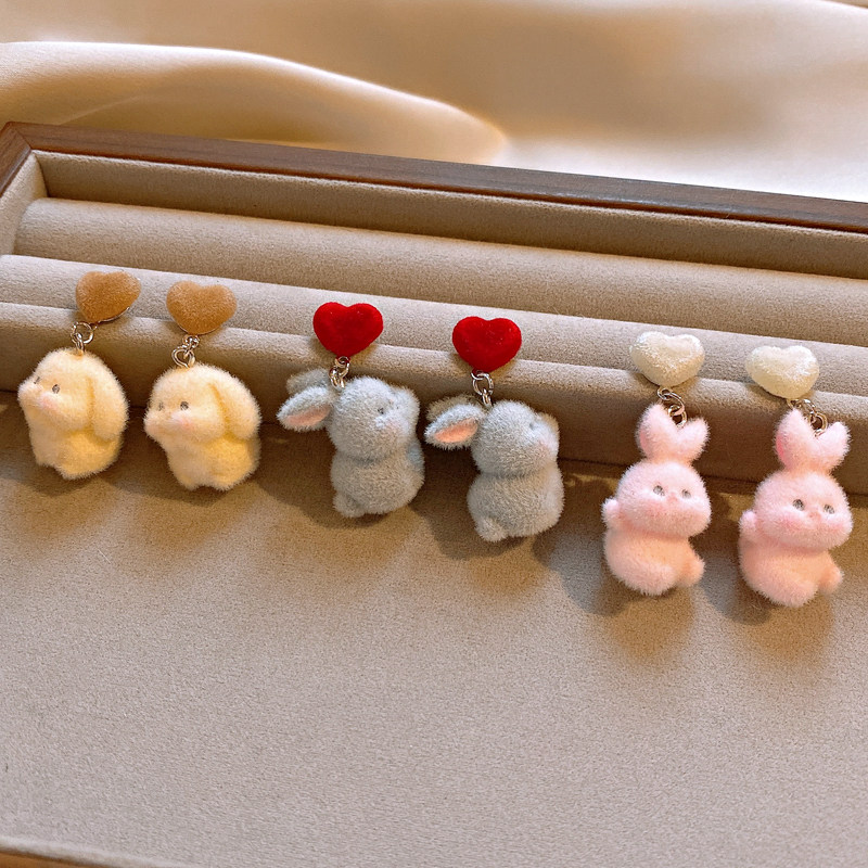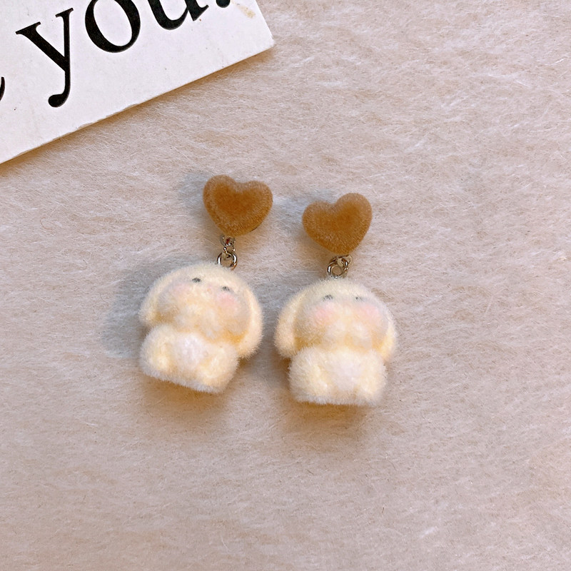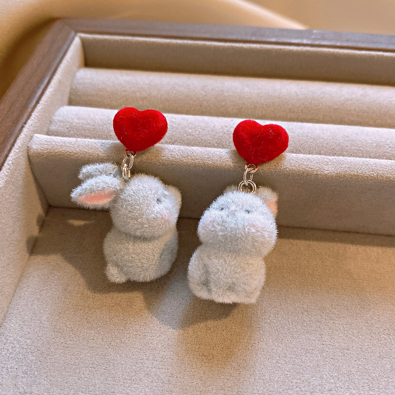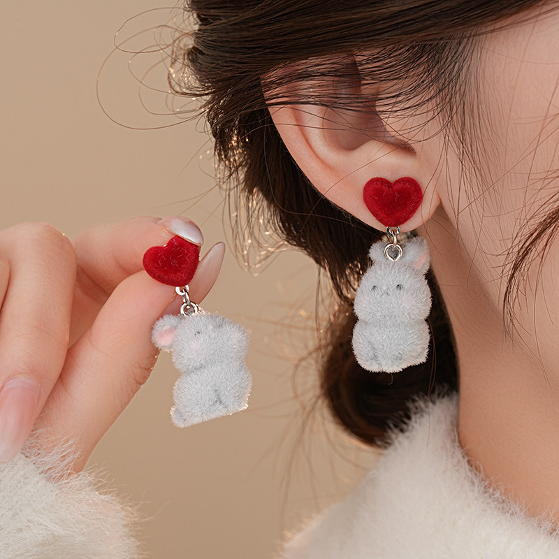 [Healing ~ Fat Rabbit] Love Earrings Rabbit Stuffed Earrings Sweet and Cute 2025 New Earrings Dopamine