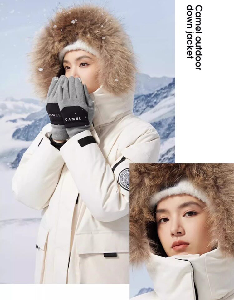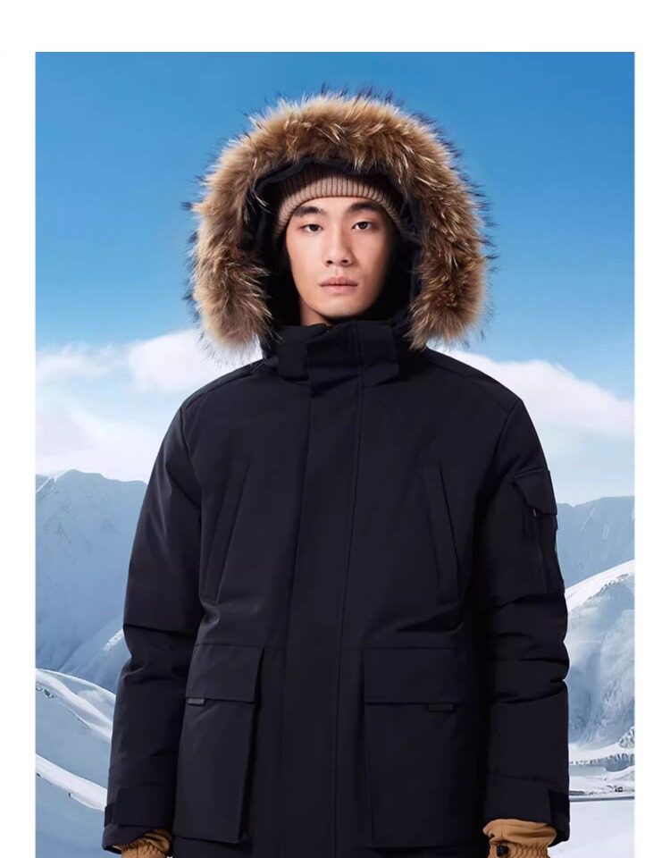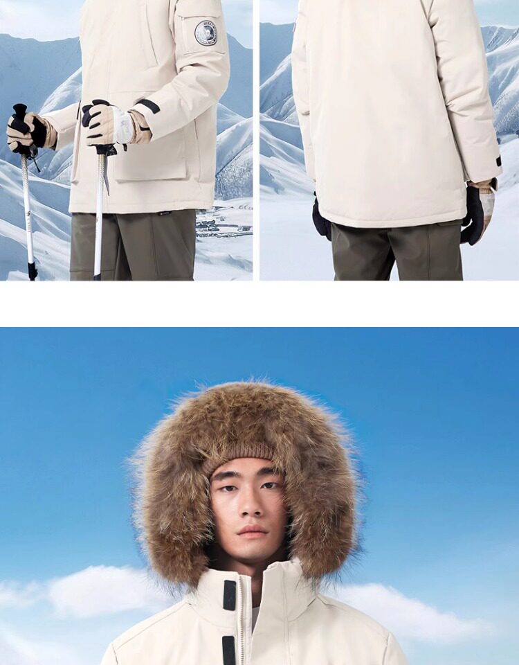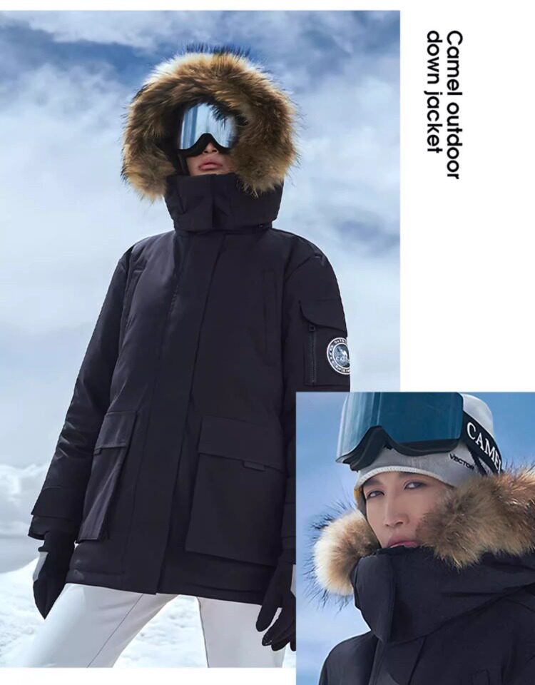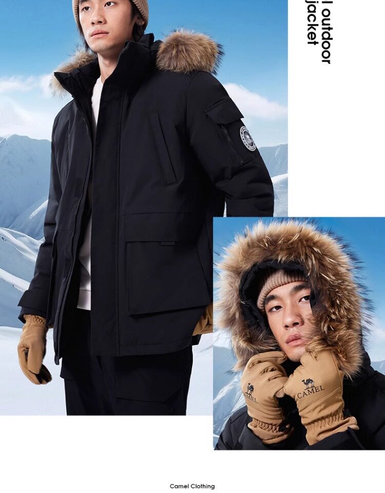 Camel Water-Repellent down Jacket Outdoor Parka with Raccoon Fur Collar Workwear Coat Winter