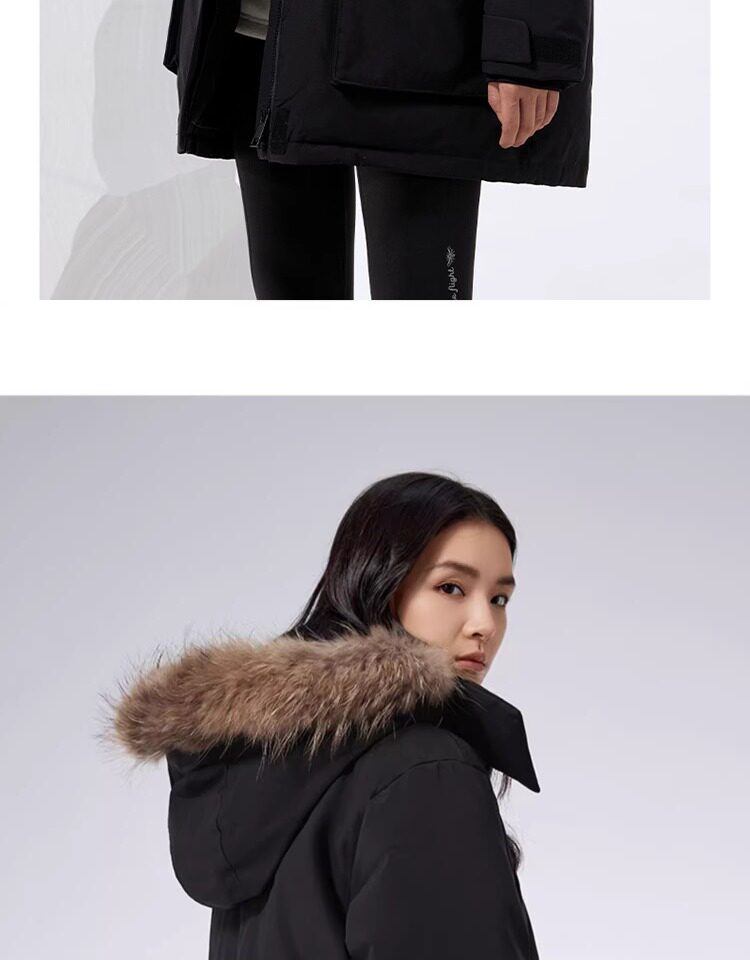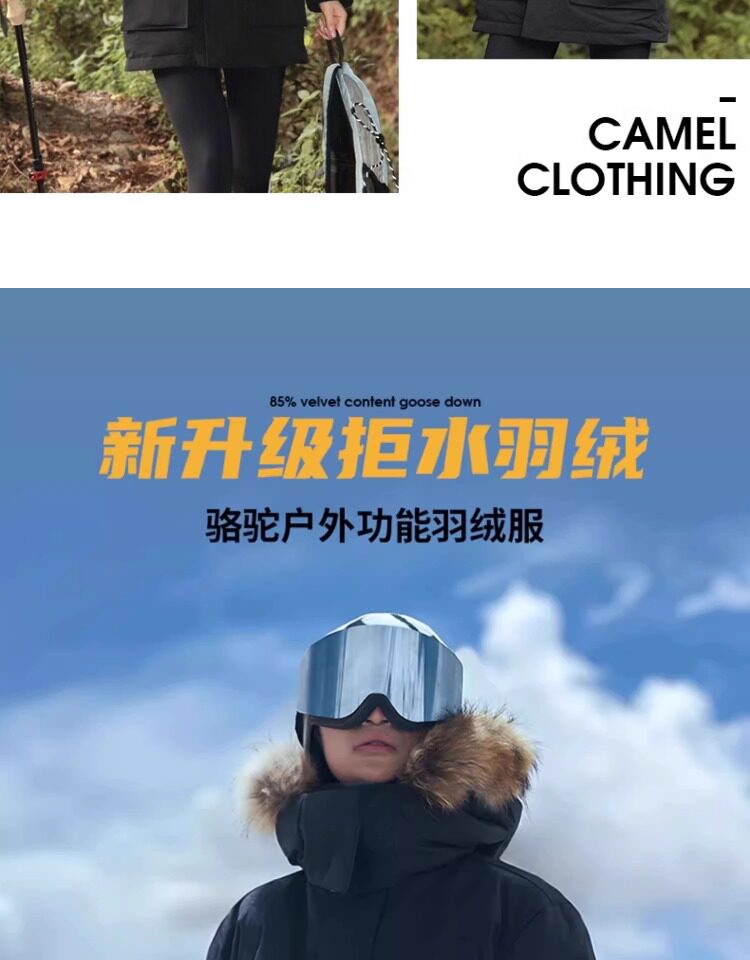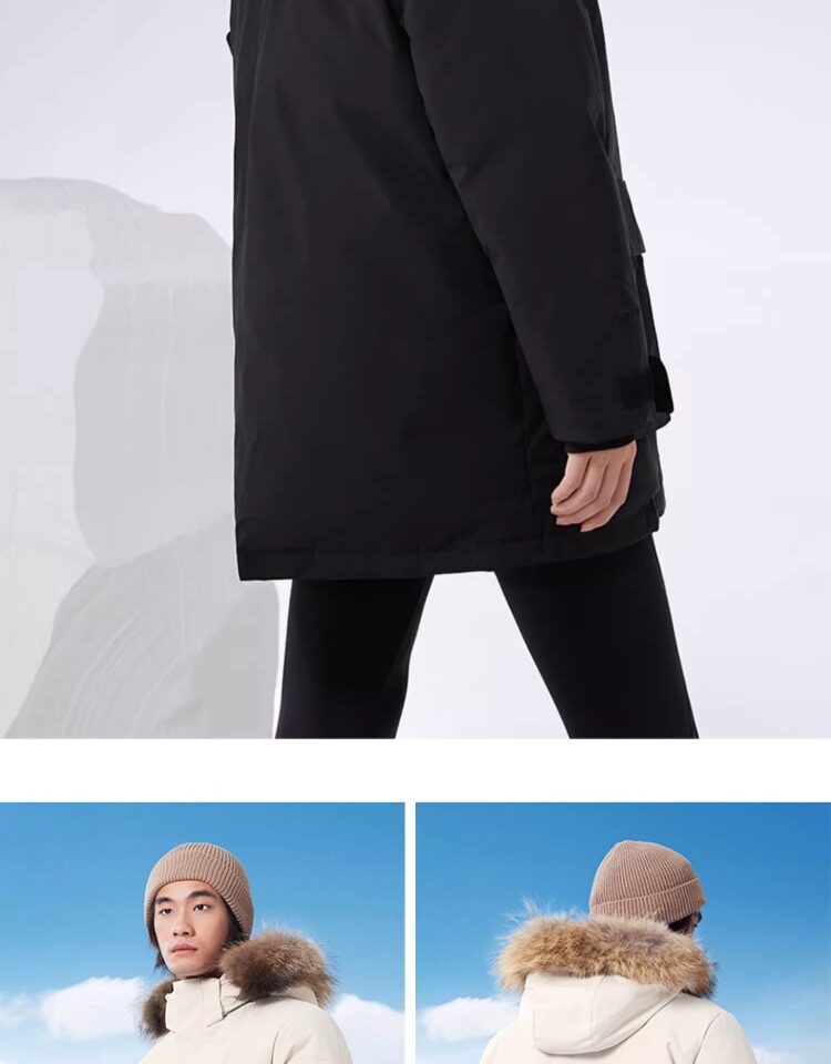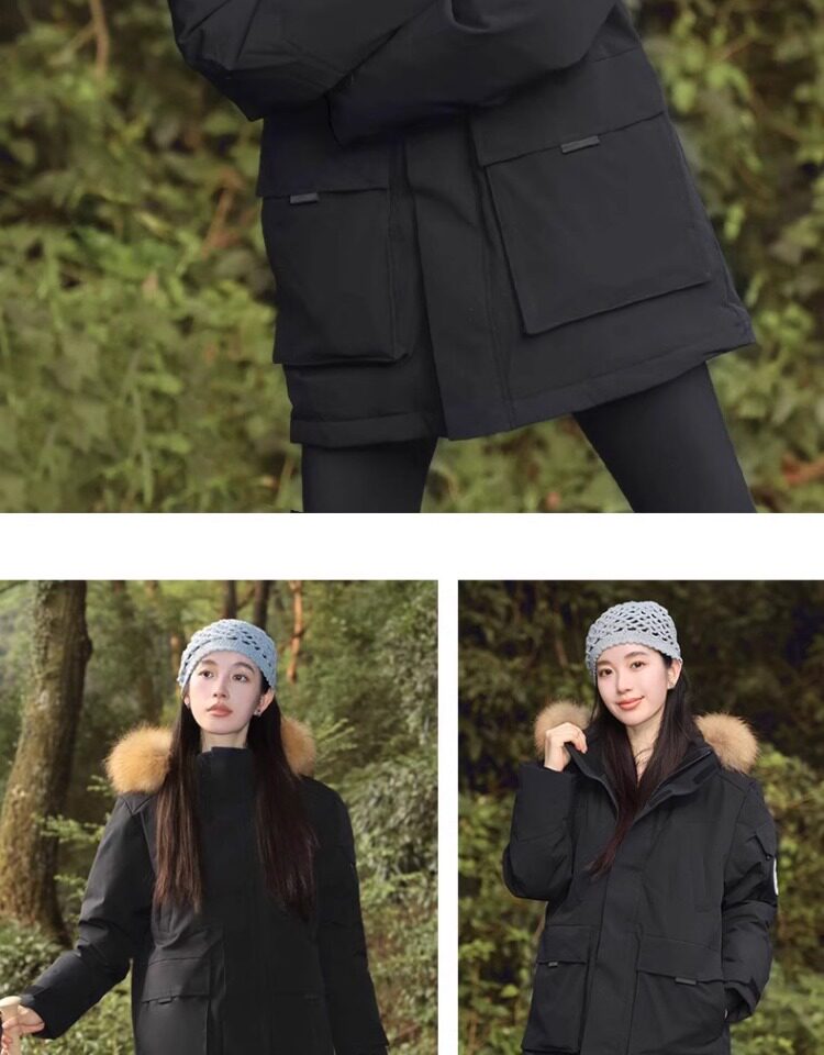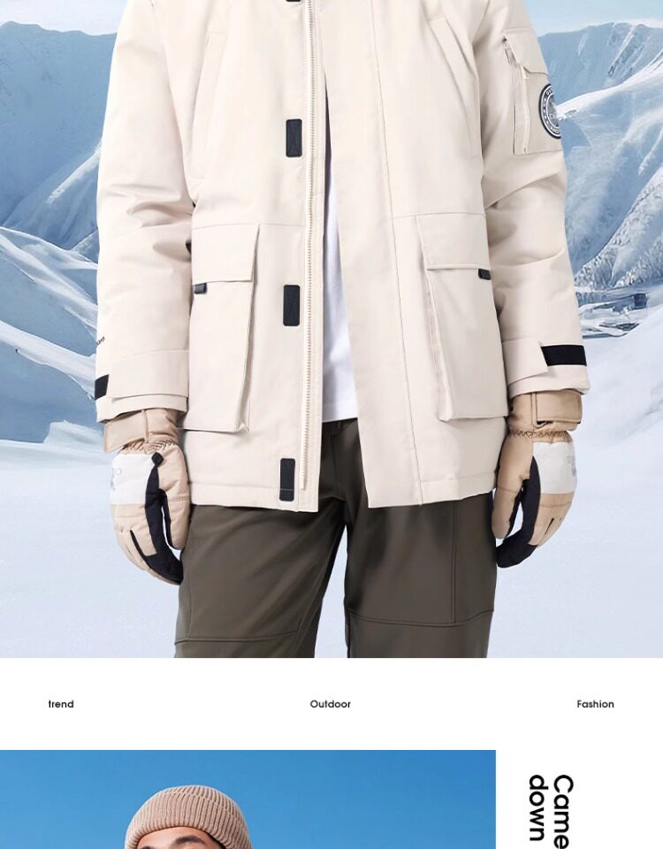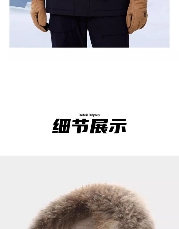 Camel Water-Repellent down Jacket Outdoor Parka with Raccoon Fur Collar Workwear Coat Winter
