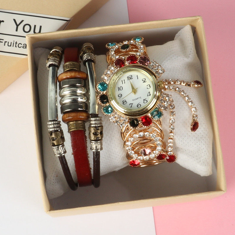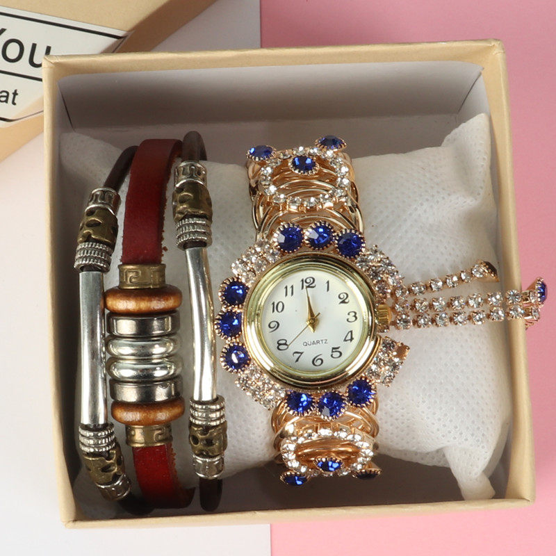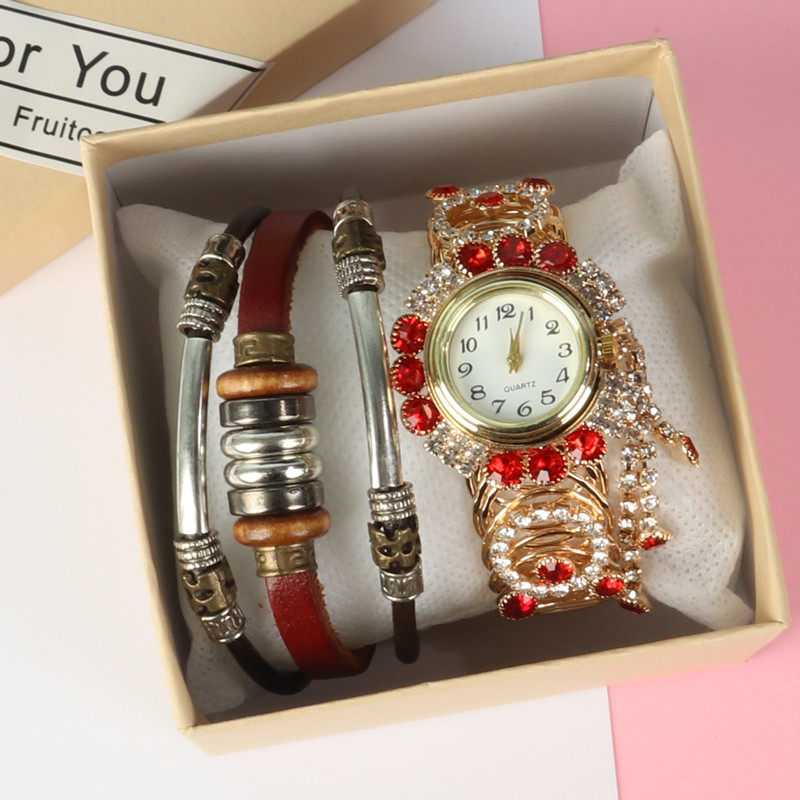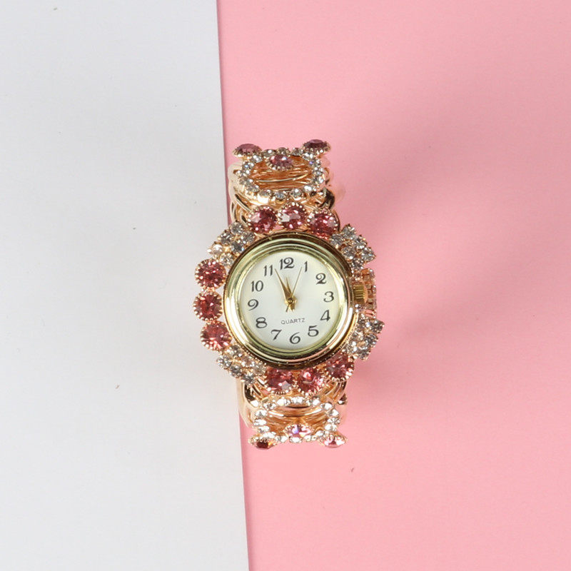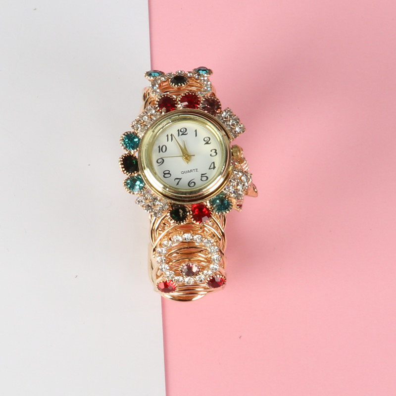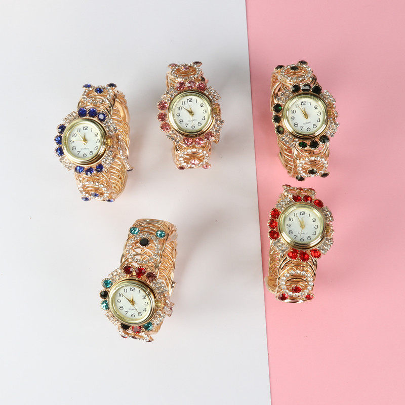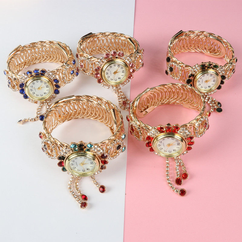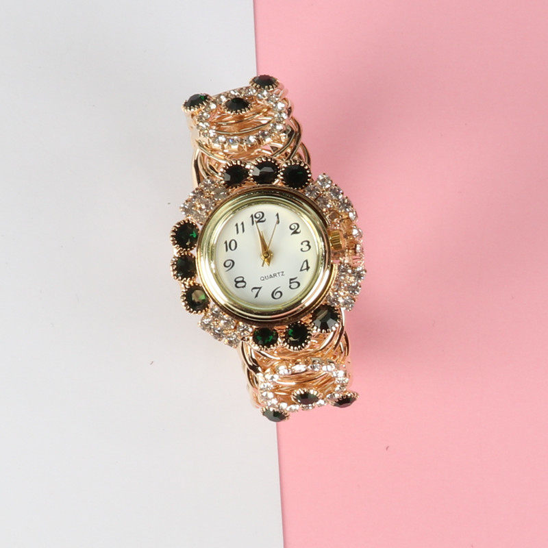 New Women's Gold Bracelet Watch, Retro Versatile Rhinestone Bracelet Watch, Korean Style Trendy Women's Watch, Quartz Watch
