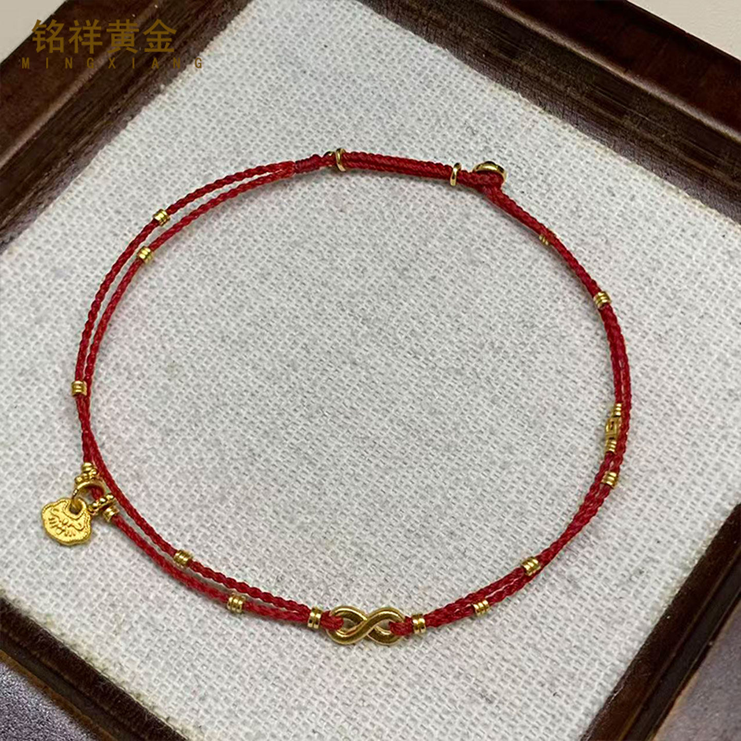 Pure Gold 999 Safety Pendant with Double-Layer Braided Rope, Mini Gold Gourd and Persimmon Design, Stackable Gold Rings, Red String, Gift for Girlfriend