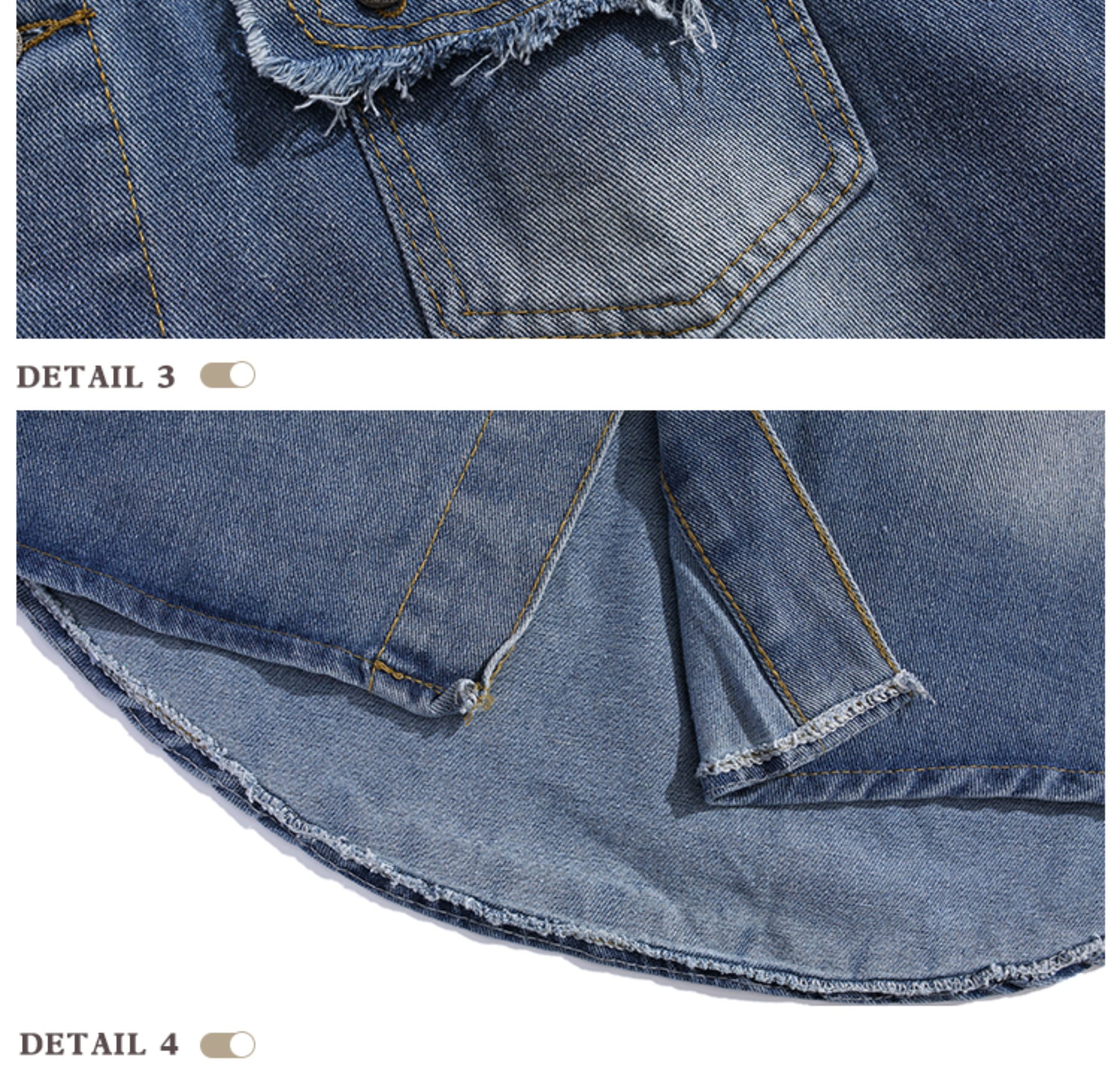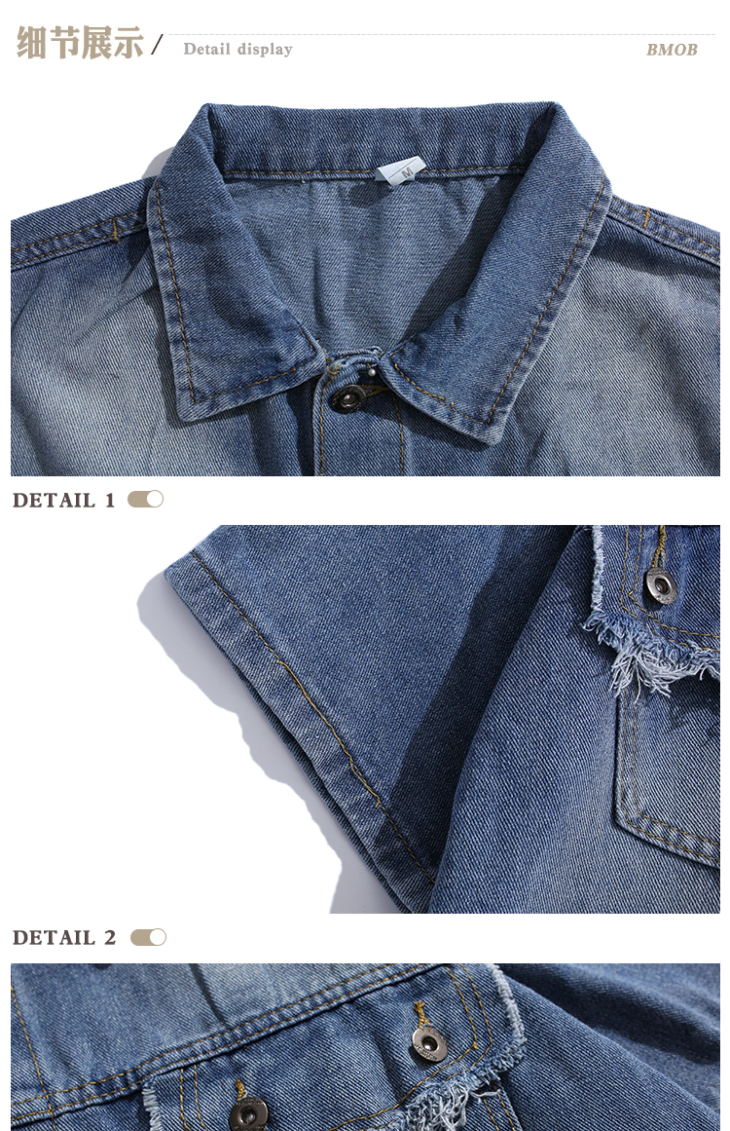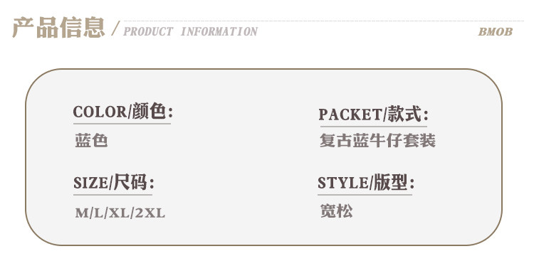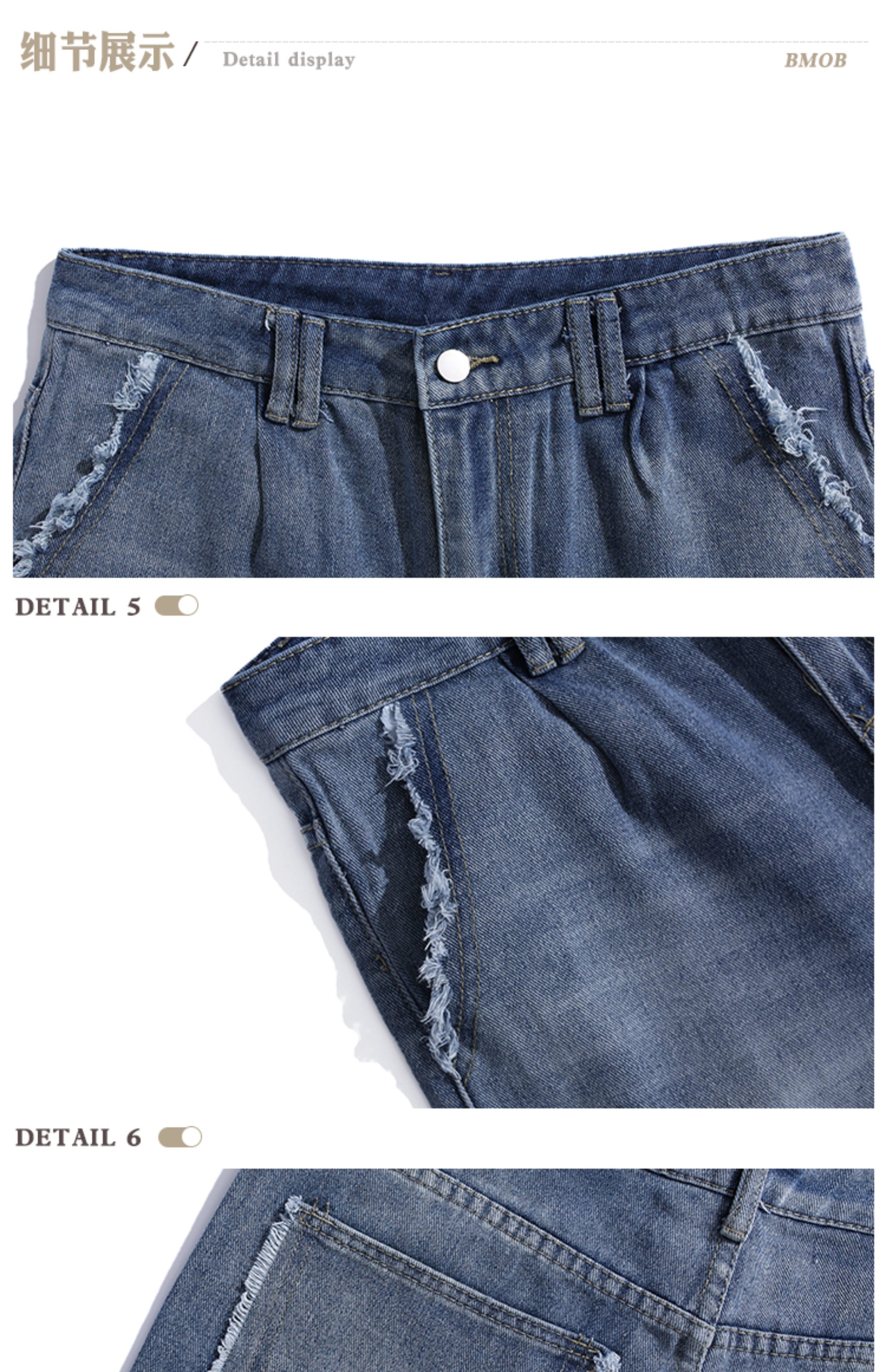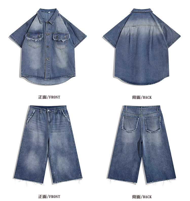 Bmob Design-Inspired Raw Edge Denim Shirt Set for Men, High Street Fashion Brand, Cropped Pants, Oversized, High-End Two-Piece Set