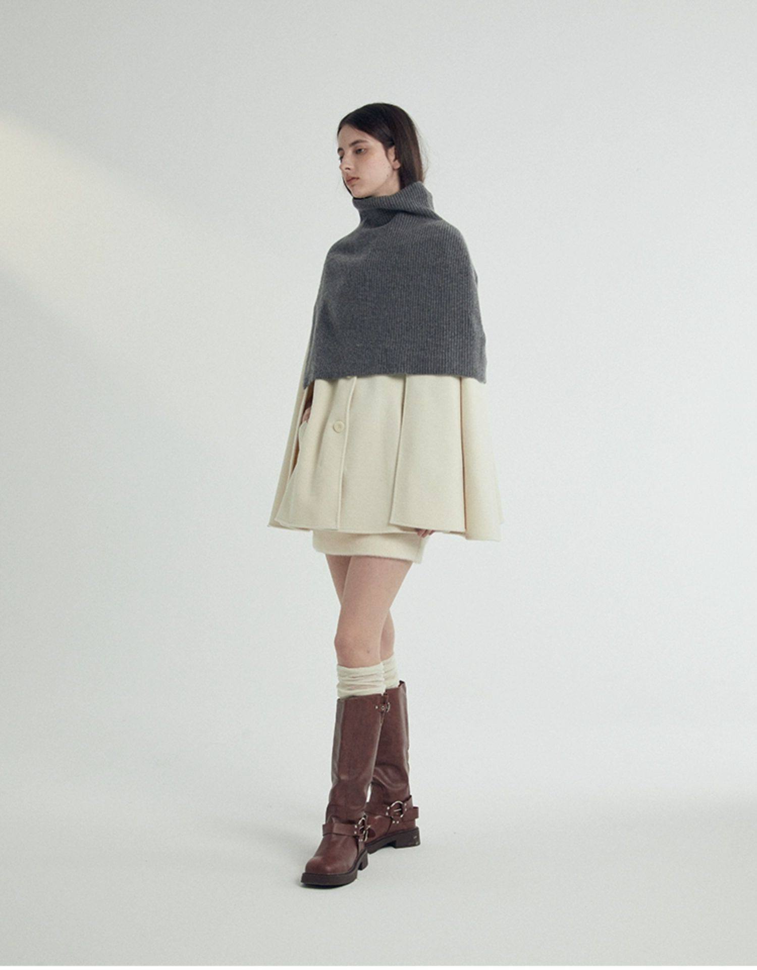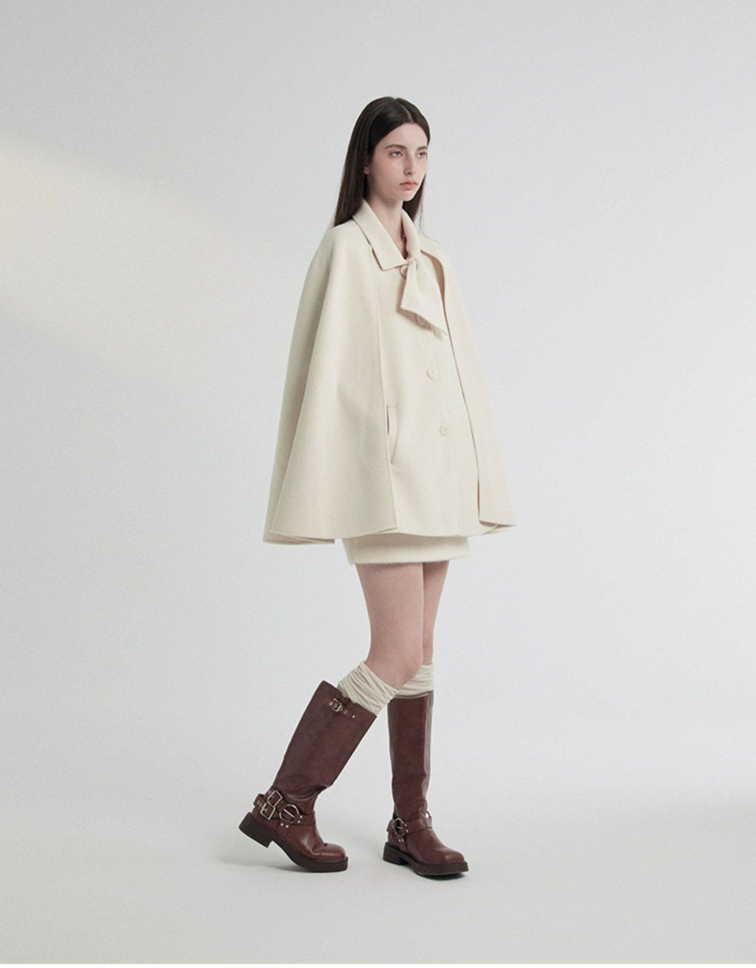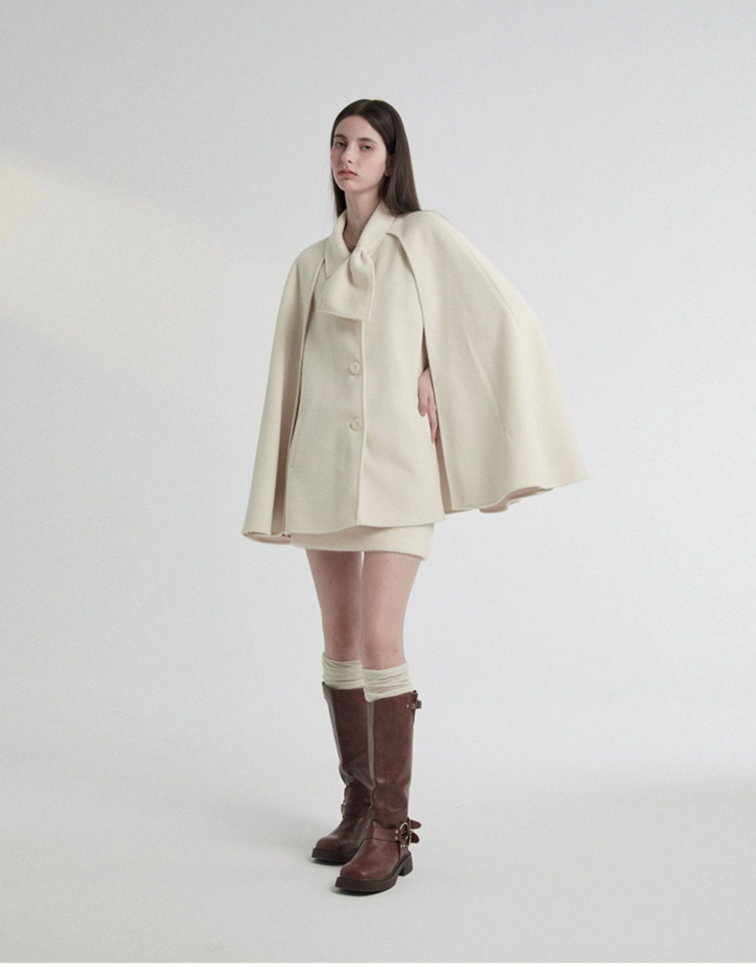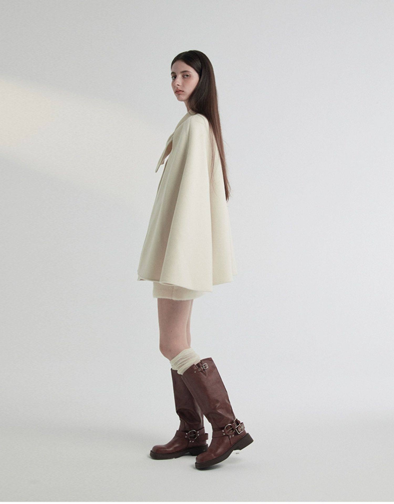 Romantic Escape: Precious Camellia White Double-Sided Wool Cape Coat, Sweet and Elegant Woolen Overcoat for Women, Autumn and Winter