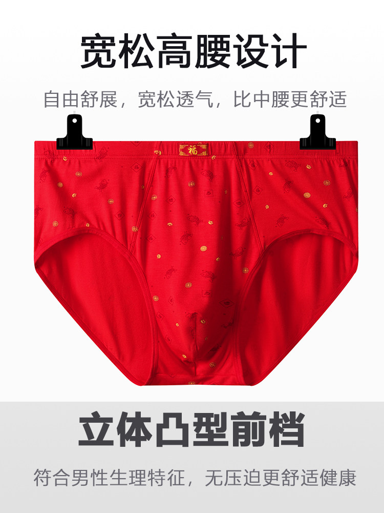High-Waisted Red Men's Briefs for the Year of Birth, Modal Plus Size, Breathable, for Big and Tall Men