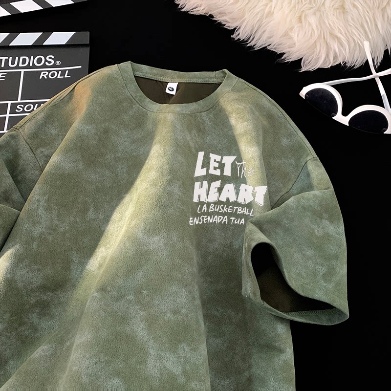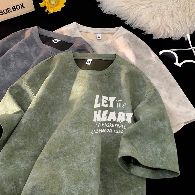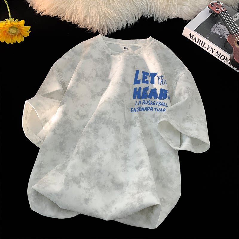 American-Style Tie-Dye Short-Sleeve T-Shirt for Men, 2025 New Summer Loose Fit, Heavyweight Trendy Crew Neck Top for Teenagers