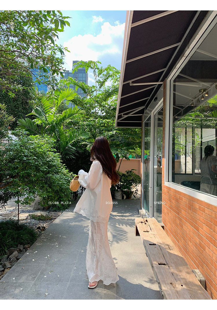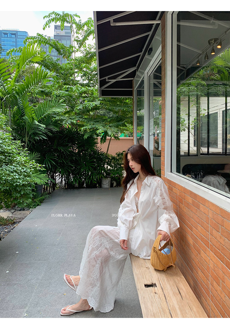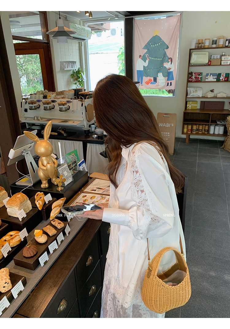 Huahuayuan Moon Blouse French-Style Long-Sleeve Lace Shirt for Women, Spring Patchwork Design Skirt Set