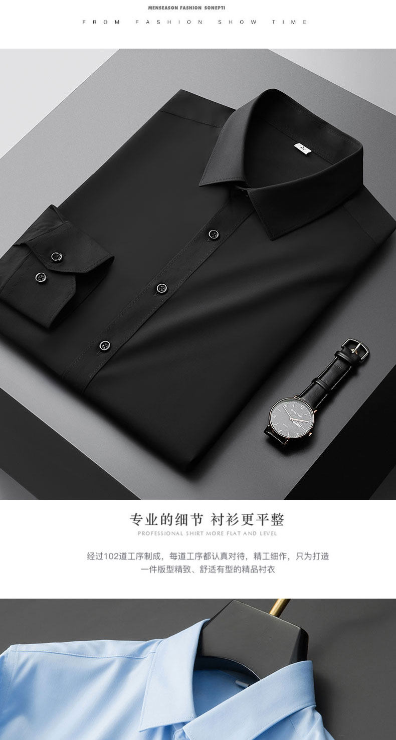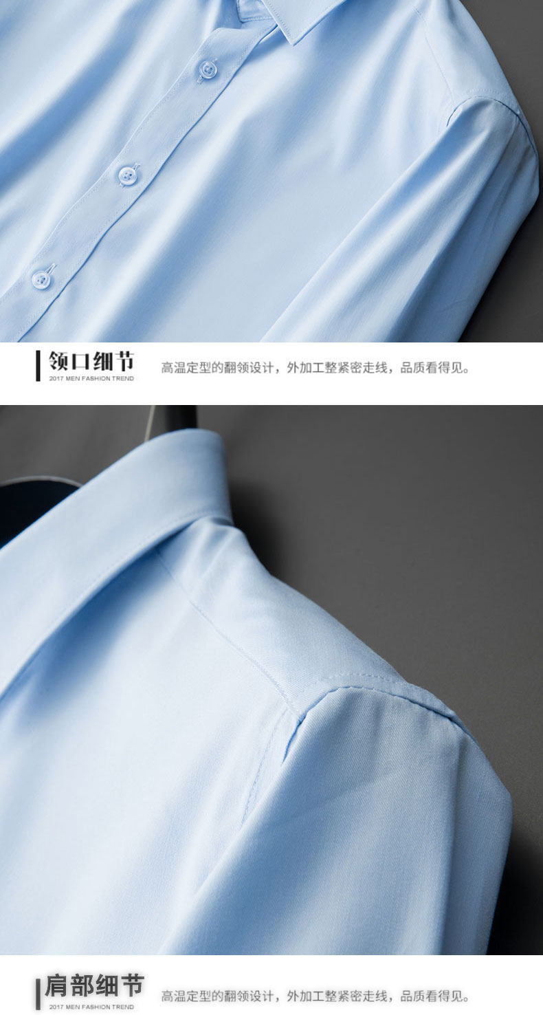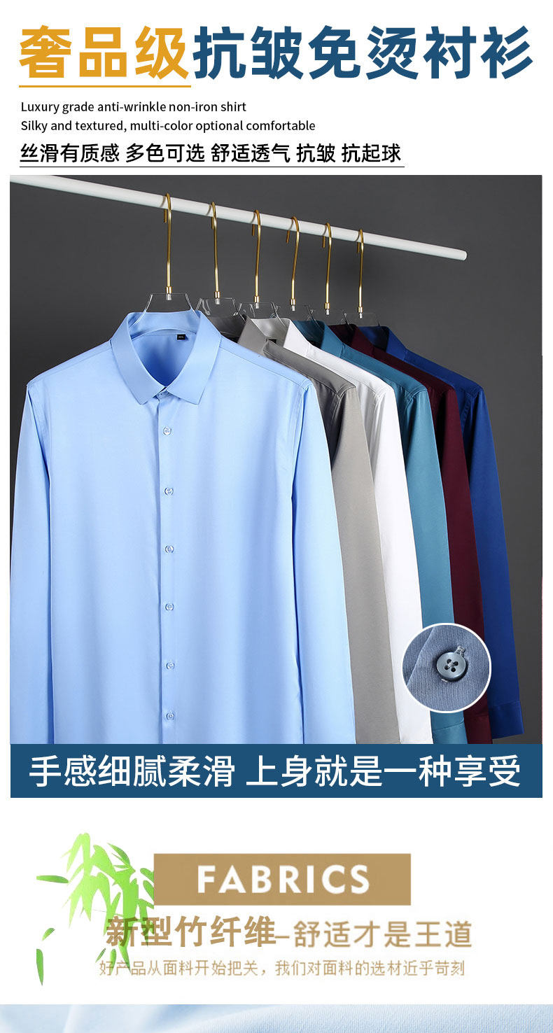 Woodpecker White Long-Sleeved Men's Shirt with Fleece Lining, Thickened, Stretchy, Wrinkle-Resistant, Business Professional Formal Casual Blue and Black Shirt